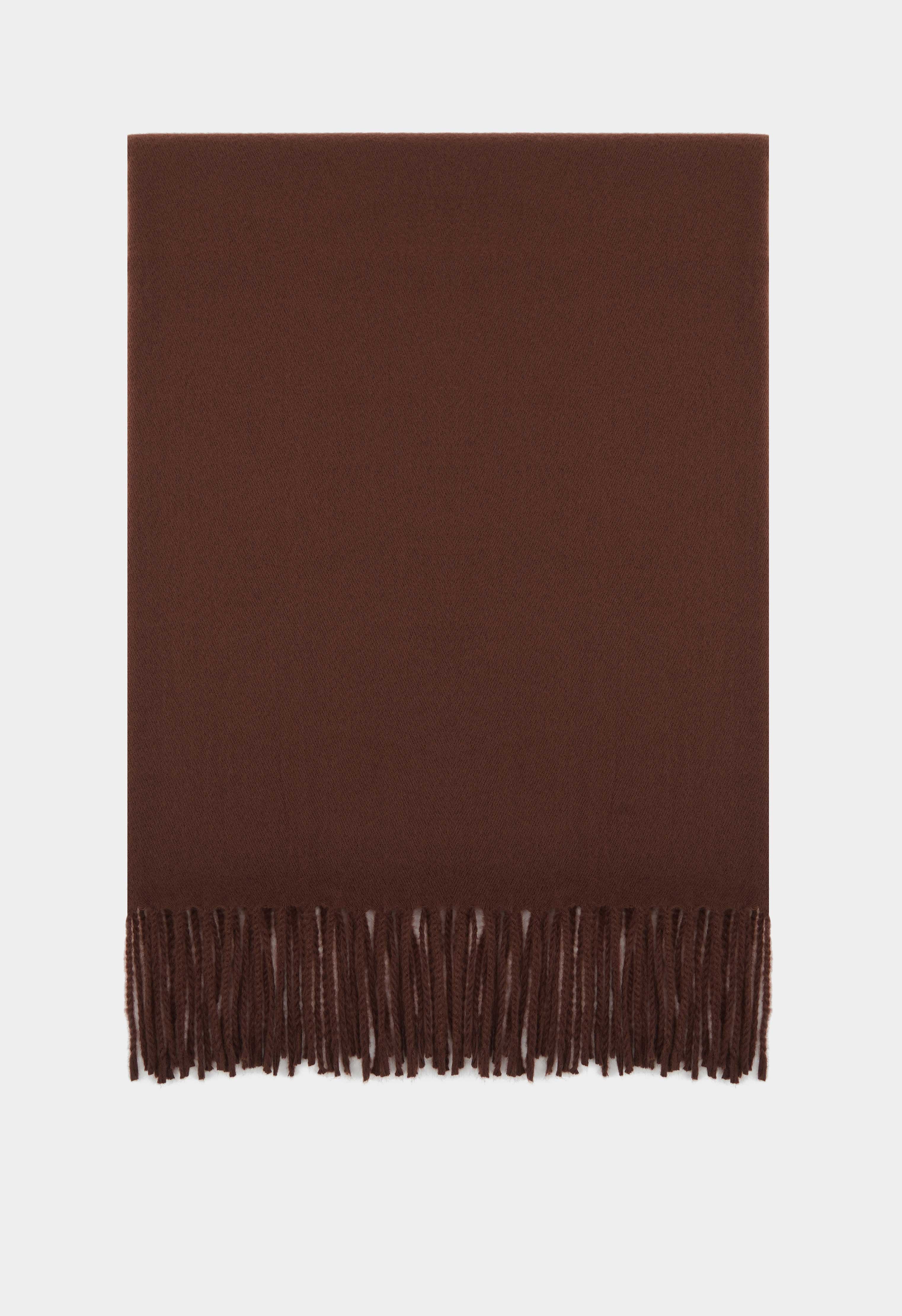 Шоколадный коричневый платок из кашемира – идеальная база для стильных образов в прохладный сезон: невероятно мягкий, теплый и нежный к коже, он красиво драпируется и добавляет ощущение уюта и стильного минимализма. Универсальный оттенок легко сочетается с абсолютно разными образами, а аккуратная бахрома придает образу завершенность.