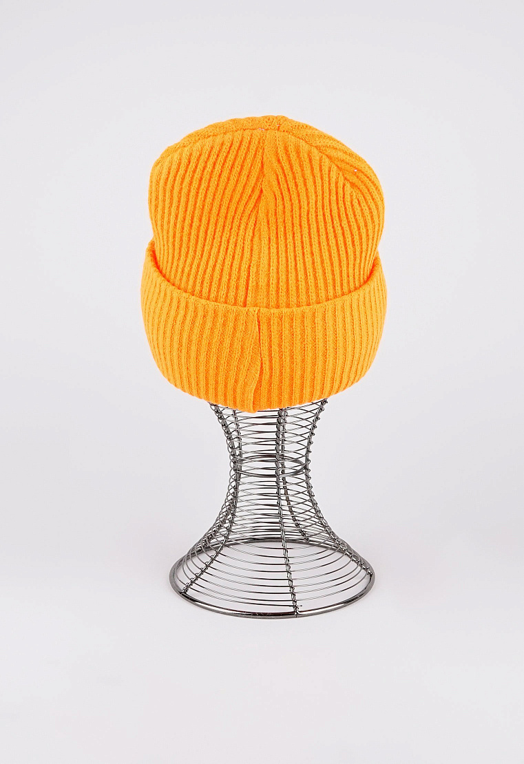 Стильная шапка изготовлена из утеплённой ткани и представлена в новой коллекции в оранжевом цвете. Современный крой выполнен в технике рельефной вязки и дополнен классическим отворотом. Нити натуральной шерсти обеспечивают комфорт, акрил придаёт изделию мягкость. Актуальный аксессуар идеально сочетается с элементами повседневного гардероба.