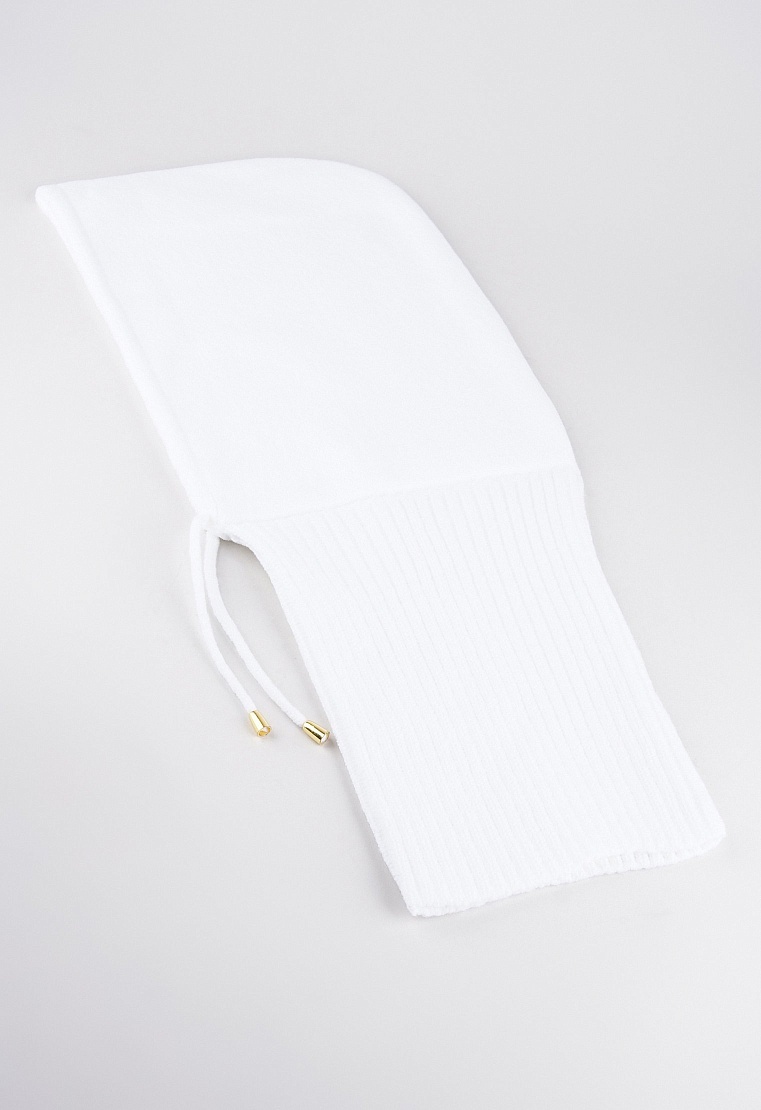 Однотонный капор из новой коллекции изготовлен из мягкой ткани и представлен в белом цвете. Классический силуэт выполнен из нитей натуральной шерсти и акрила и дополнен шнуром. Утеплённая ткань не колется и обеспечивает высокий уровень комфорта в зимний сезон. Актуальный аксессуар идеально впишется в модный образ в городском стиле.