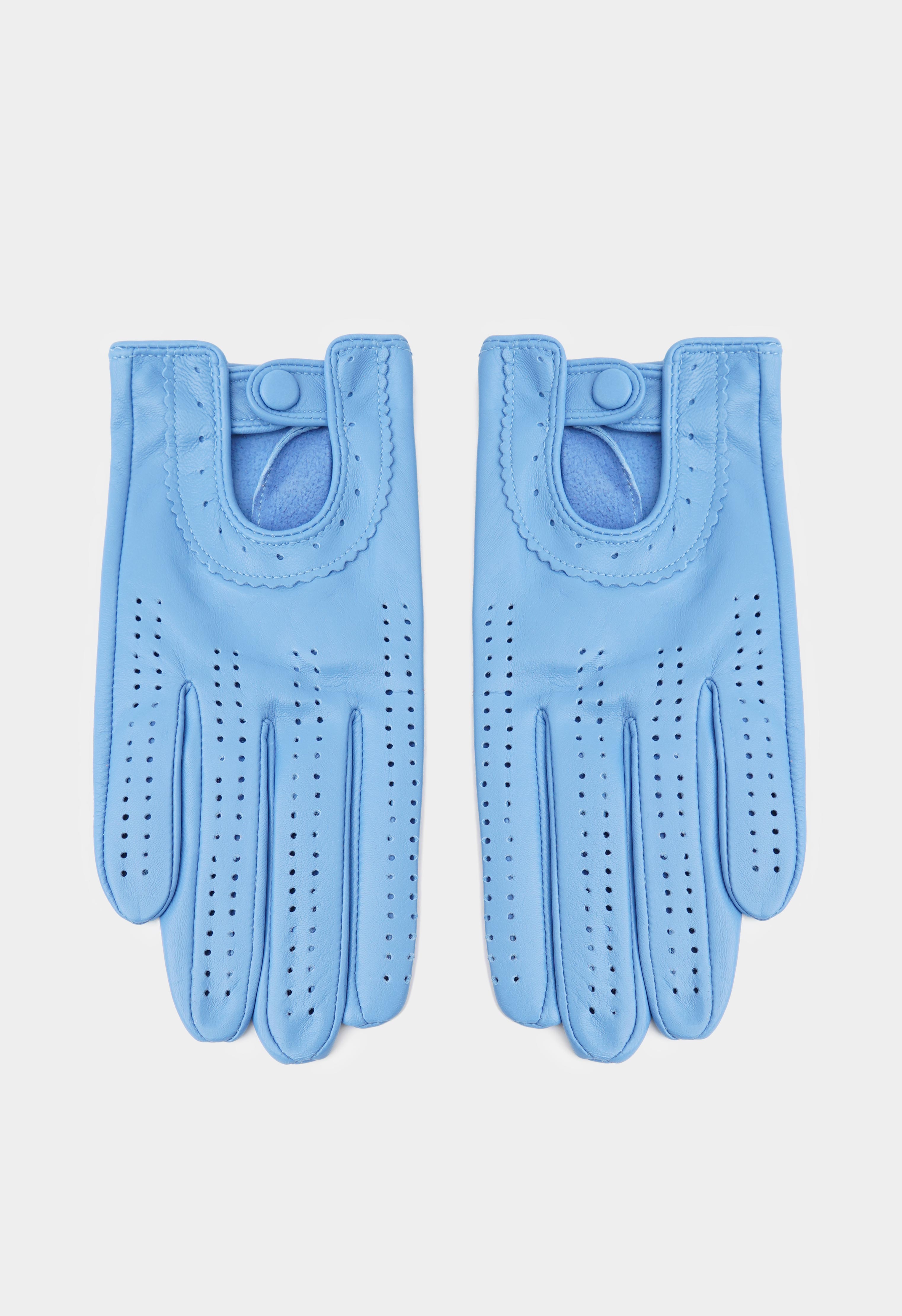 Голубые перчатки из натуральной кожи – стильный акцент, который мгновенно освежает любой образ и добавляет ему аккуратности. Мягкая кожа приятно ложится по руке, а перфорация обеспечивает комфорт и легкость в носке. Удобная кнопка на запястье фиксирует посадку и подчеркивает изящный силуэт, чтобы перчатки сидели идеально. Отличный выбор для тех, кто любит практичные, элегантные и по-настоящему заметные детали.