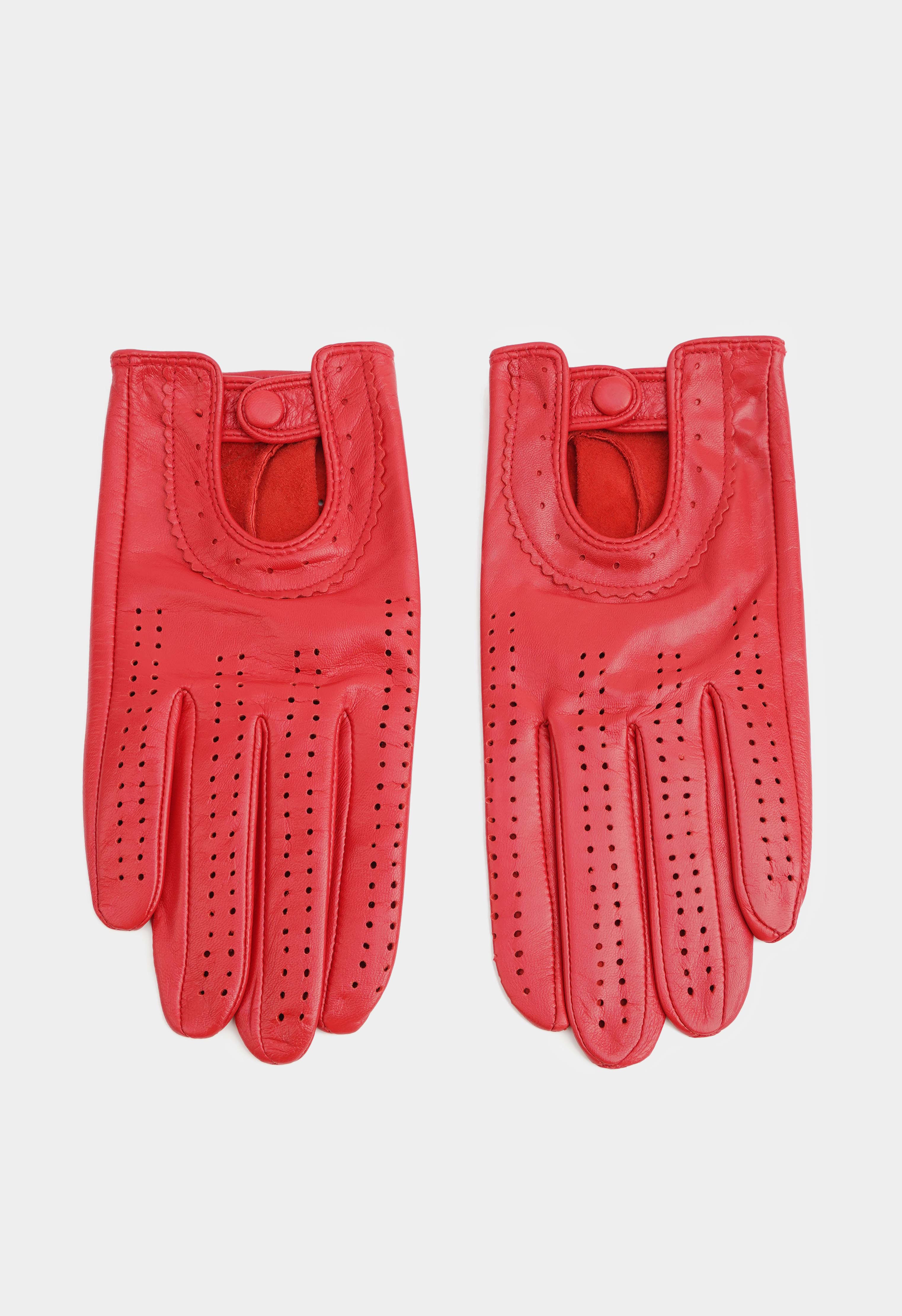 Красные перчатки из натуральной кожи – стильный акцент, который мгновенно освежает любой образ и добавляет ему аккуратности. Мягкая кожа приятно ложится по руке, а перфорация обеспечивает комфорт и легкость в носке. Удобная кнопка на запястье фиксирует посадку и подчеркивает изящный силуэт, чтобы перчатки сидели идеально. Отличный выбор для тех, кто любит практичные, элегантные и по-настоящему заметные детали.