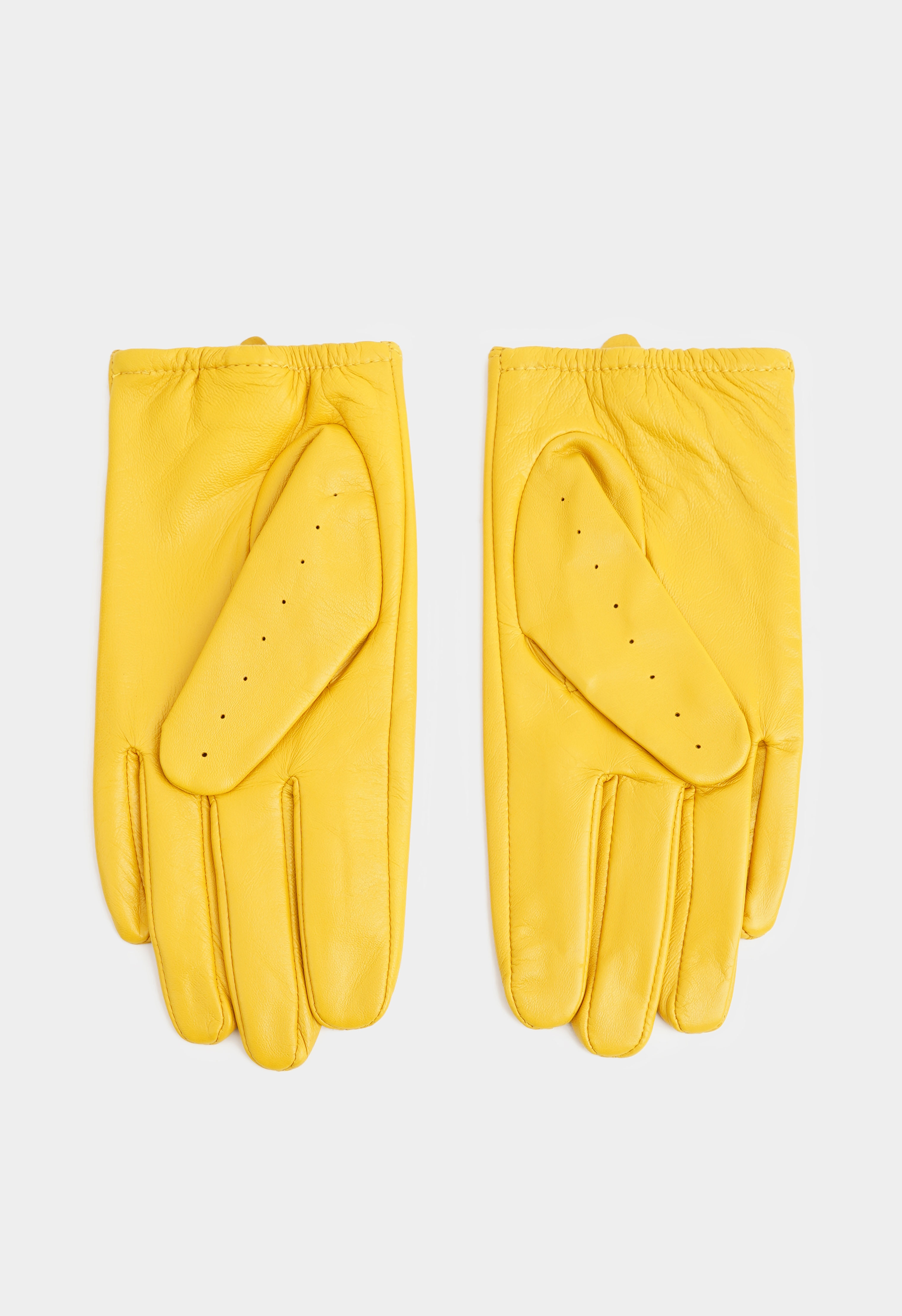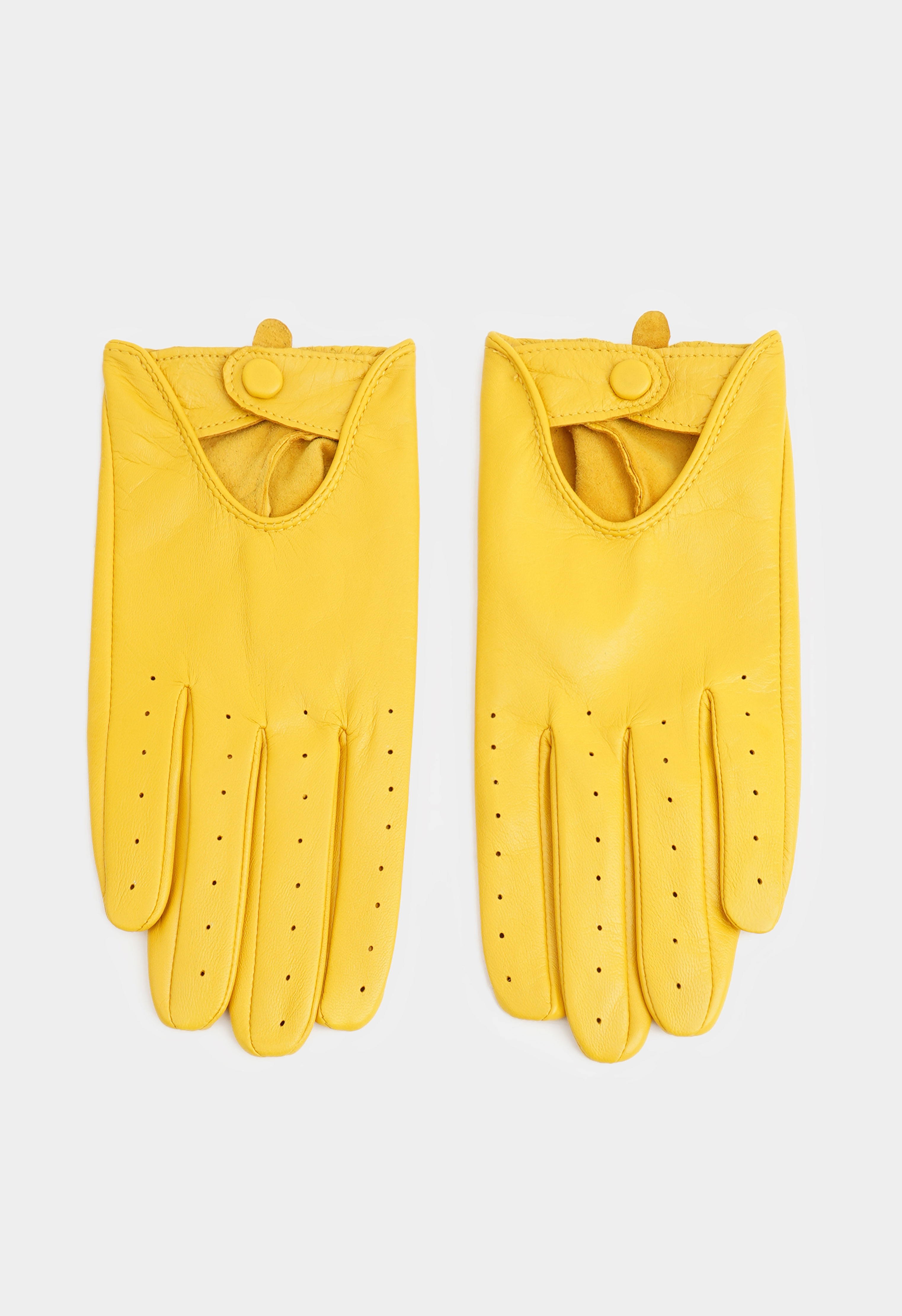 Желтые перчатки из натуральной кожи – эффектная деталь, которая освежает образ и добавляет ему солнечного настроения. Мягкий материал приятно ложится по руке, перфорация обеспечивает комфорт, а застежка на кнопке на запястье помогает отрегулировать посадку и держать форму. Стильный выбор для тех, кто любит яркие акценты и безупречные детали.