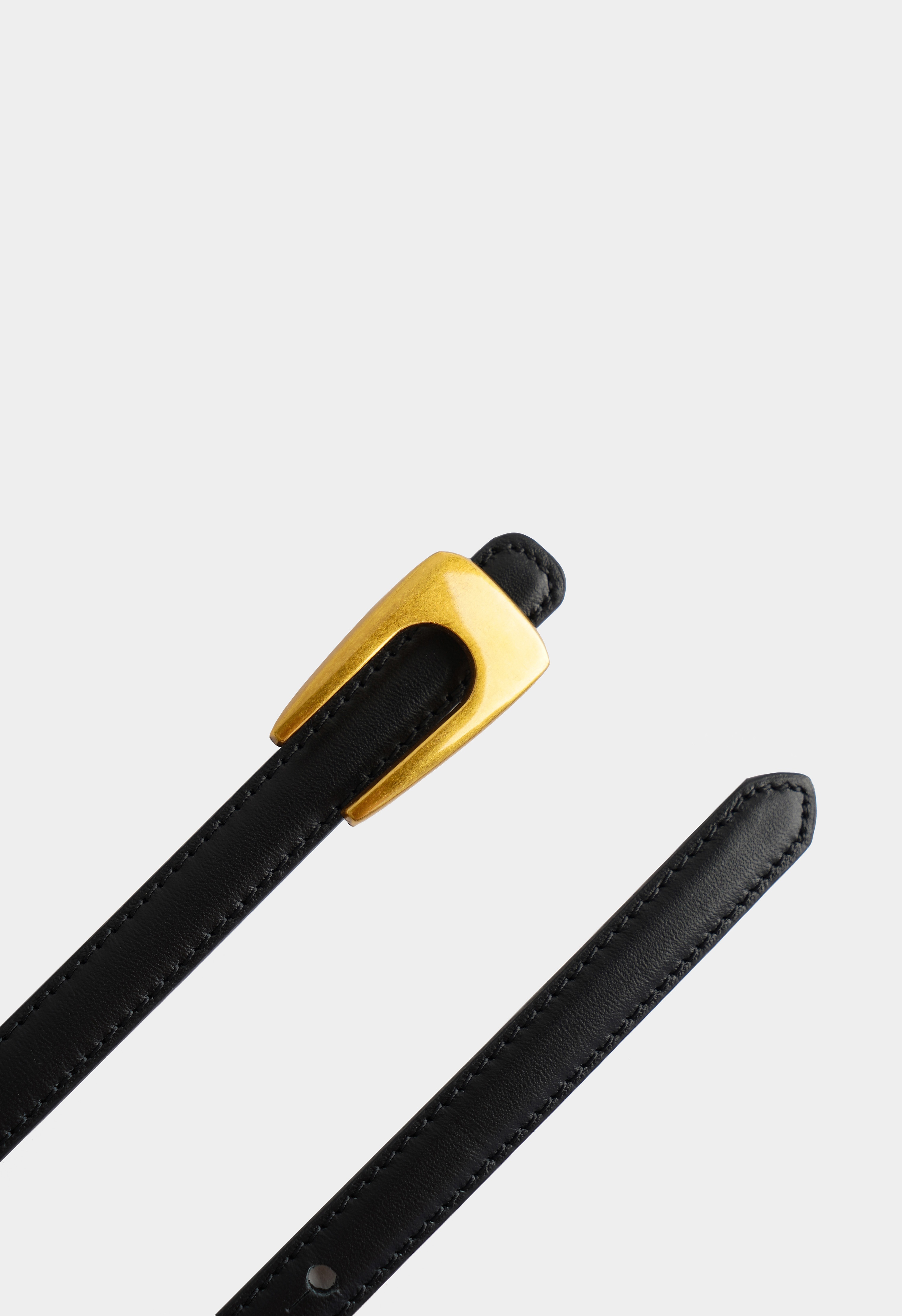 Черный ремень из натуральной кожи – универсальный акцент, который подчеркивает талию и придает образу собранный, дорогой вид. Золотая пряжка лаконичной формы добавляет элегантный блеск и легко сочетается с любой одеждой – от денима до классики.