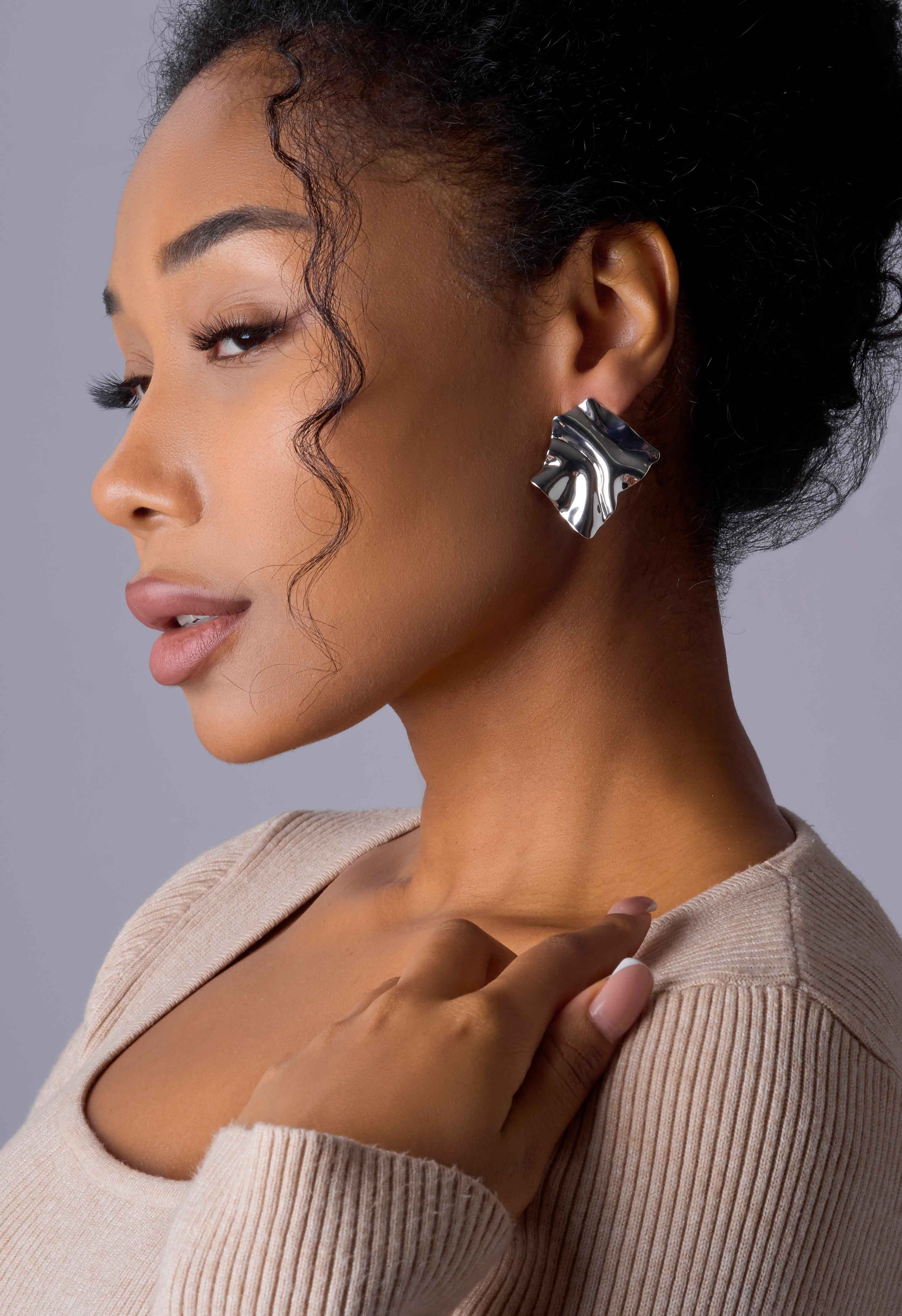 Изысканные серьги благородного серебряного оттенка подчеркнут элегантный образ. Это утонченное украшение оригинальной формы подарит незабываемые ощущения и комфортную носку благодаря застежке на пусете.