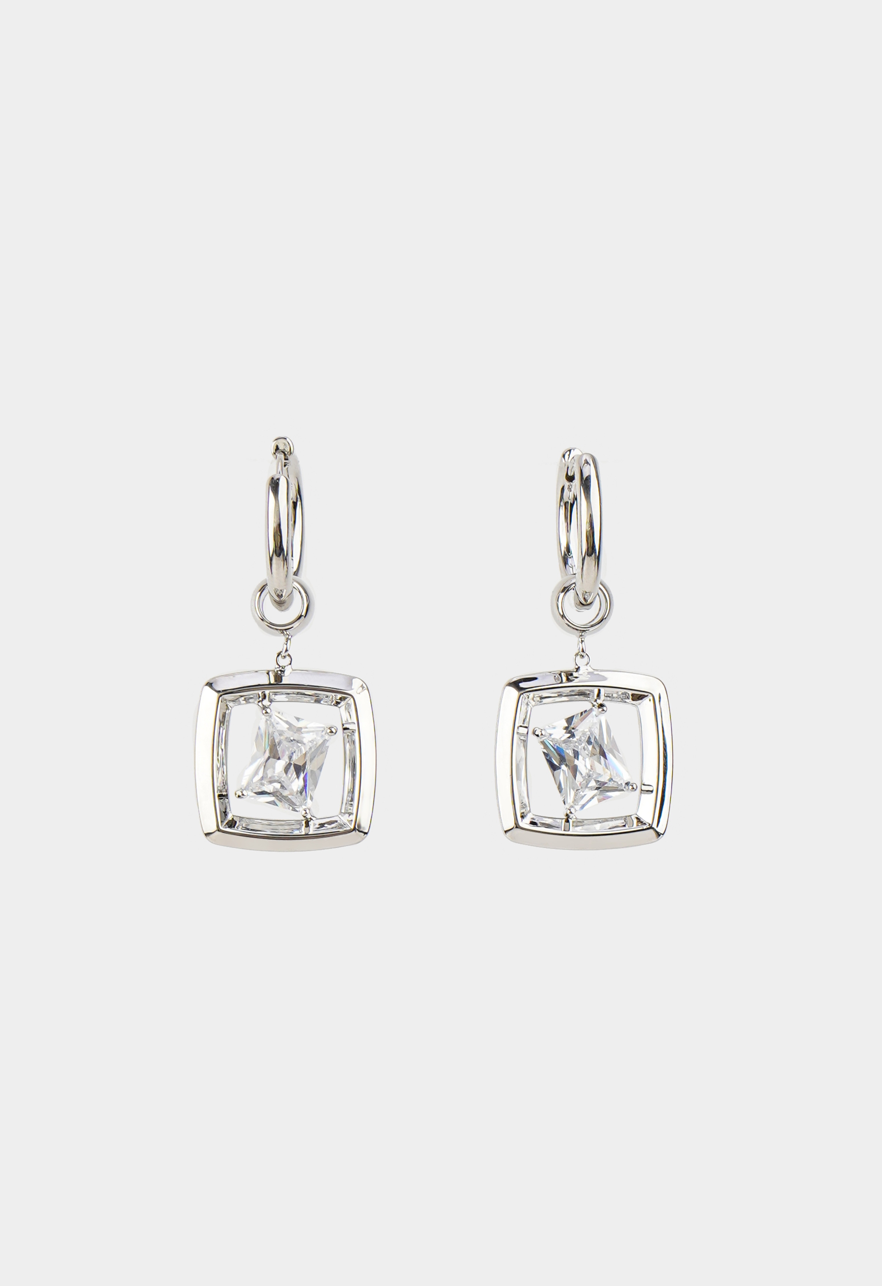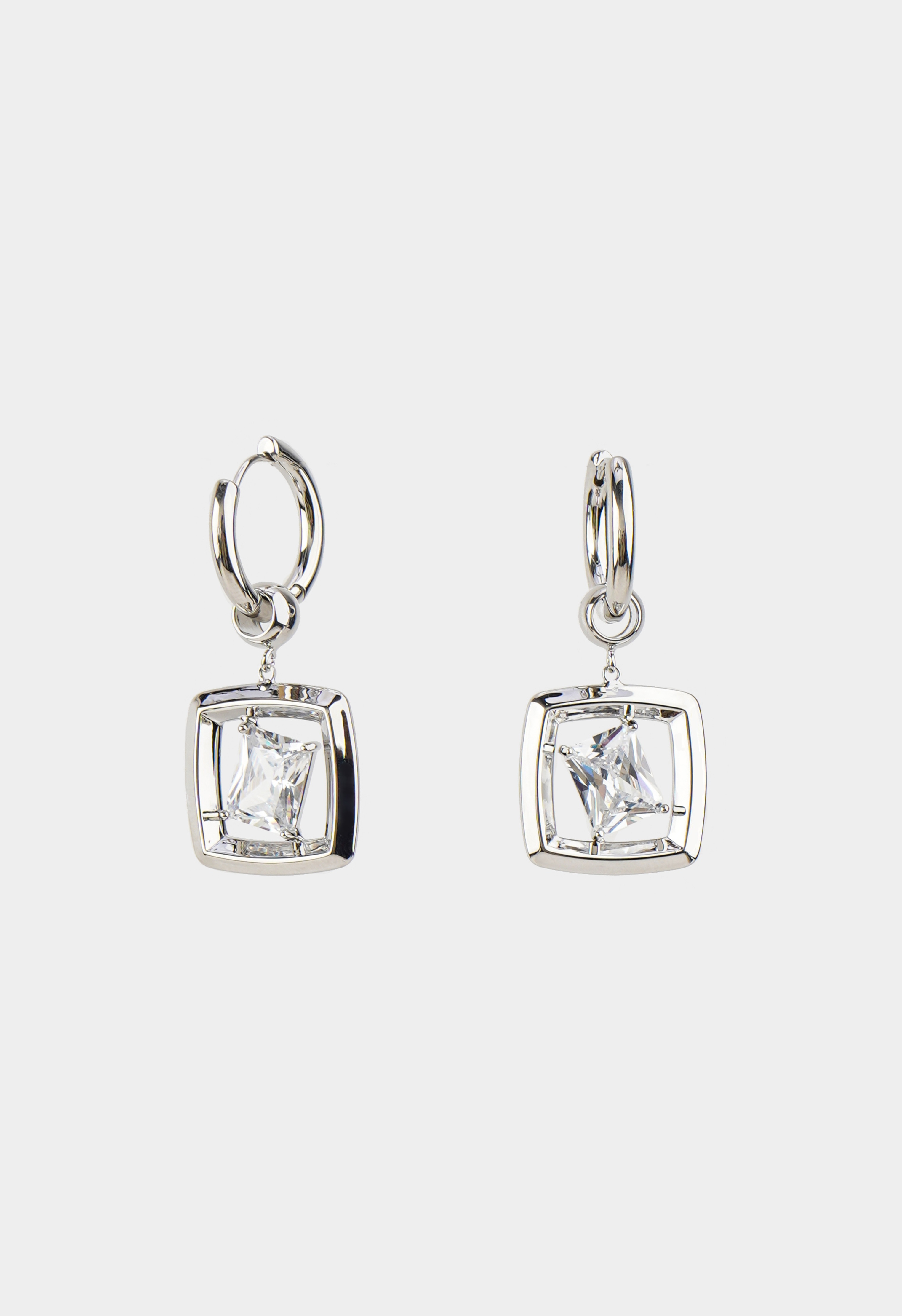 Элегантные серьги серебряного цвета из ювелирного сплава – украшение с мягким сиянием и современным настроением. Застежка конго удобно садится на ухо и надежно фиксируется, а подвесные элементы геометричной формы добавляют легкой динамики при движении. Внутри каждого элемента встроен камень, напоминающий маленькую звездочку: он красиво переливается на свету и делает образ аккуратным, но заметным.