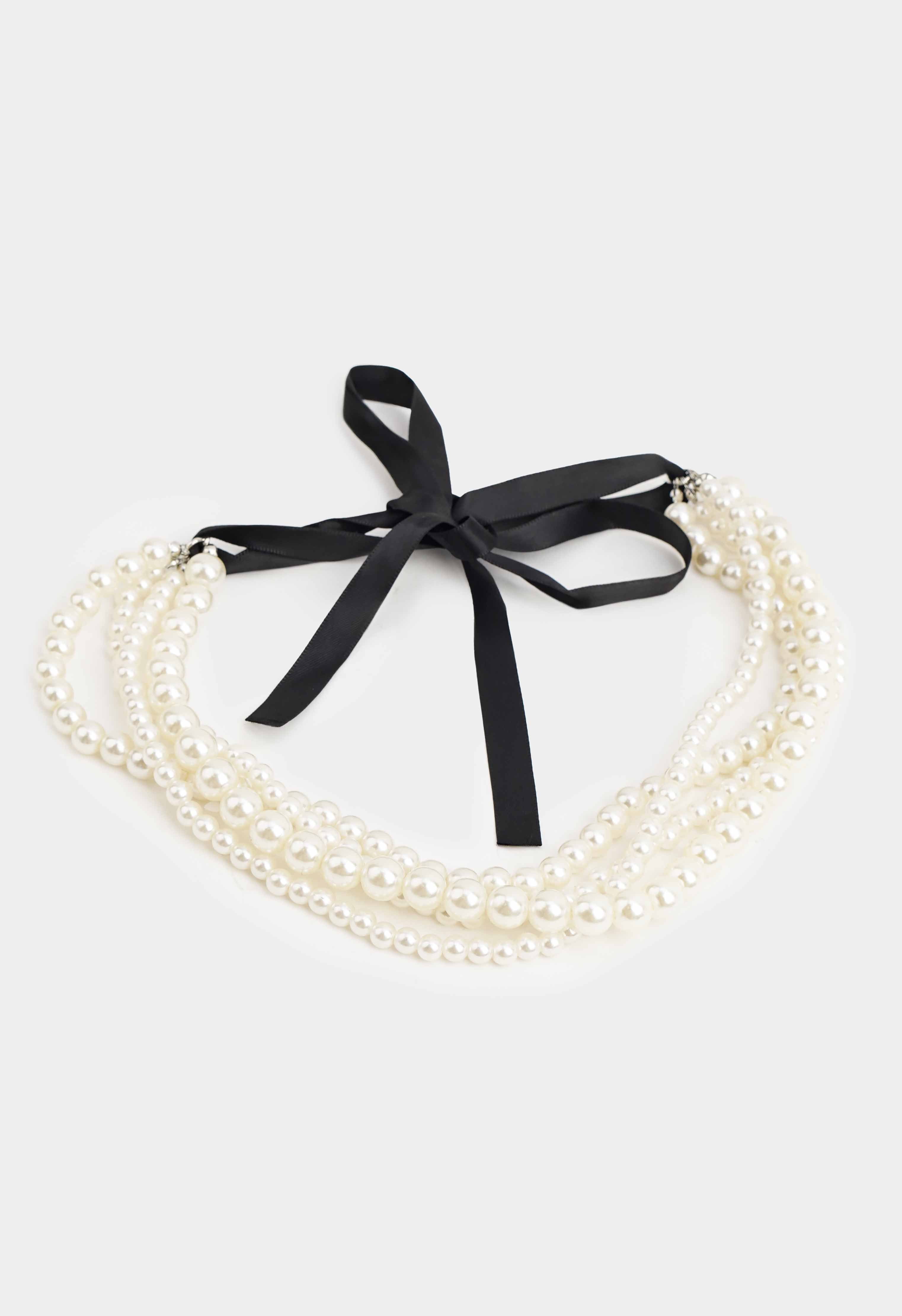 Нежное ожерелье с жемчужными бусинами – эффектное украшение, которое мгновенно добавляет образу романтичность и легкий винтажный шарм. Многорядный дизайн красиво подчеркивает линию шеи, создавая объемный, но при этом нежный акцент. Черная лента позволяет регулировать посадку и завязать аккуратный бант сзади или сбоку.