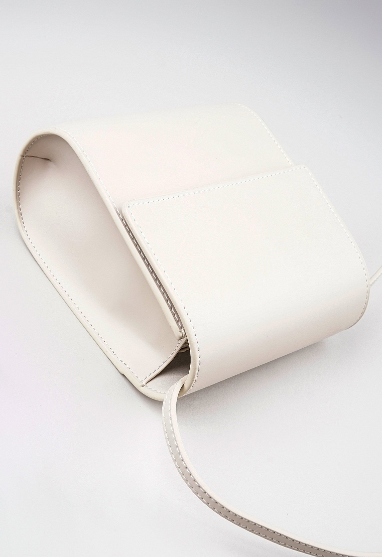 Компактная сумочка из новой коллекции изготовлена из натуральной кожи молочного цвета и дополнена изящным ремешком с пряжкой. Изделие застёгивается на магнит, внутреннее отделение закрывается на молнию и оснащено карманом для мелочей. Минималистичный дизайн позволяет сочетать модель с элементами классического и современного гардероба.