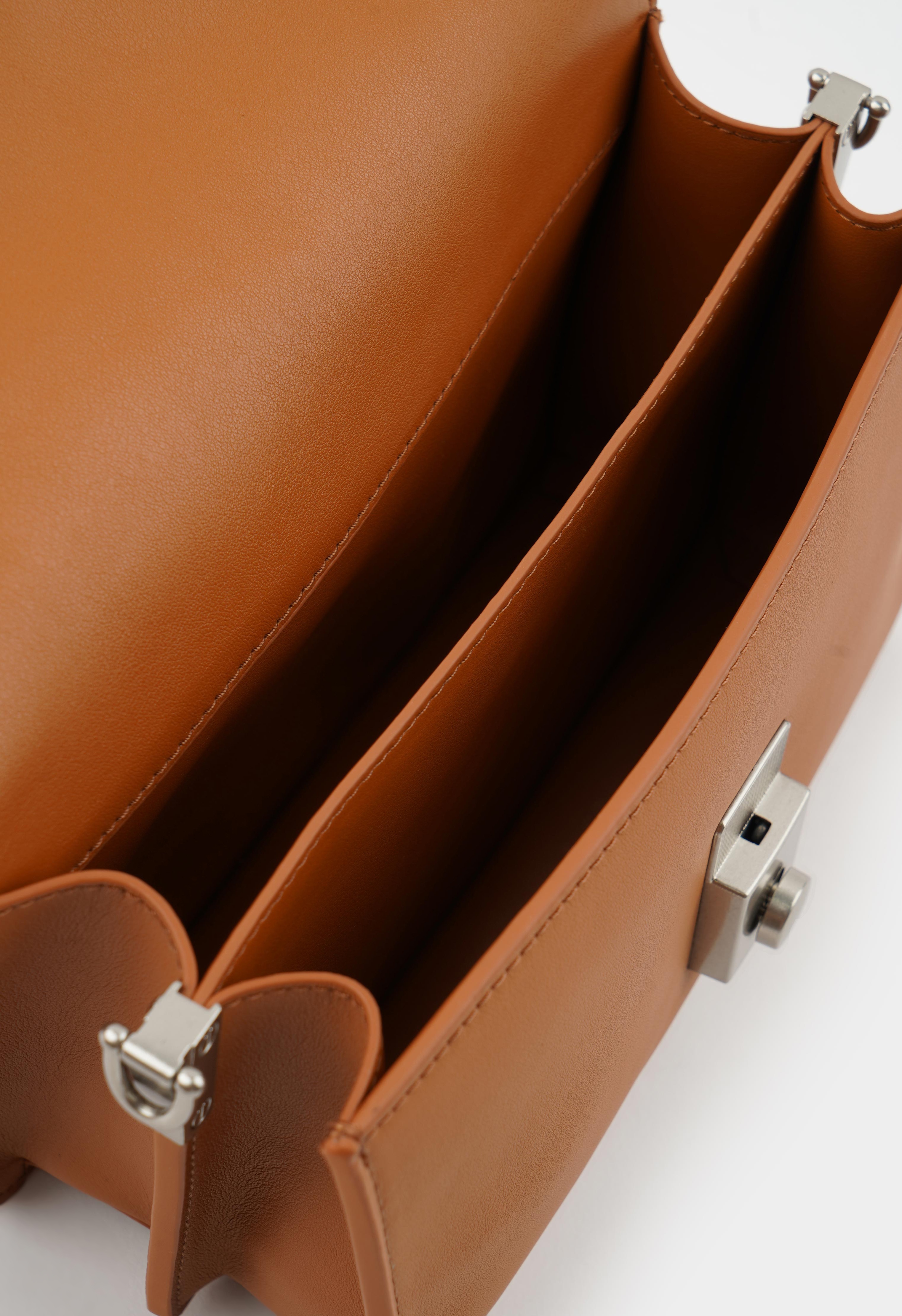 Минималистичная сумка из натуральной кожи актуального рыжего оттенка – это современный взгляд на классику, в котором сочетаются сдержанная элегантность и продуманный комфорт. Стильная пряжка, лаконичная серебряная фурнитура и декоративные кожаные ремешки на карабине придают образу характер и завершенность. Съемная ручка и удобный плечевой ремень позволяют легко менять стиль носки: от строгого до расслабленного городского.