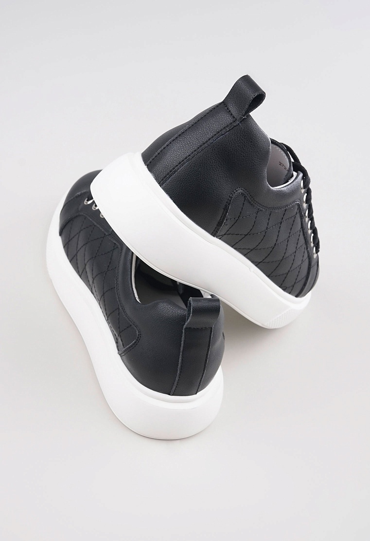 Обратите внимание: данная модель является маломеркой и отлично подходит для ног со средней и широкой полнотой стопы. Советуем проконсультироваться с менеджером по выбору наиболее подходящего Вам размера. Кроссовки на платформе выполнены из натуральной кожи и представлены в новой коллекции в чёрном цвете. Изделие декорировано геометричной строчкой. Специальная петля на заднике позволяет легко одевать и снимать модель, шнуровка регулирует полноту стопы. Актуальный силуэт удачно сочетается с одеждой из денима и превосходно впишется в повседневный образ.