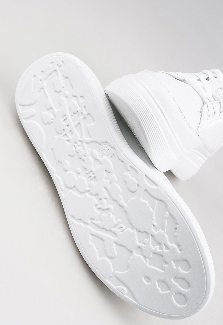 Обратите внимание: данная модель идёт в размер и отлично подходит для ног со средней полнотой стопы. Советуем проконсультироваться с менеджером по выбору наиболее подходящего Вам размера. Стильные кеды из новой коллекции выполнены из натуральной гладкой кожи и представлены в белом цвете. Шнуровка обеспечивает особенно комфортную посадку, мягкая кожаная подкладка идеально облегает стопу. Съёмная анатомическая стелька предохраняет от усталости в конце дня. Однотонная модель удачно дополнит как классический, так и ультрамодный гардероб.