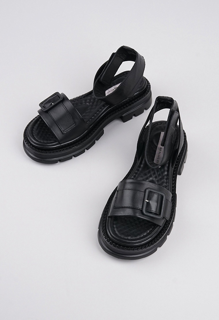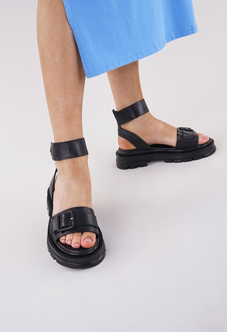 Обратите внимание: данная модель идёт в размер и отлично подходит для ног со средней и узкой полнотой и любым подъёмом стопы. Оригинальные сандалии из новой коллекции выполнены из натуральной кожи и представлены в чёрном цвете. Современный крой на широком каблуке дополнен удобной застёжкой в виде липучки. Анатомическая кожаная стелька обеспечивает высокий уровень комфорта в течение дня. Актуальная модель станет украшением летнего наряда в городском стиле.