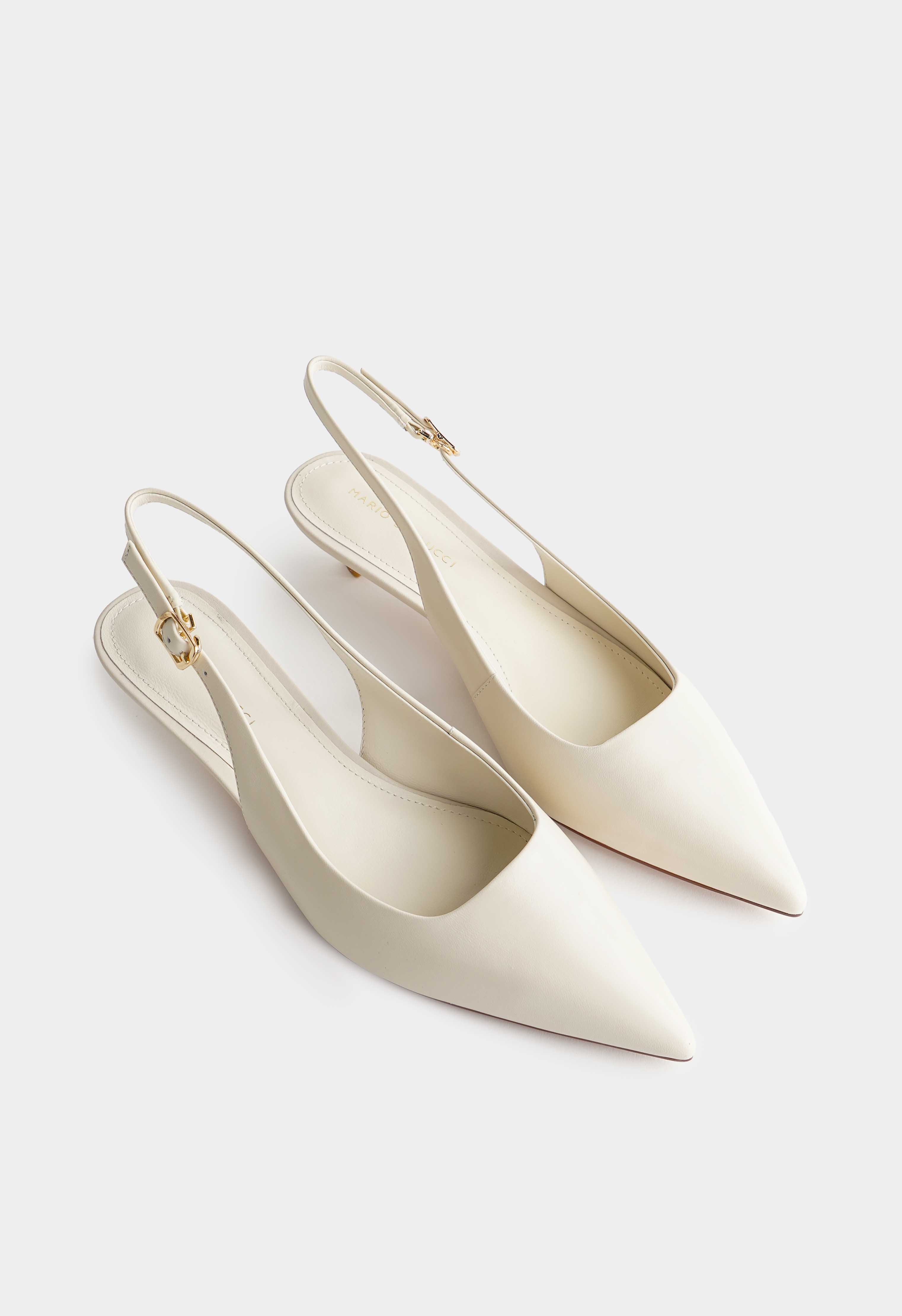 Элегантные молочные туфли – идеальный выбор для создания женственного и утонченного образа. Модель выполнена из натуральной кожи, гарантируюшей комфорт в носке и долговечность. Заостренный мысок визуально вытягивает силуэт, а изящный каблук-рюмка придает походке легкость и грацию. Аккуратная золотая пряжка добавляет стильный акцент и подчеркивает премиальный характер модели. Эти туфли органично впишутся как в деловой гардероб, так и в вечерние образы, легко сочетаясь с классическими юбками, платьями и современными брюками.