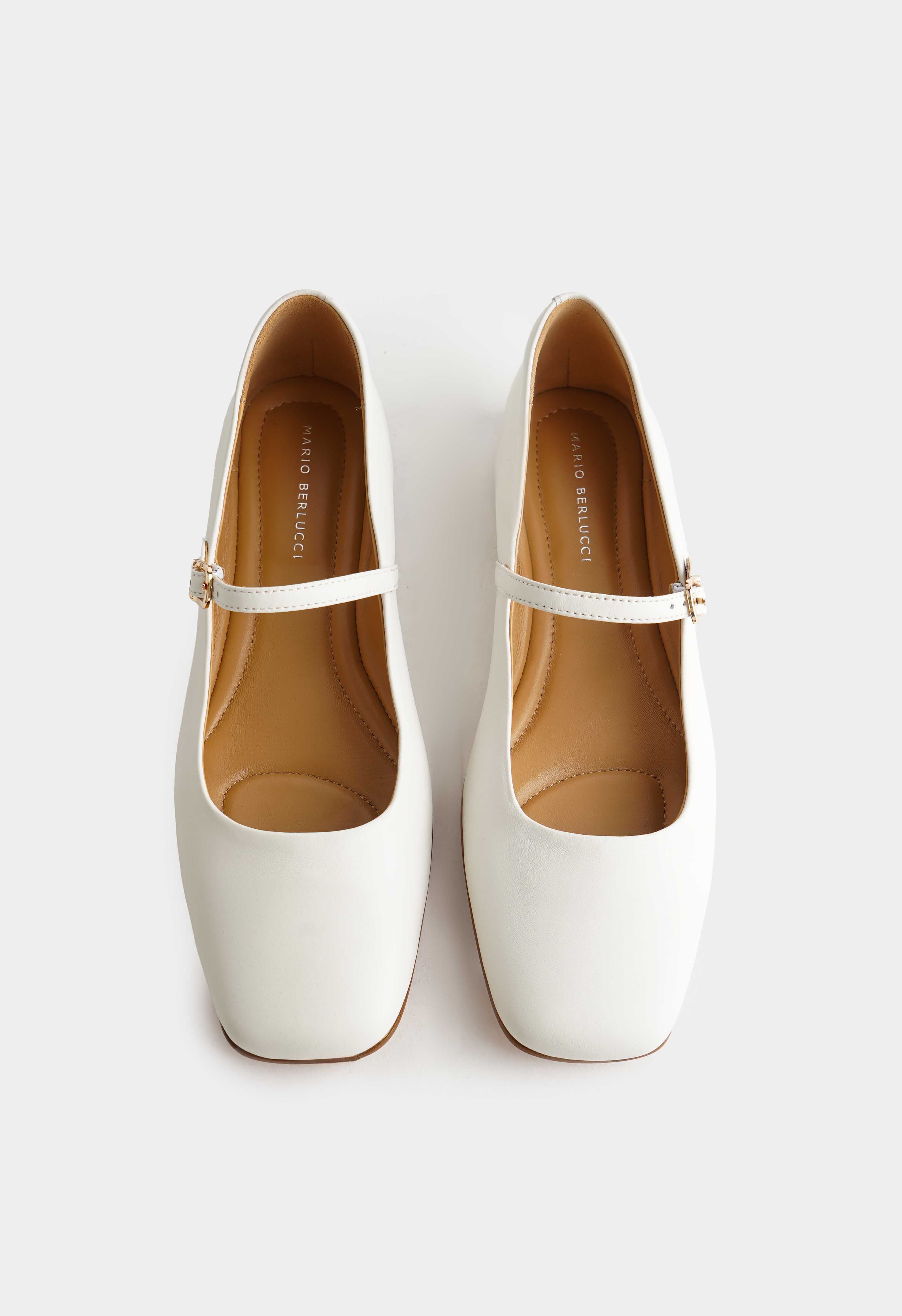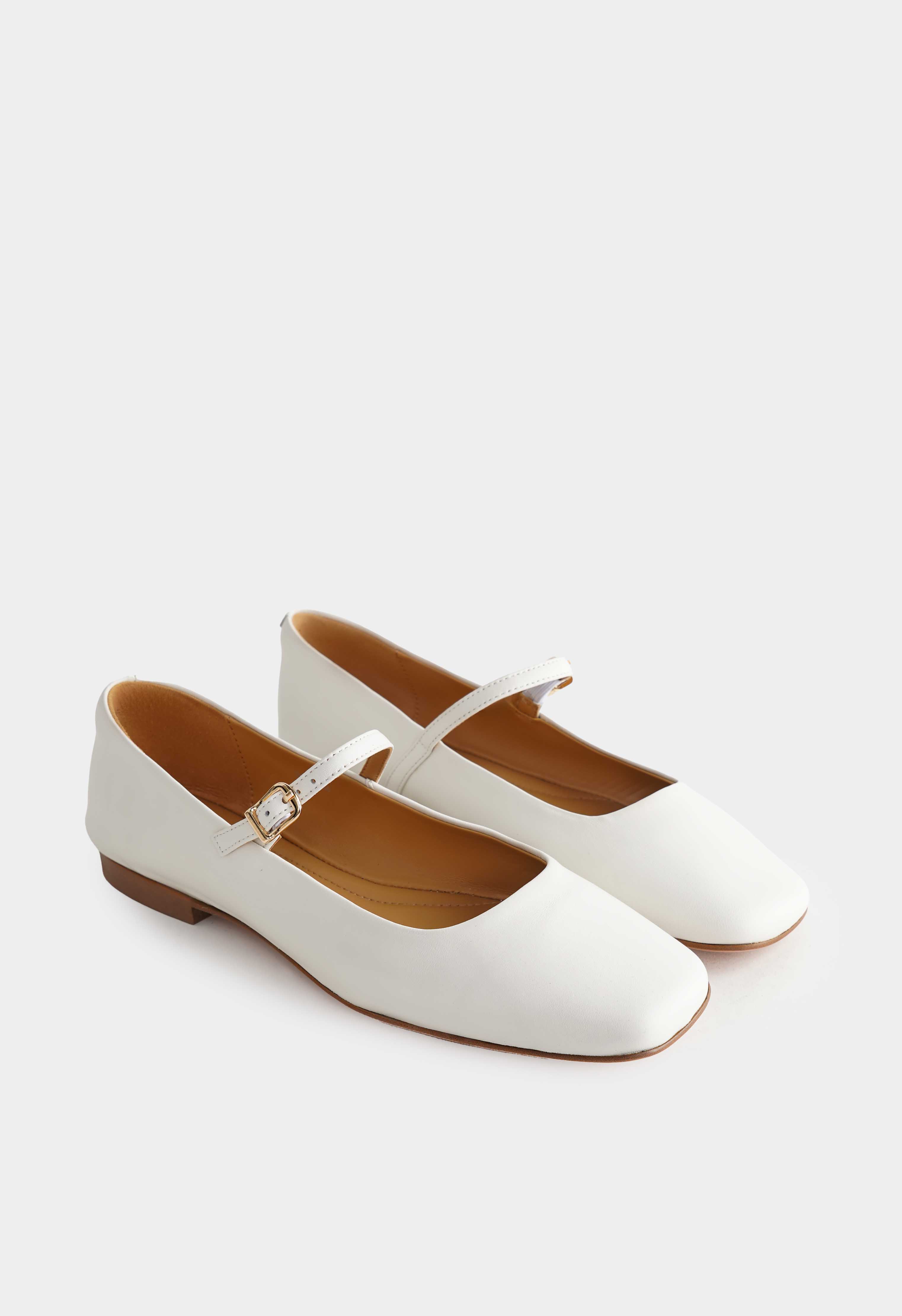 Белые балетки из натуральной кожи – универсальная пара, которая выглядит строго и аккуратно без лишнего декора. Квадратный мысок придает силуэту современную четкость, а ремешок с золотой пряжкой добавляет деталь, которая делает образ более собранным и «дорогим». Невысокий венский каблук удобен на каждый день. Гибкая подошва поддерживает комфортный шаг и помогает спокойно провести день в движении.