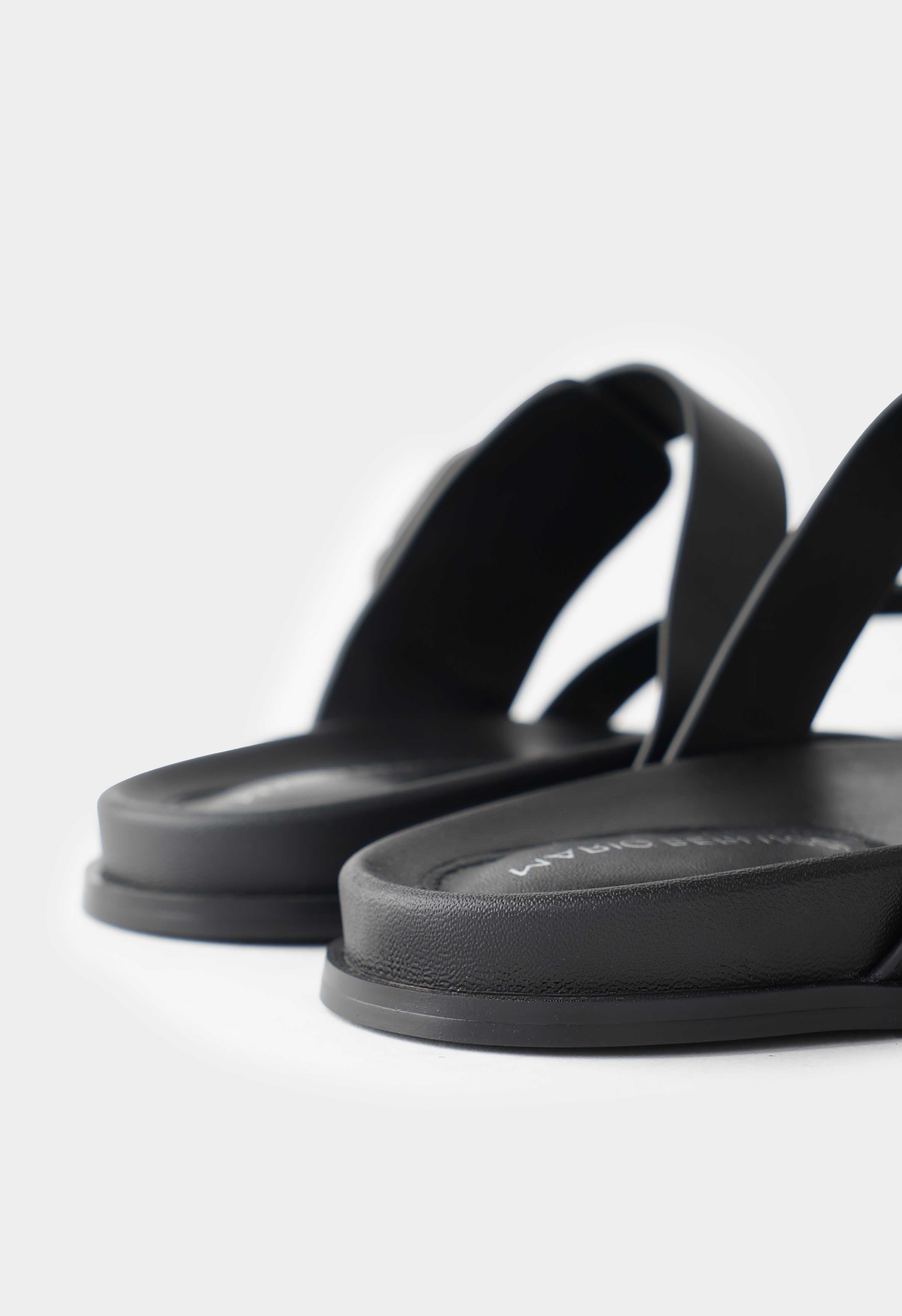 Элегантные черные пантолеты из натуральной кожи – идеальный выбор для стильного повседневного образа. Открытый мысок и широкие перекрестные ремешки создают легкость и визуальный акцент, а регулируемая металлическая пряжка добавляет современный штрих. Платформа придает уверенный шаг, в то время как жесткая подошва обеспечивает долговечность и устойчивость при ходьбе. Эти пантолеты гармонично сочетают минимализм и практичность, делая их универсальным дополнением к любому образу.