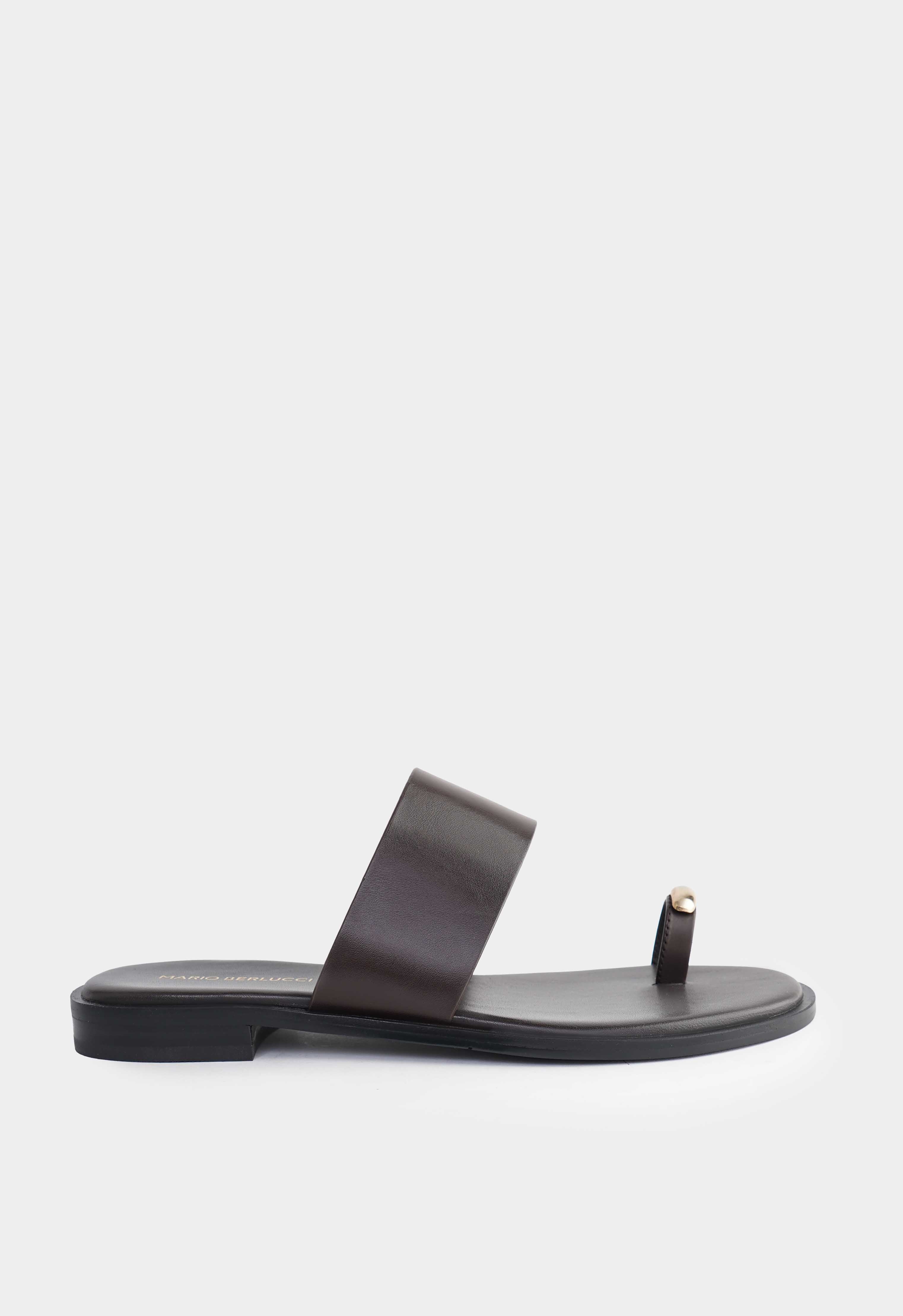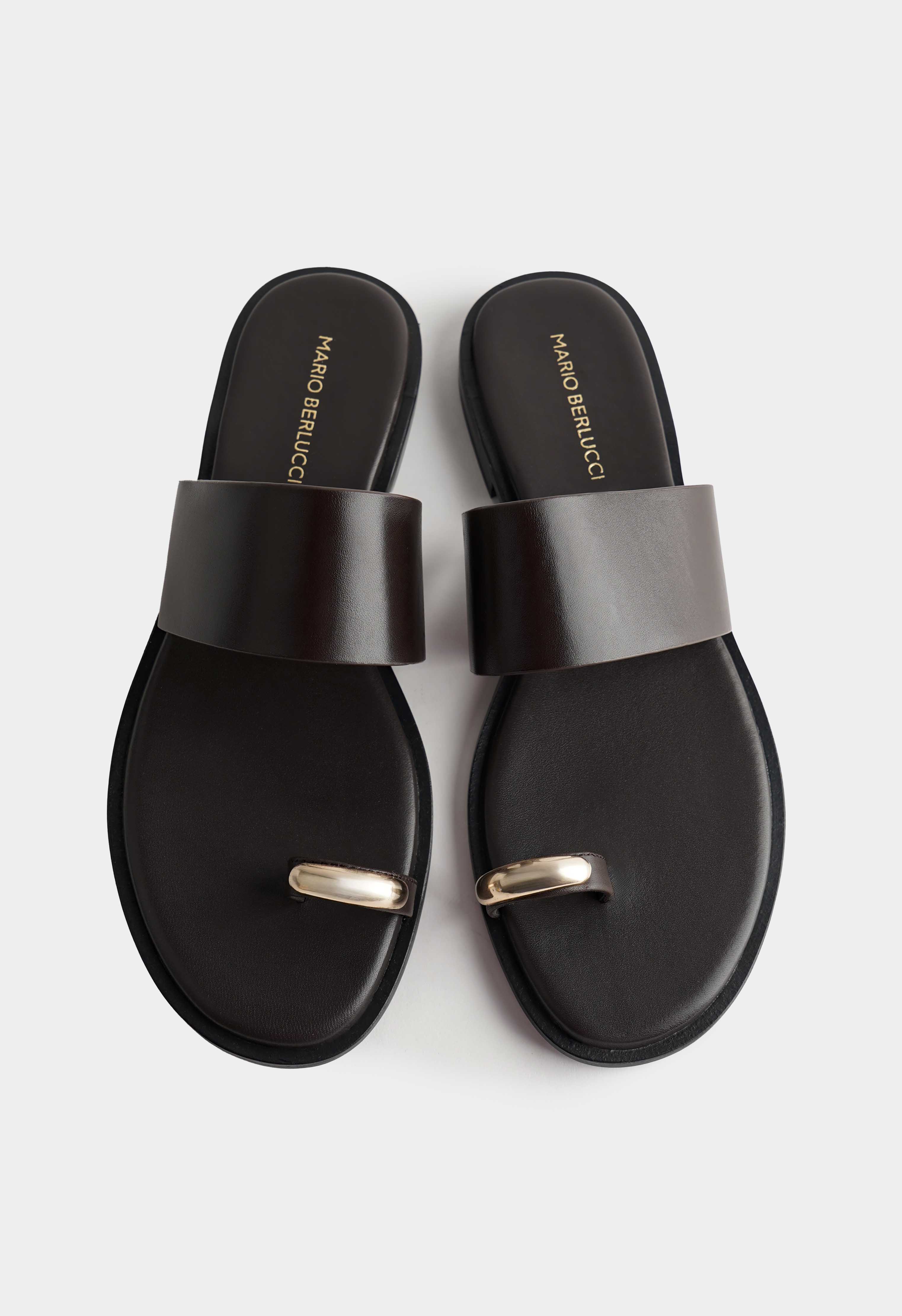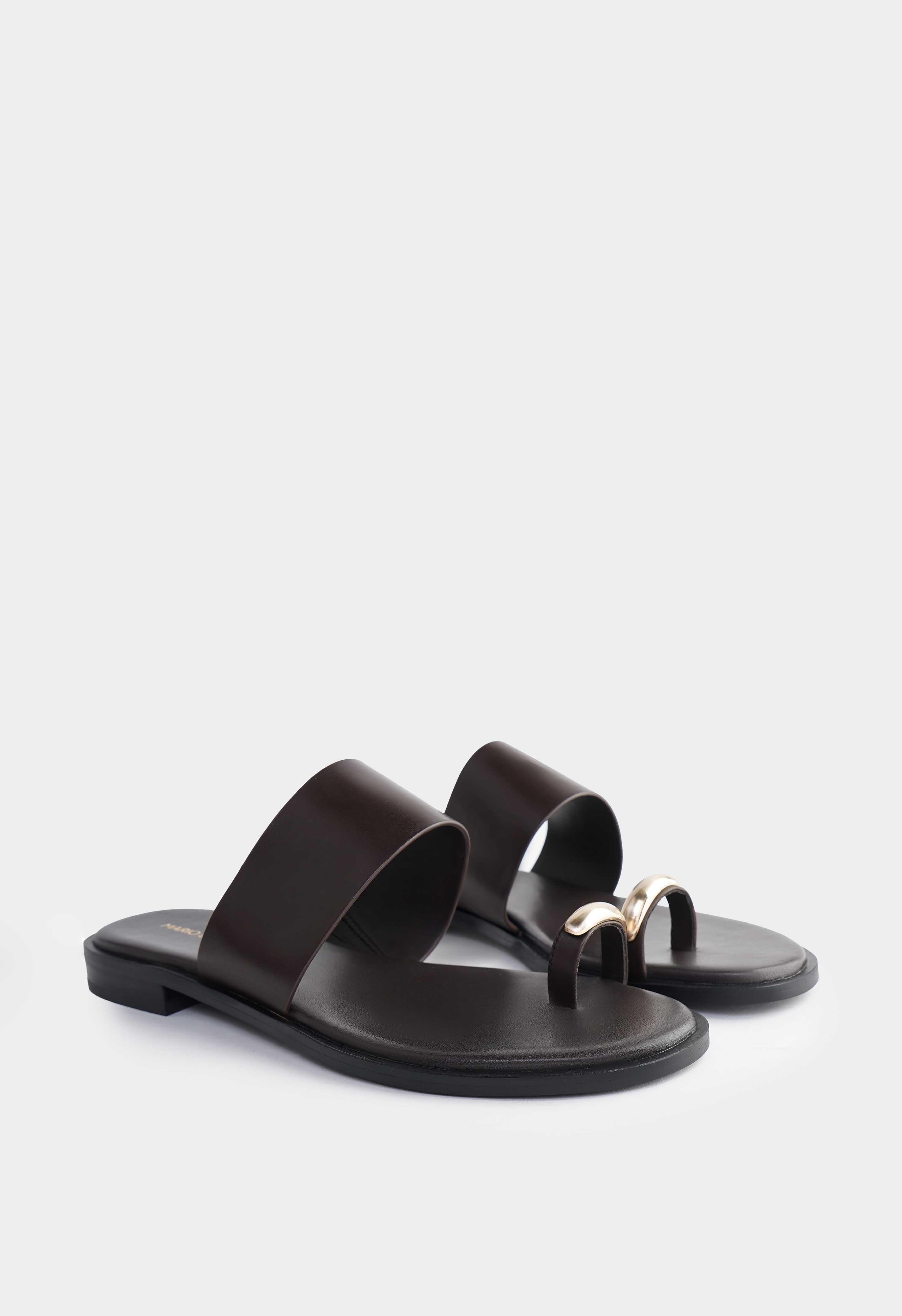 Коричневые кожаные сандалии с открытым мысом – лаконичная пара, которая выглядит дорого и аккуратно в любом летнем образе. Натуральная кожа смотрится гладко и благородно, широкая перемычка надежно фиксирует стопу, а тонкое кольцо на пальце с золотой фурнитурой добавляет изящный акцент. Невысокий венский каблук делает силуэт более собранным и удобным на каждый день, в то время как жесткая подошва держит форму.
