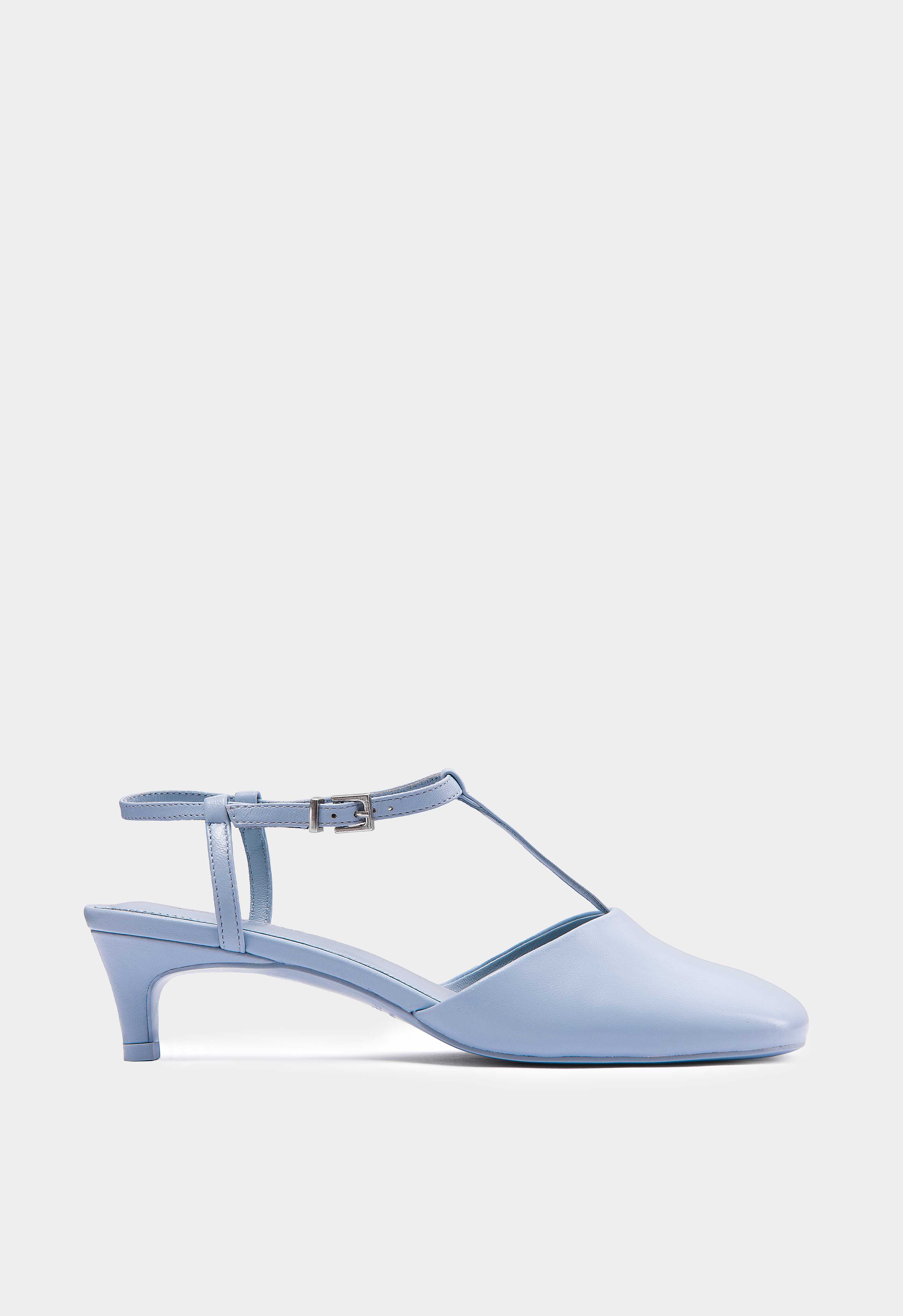 Голубые туфли из натуральной кожи – аккуратная пара с легким оттенком и строгой геометрией, которая красиво освежает образ. Квадратный мысок делает силуэт современным и собранным, а тонкий ремешок фиксирует стопу и подчеркивает подъем. Серебряная пряжка добавляет сдержанный акцент и аккуратно завершает дизайн. Каблук-рюмка дает изящную высоту и уверенную опору, жесткая подошва держит форму и помогает шагать стабильно – идеальный вариант для офиса, мероприятий и летних выходов.