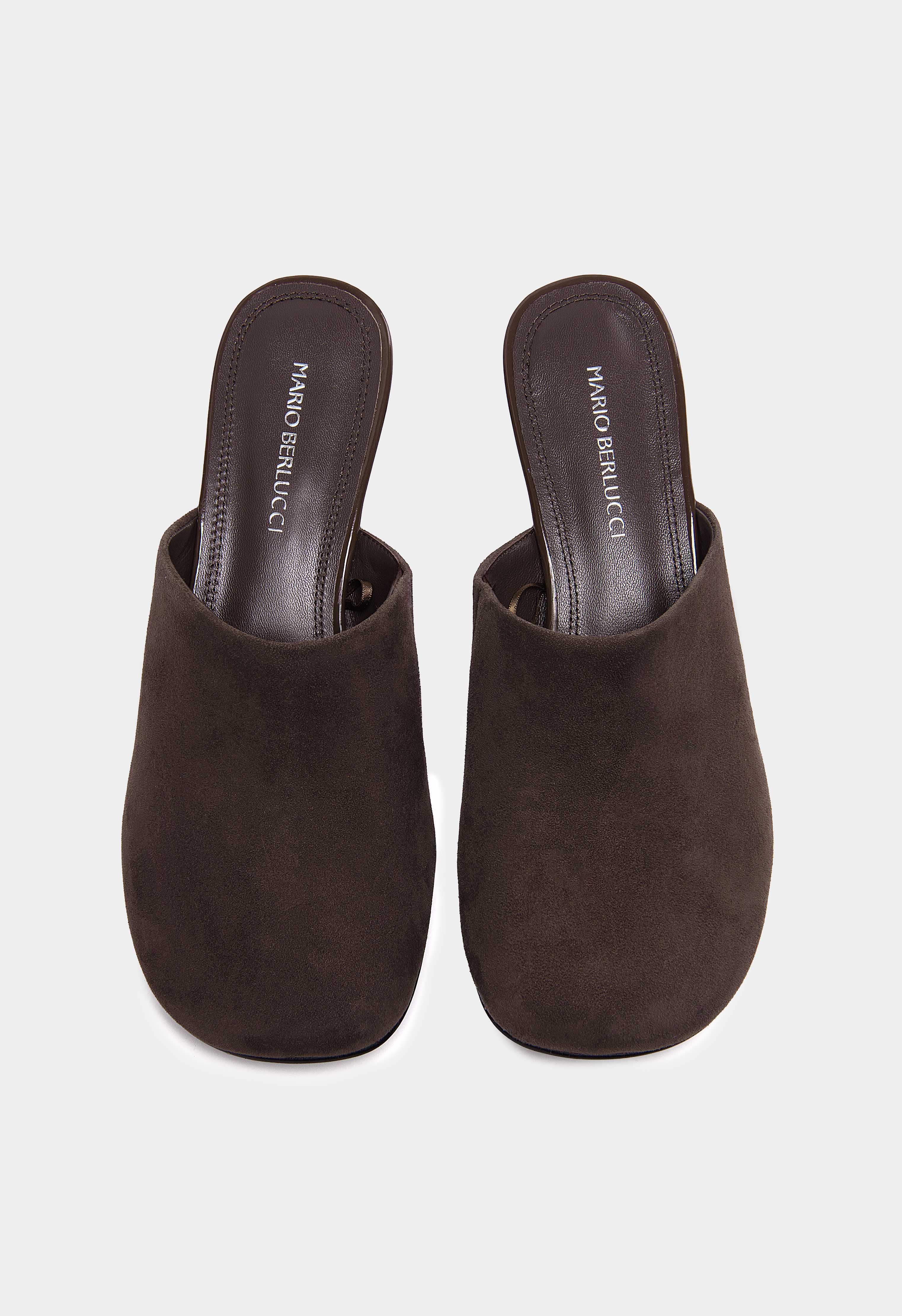 Коричневые мюли из натуральной замши – лаконичная пара с благородной бархатистой фактурой, которая выглядит спокойно и очень элегантно. Квадратный мысок задает современную геометрию и делает силуэт более собранным, а изящный каблук-рюмка добавляет аккуратную высоту без лишней нагрузки. Втачная резинка помогает посадке быть комфортной и более точной, сохраняя чистые линии верха. Жесткая подошва держит форму и обеспечивает стабильную опору – отличный вариант для офиса, мероприятий и летних выходов, когда хочется выглядеть утонченно и уверенно.