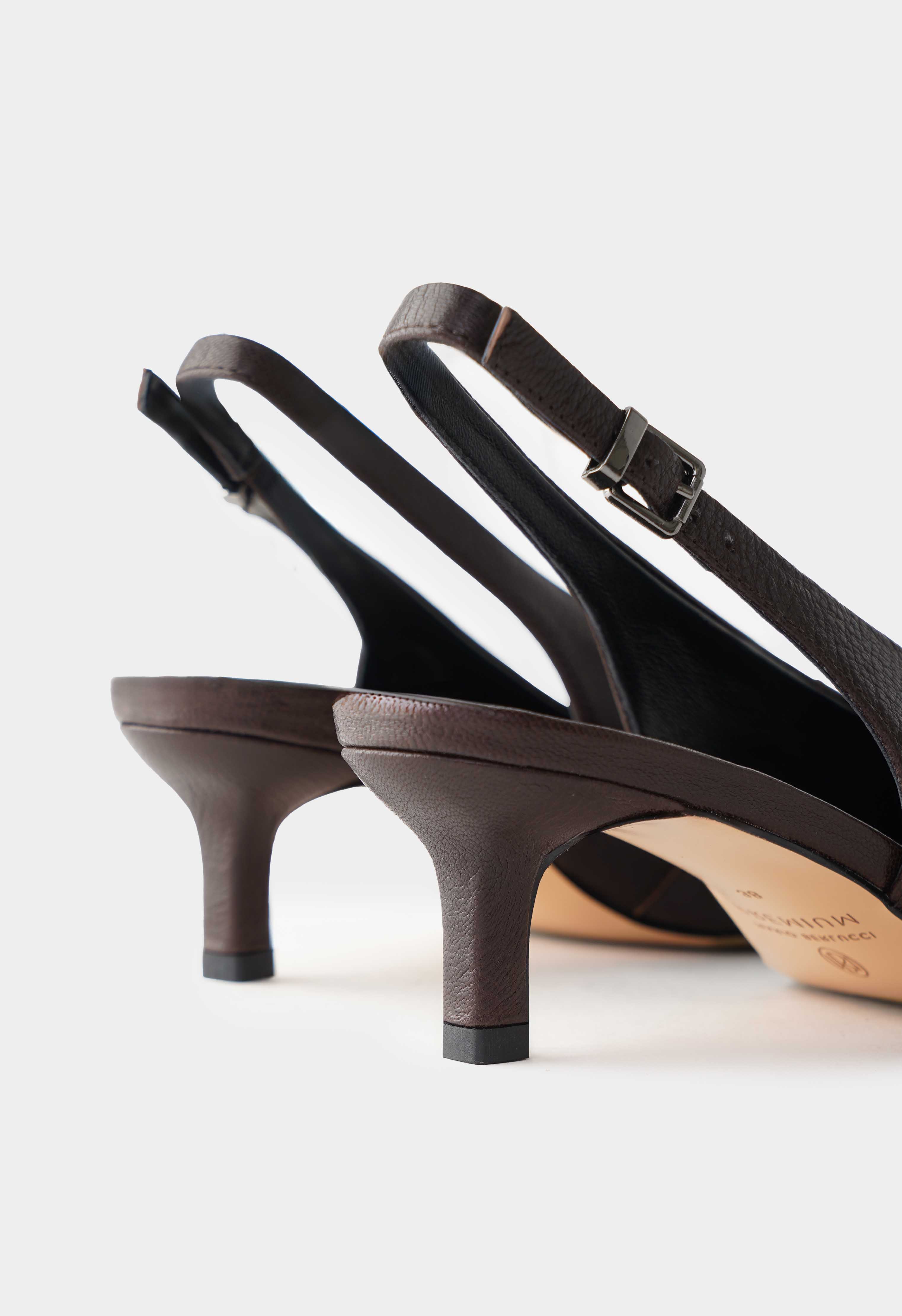 Эти коричневые туфли из натуральной кожи – элегантная классика с современным характером: квадратный мысок придает образу актуальность, а изящный каблук-рюмка подчеркивает женственный силуэт и обеспечивает комфортный подъем. Металлическая фурнитура с аккуратной пряжкой добавляет стильный акцент, а жесткая подошва гарантирует устойчивость и уверенность в каждом шаге.