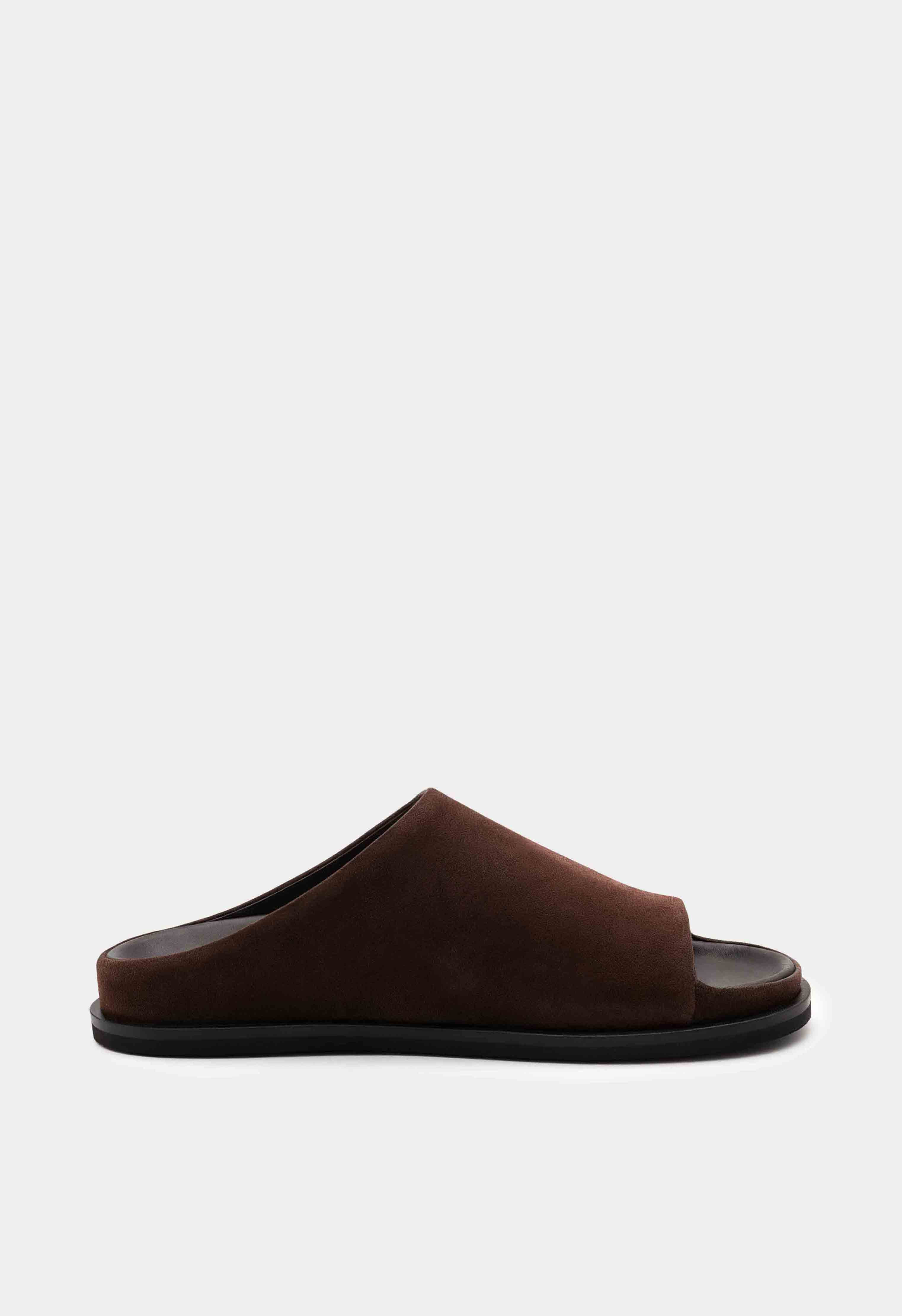 Коричневый пантолеты из натуральной замши – минималистичная пара, которая выглядит свежо и аккуратно в любом летнем образе. Широкий замшевый верх мягко закрывает стопу, а открытый мысок добавляет легкости и подчеркивает педикюр. Платформа деликатно приподнимает силуэт и делает посадку более удобной для длительных прогулок. Гибкая подошва приятно пружинит при шаге и поддерживает комфорт в течение дня – отличный вариант для города, отпуска и расслабленных выходных.