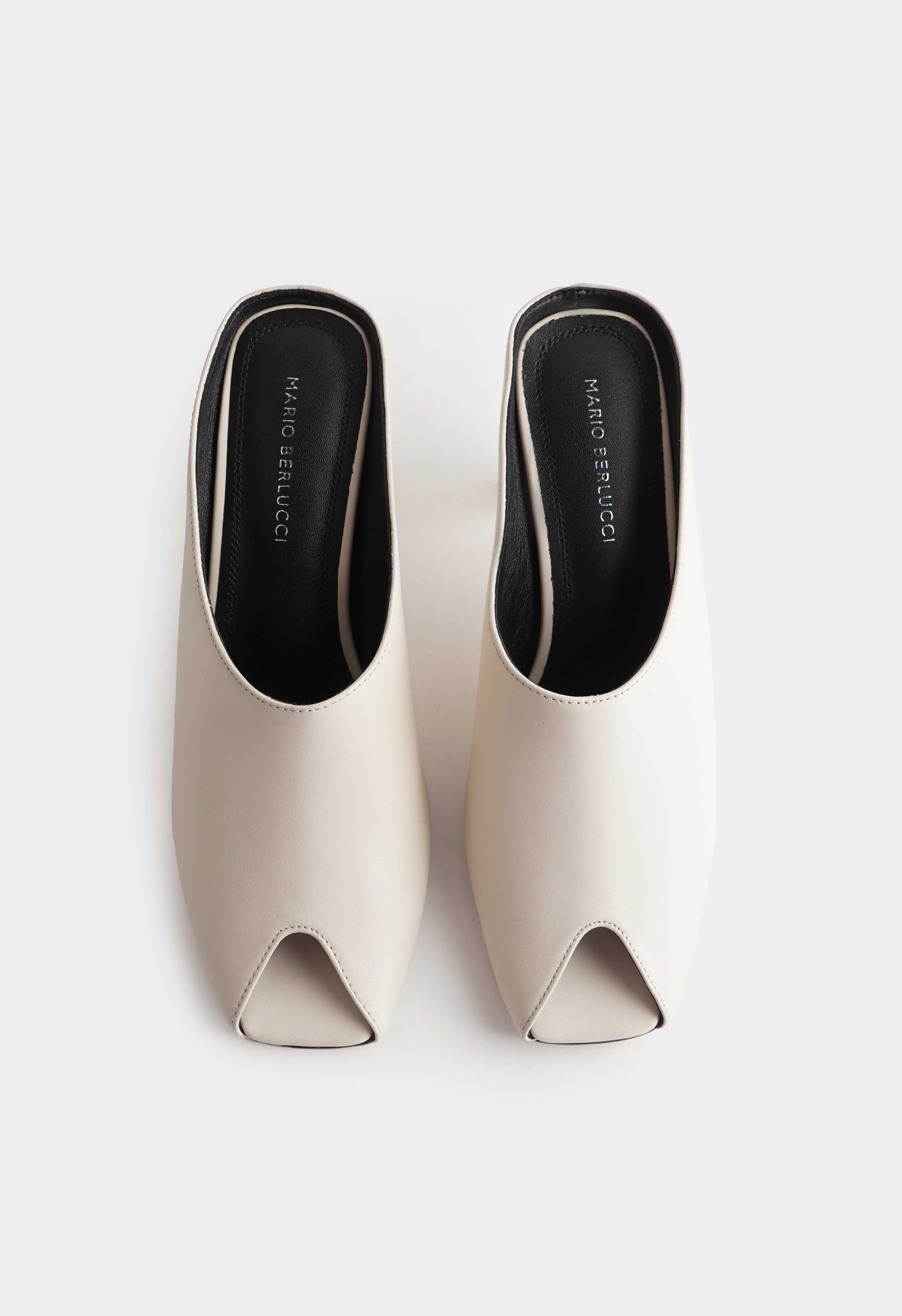 Молочные мюли из натуральной кожи – элегантная пара с аккуратными линиями и выразительным силуэтом, которая моментально делает образ более собранным. Открытый мысок добавляет легкости и красиво подчеркивает педикюр. Изящный каблук-рюмка придает женственности и утонченной высоты, оставаясь устойчивым для уверенного шага. Жесткая подошва держит форму и обеспечивает стабильную походку.