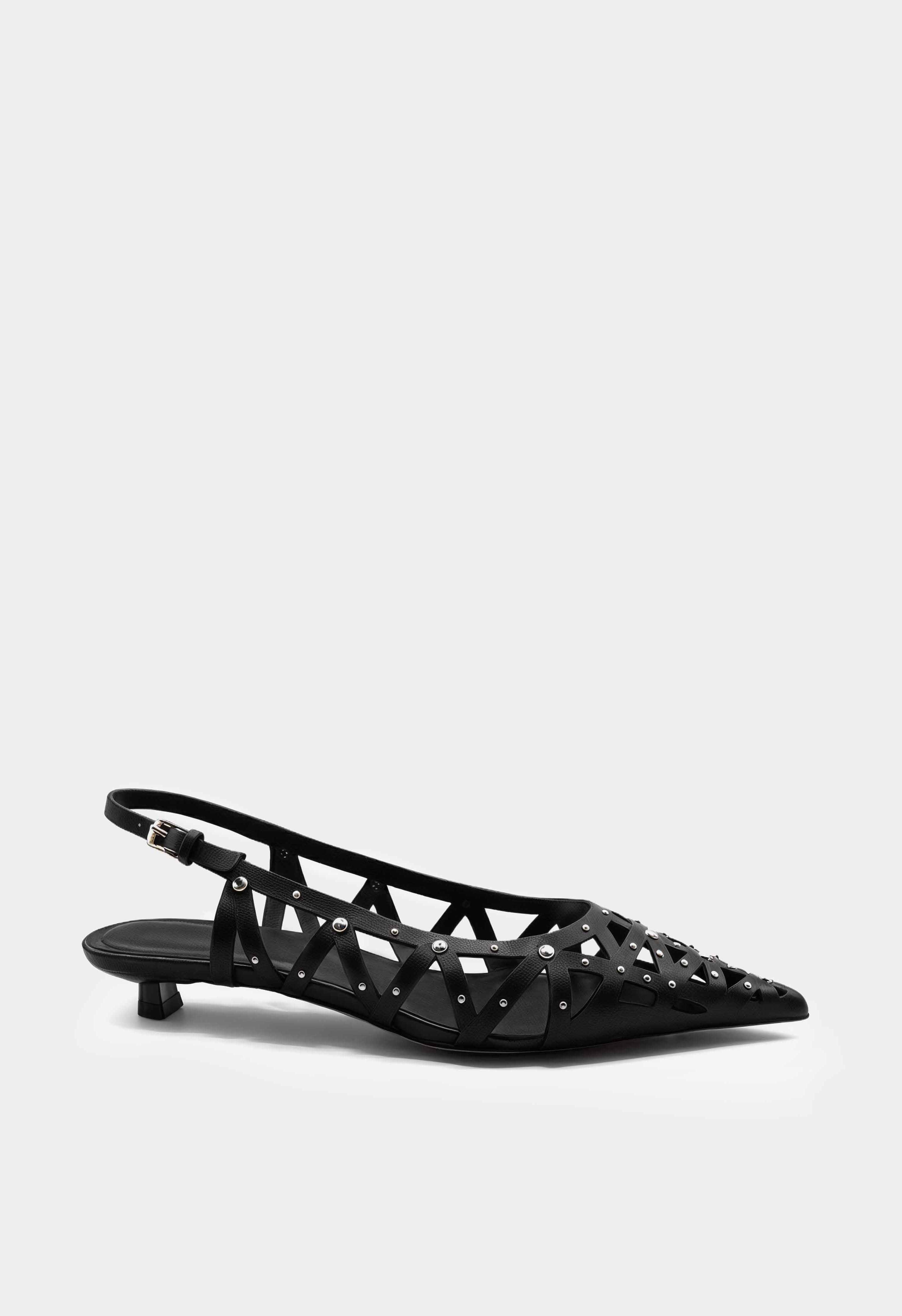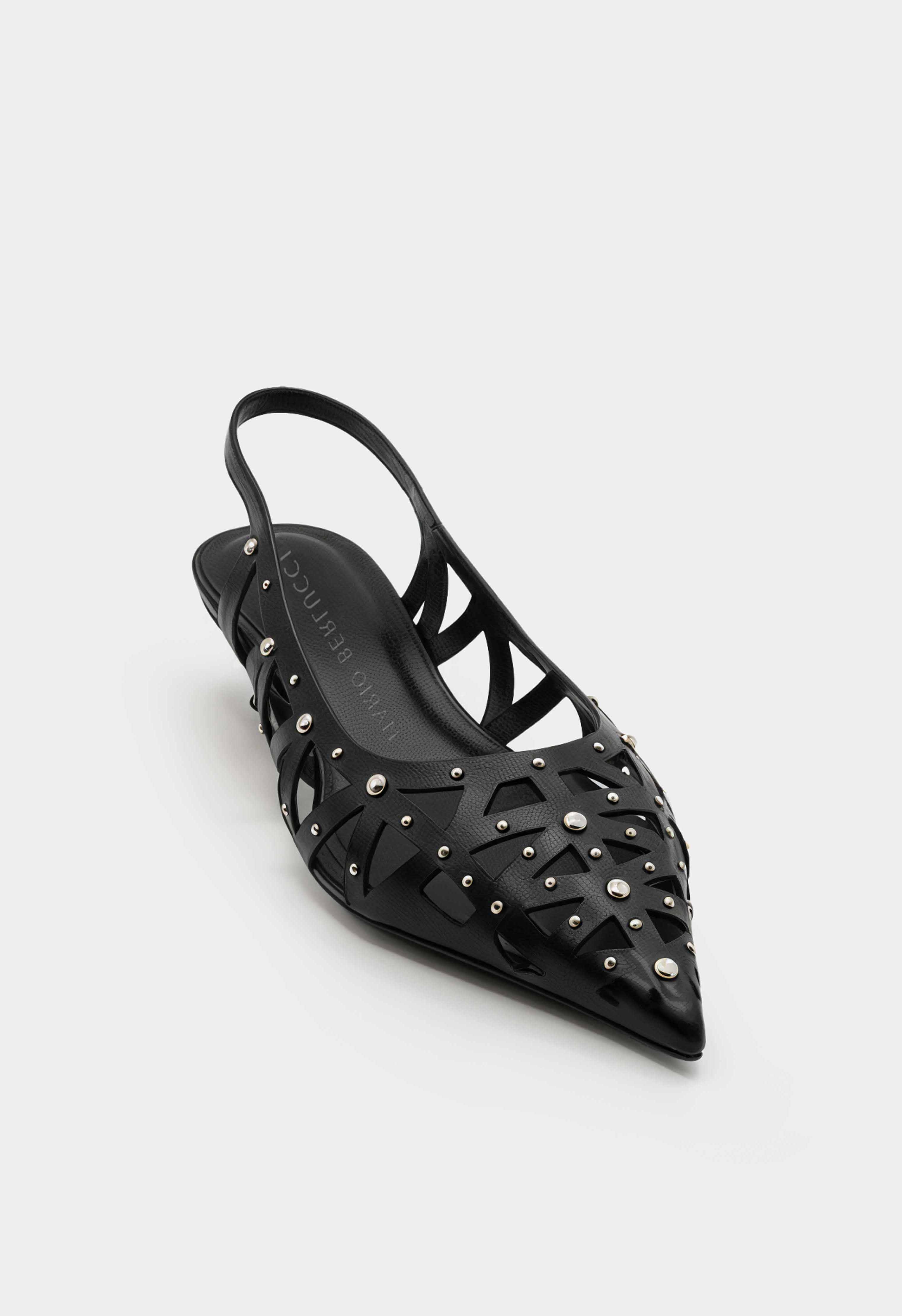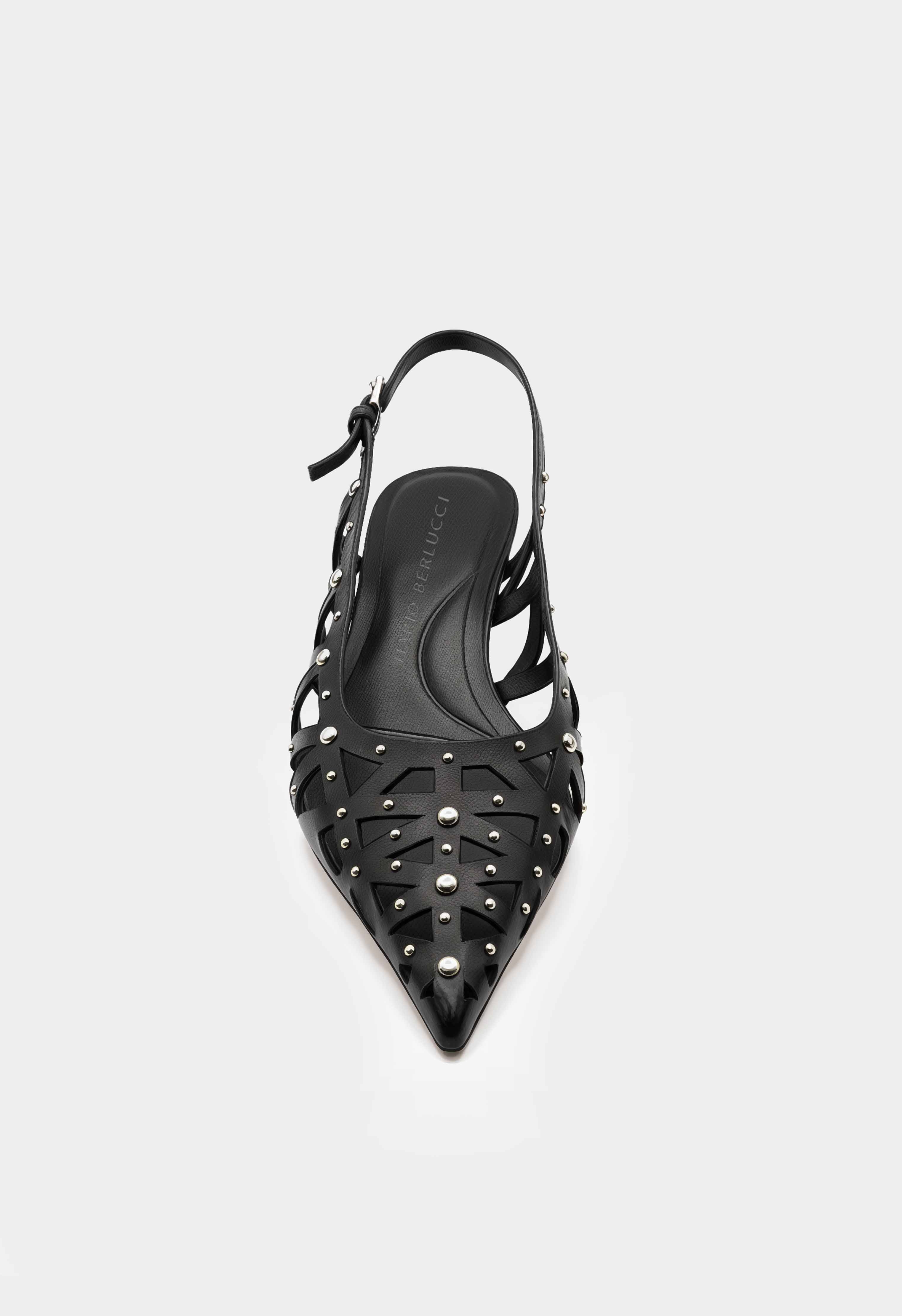 Черные туфли из натуральной кожи выглядят эффектно и легко за счет ремешков с серебряной фурнитурой, которая аккуратно подсвечивает силуэт. Заостренный мысок визуально вытягивает ногу и делает образ более изящным, а каблук-рюмка добавляет женственную высоту и уверенную посадку. Ремешок с пряжкой помогает отрегулировать фиксацию и сидит аккуратно на ноге. Жесткая подошва держит форму и обеспечивает стабильную опору – удачный вариант для мероприятий, вечера и городских выходов.