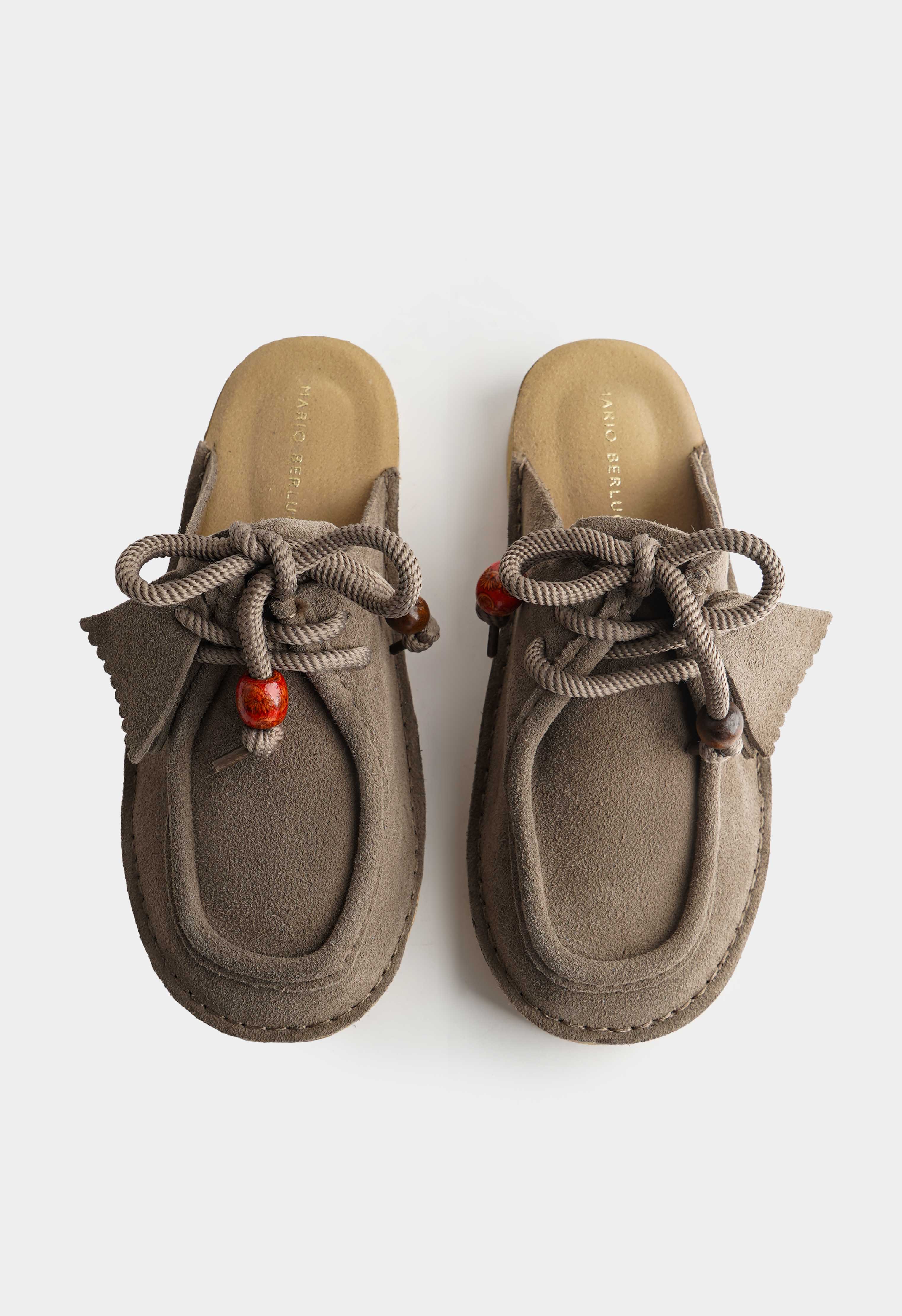 Серые пантолеты из натуральной замши – уютная пара с мягким пастельным оттенком и выразительными деталями. Бархатистая замша смотрится нежно и аккуратно, округлый мысок создает комфортный мягкий силуэт. Декоративная шнуровка с объемным узлом и яркими бусинами добавляет игривый акцент и делает модель заметной даже в простом образе. Платформа приподнимает и визуально вытягивает силуэт, а жесткая подошва держит форму и дает стабильную опору.