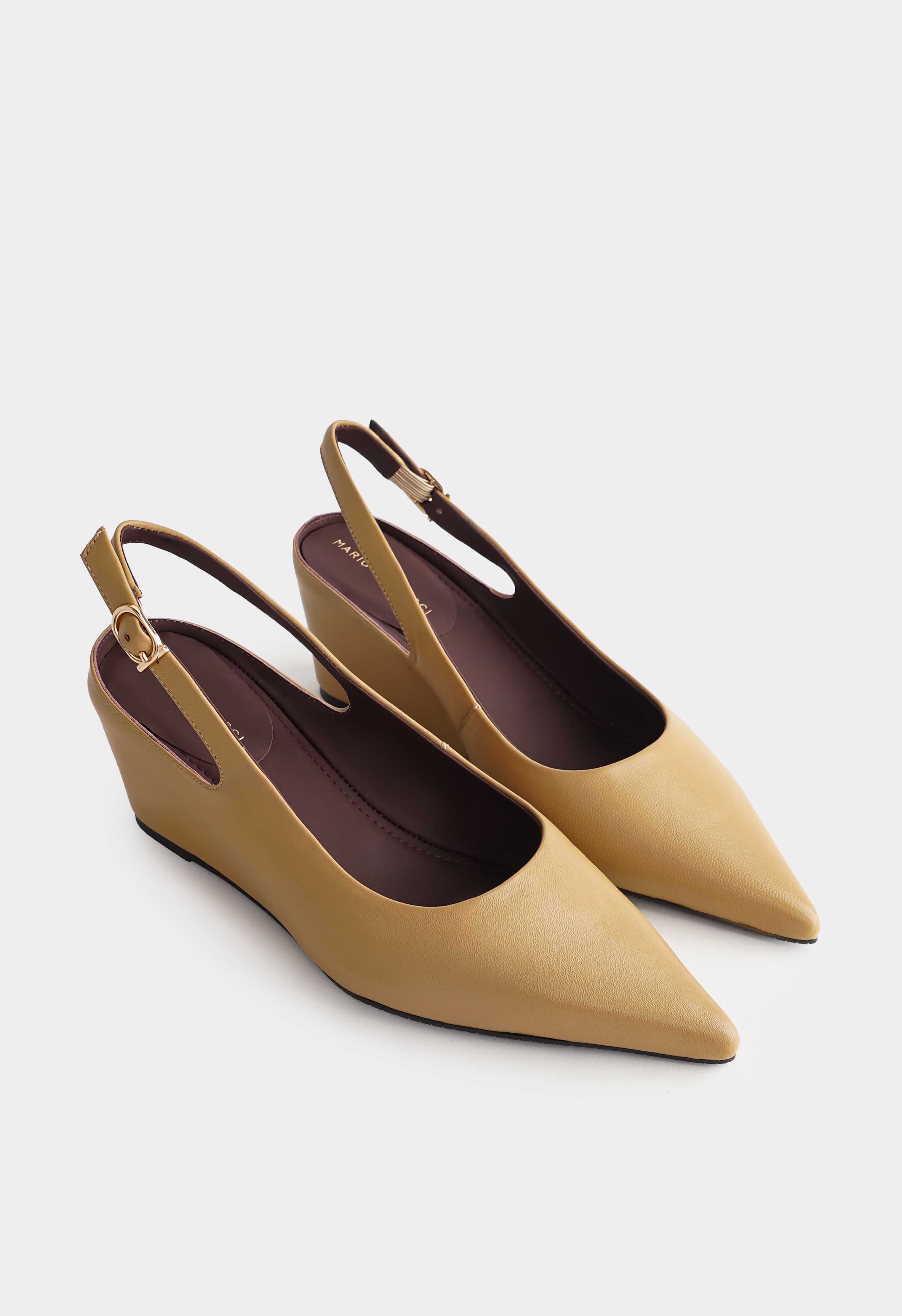 Элегантные бежевые туфли из натуральной кожи – идеальный баланс комфорта и утонченного стиля. Заостренный мысок визуально вытягивает силуэт, добавляя образу изюминки, а аккуратная золотая пряжка становится стильным акцентом. Удобная танкетка обеспечивает устойчивость и легкость шага в течение всего дня, в то время как гибкая подошва дарит максимальный комфорт. Универсальная модель, которая гармонично дополнит как деловые, так и вечерние образы.