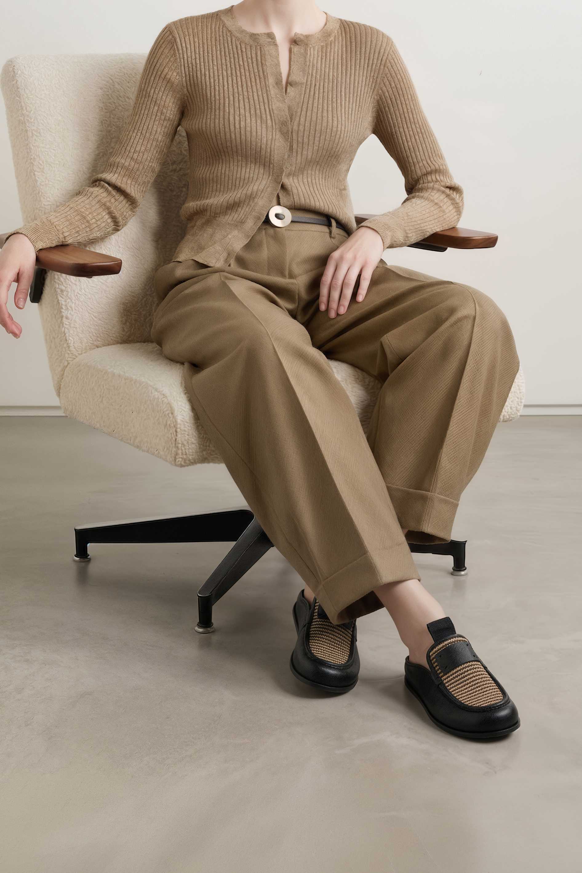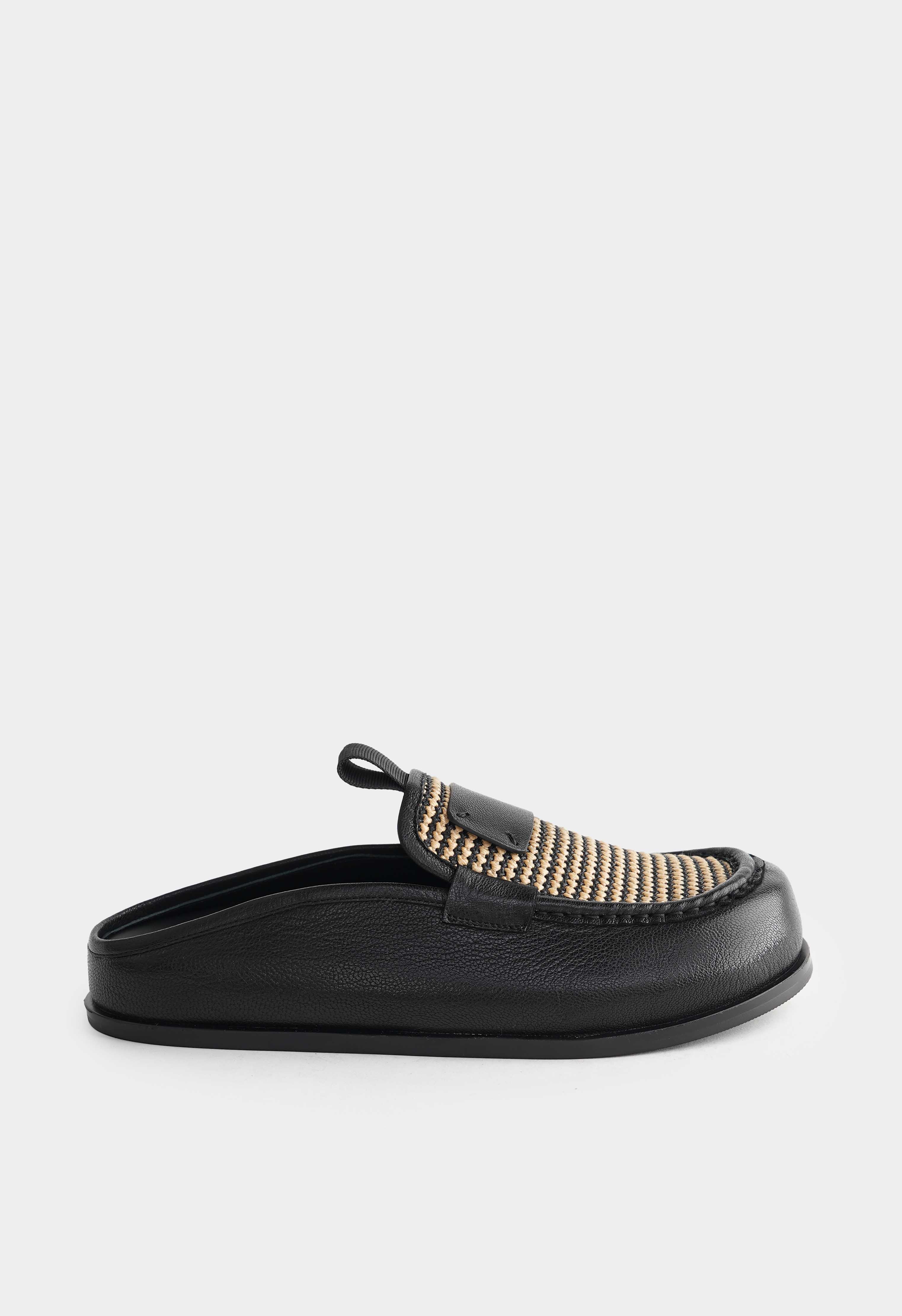Эти стильные мюли сочетают контрастный черный цвет с плетеной бежевой фактурой, создавая модный и заметный образ. Мягкая натуральная кожа и округлый мысок обеспечивают комфорт на протяжении всего дня, платформа придает дополнительную высоту и уверенность в походке, а жесткая подошва делает каждое движение стабильным и надежным – идеальный выбор для ярких повседневных и вечерних образов.