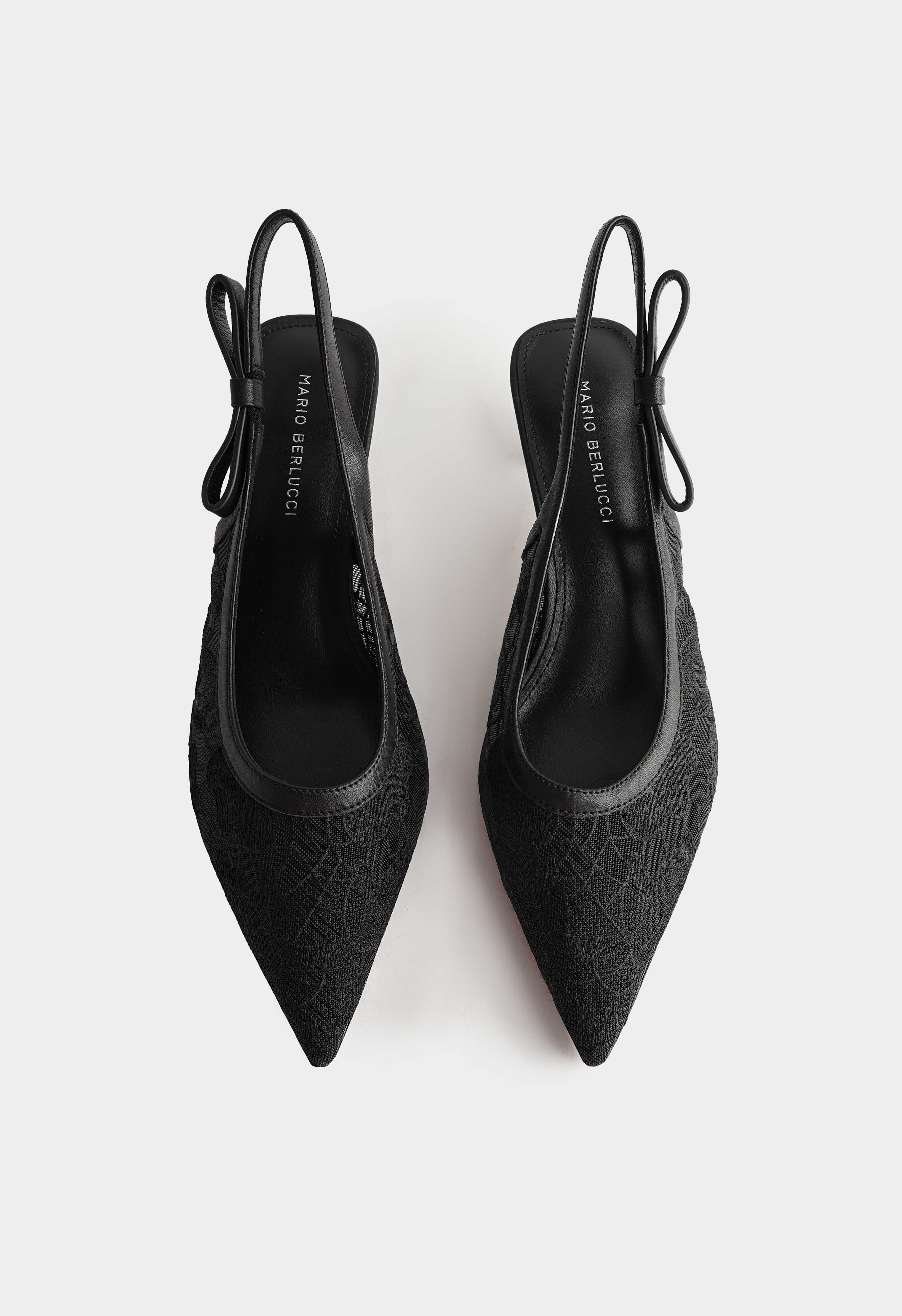 Эффектные черные туфли – воплощение утонченной женственности и современного стиля. Сочетание натуральной кожи и кружевного текстиля придает модели легкость и выразительность, а заостренный мысок подчеркивает элегантный силуэт. Втачная резинка обеспечивает комфортную посадку, в то время как оригинальный фигурный каблук становится стильным акцентом образа. Жесткая подошва гарантирует устойчивость и уверенность в каждом шаге.