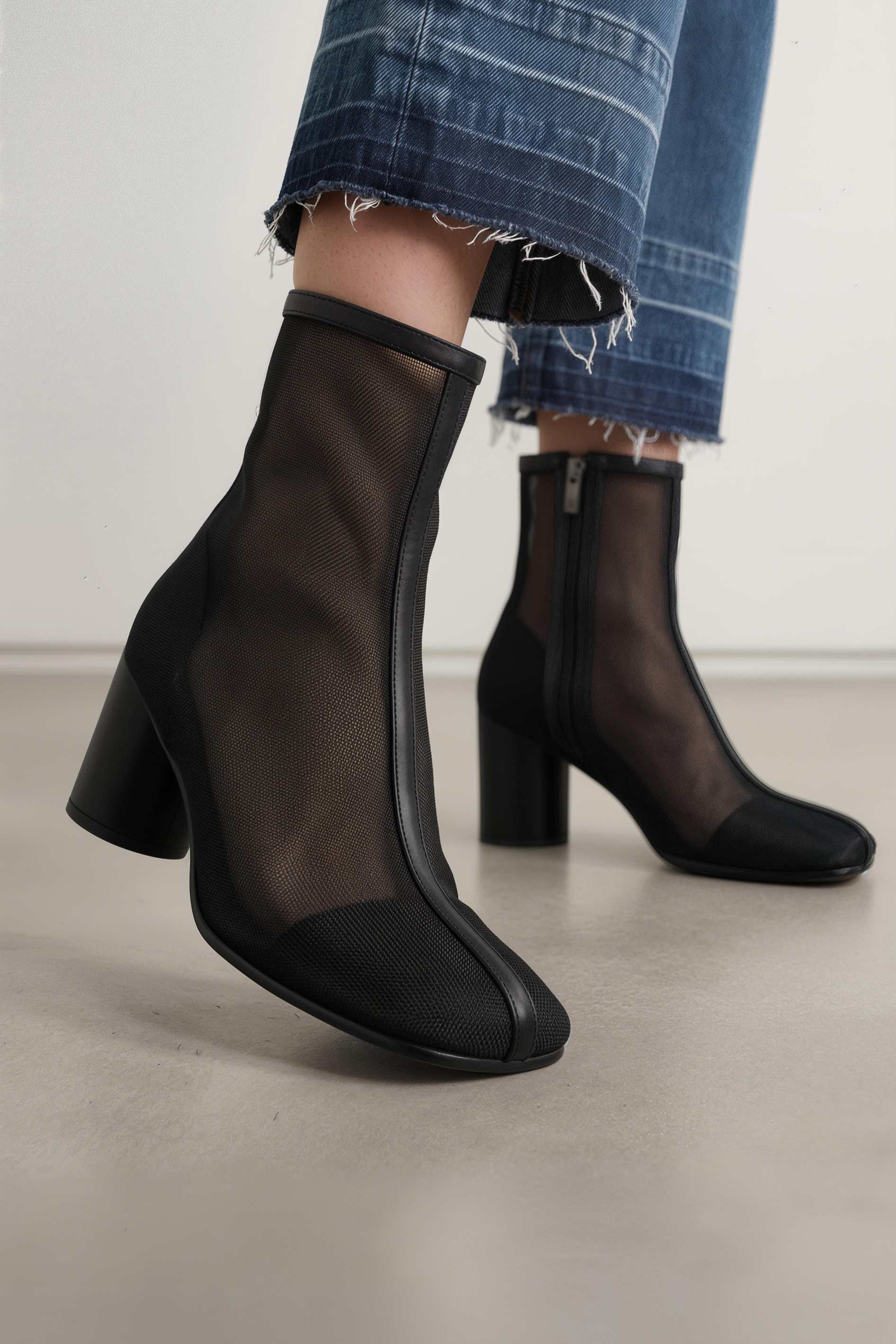 Черные текстильные ботильоны с тонкой сетчатой фактурой смотрятся необычно и очень изящно, добавляя образу легкость и выразительность. Квадратный мысок делает силуэт современным и аккуратным, а каблук-столбик обеспечивает устойчивую посадку. Боковая молния помогает быстро надевать обувь и сохраняет чистые линии, фурнитура в цвете металлик добавляет аккуратный блеск. Гибкая подошва приятно сгибается при ходьбе и поддерживает мягкий, уверенный шаг.