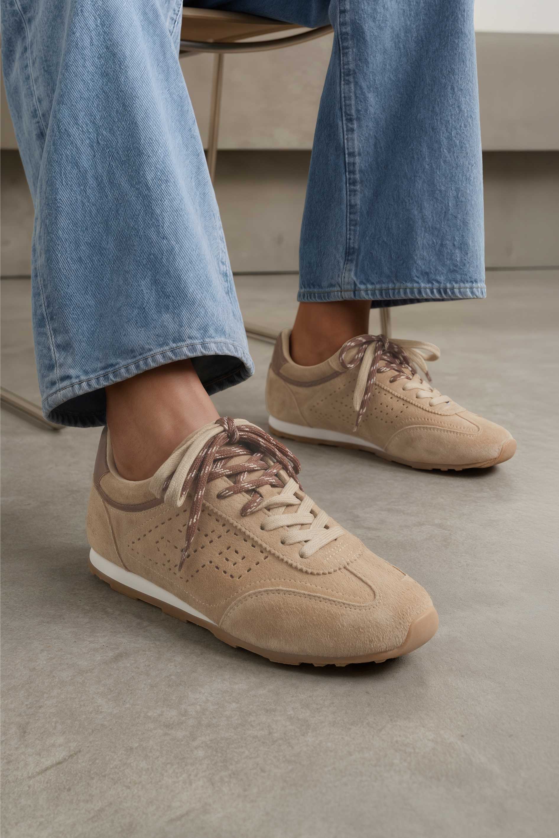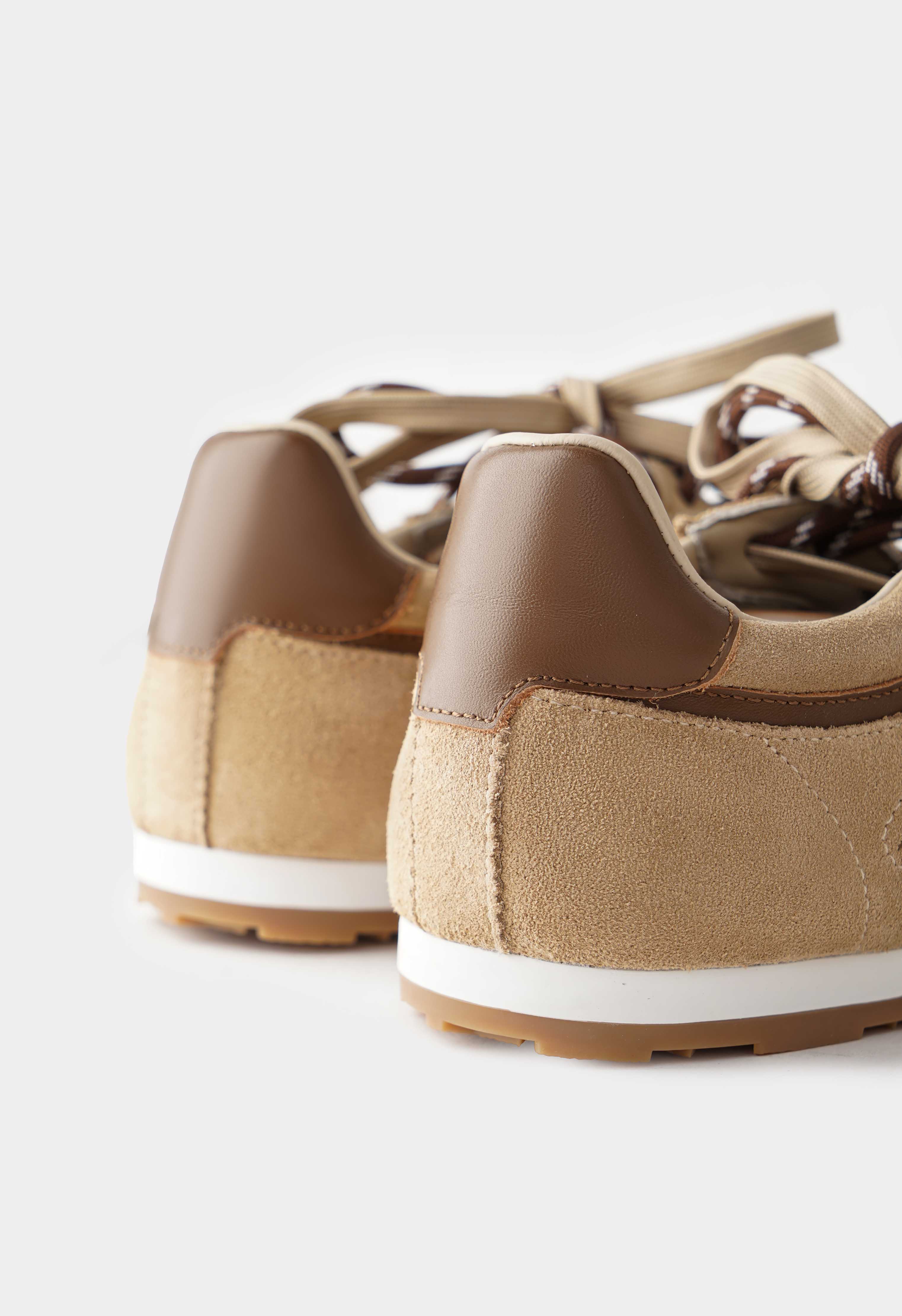 Бежевые кроссовки из натуральной замши – практичная пара с теплой палитрой и аккуратным спортивным силуэтом. Бархатистая замша в спокойных оттенках выглядит благородно, а коричневые акценты на пятке и на шнуровке добавляют энергии и делают модель заметной. Округлый мысок обеспечивает комфортную посадку, шнуровка помогает точно подогнать кроссовки по стопе. Платформа деликатно приподнимает силуэт и добавляет удобства, в то время как гибкая подошва мягко амортизирует и легко сгибается при шаге — отличный вариант для города, прогулок и активных дней.