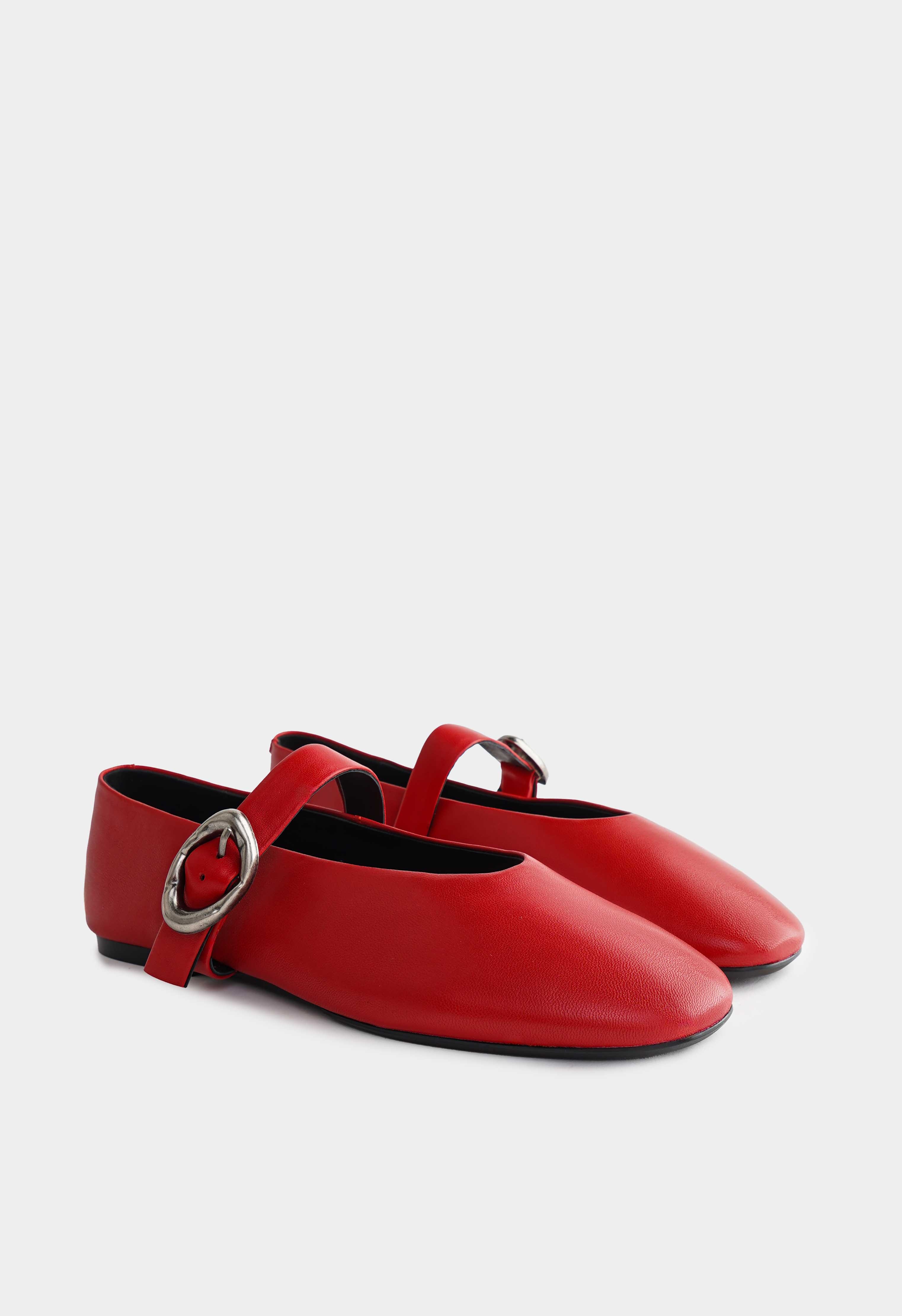 Красные балетки из натуральной кожи – свежая, аккуратная пара, которая добавляет образу легкости и ухоженности. Округлый мысок создает мягкий силуэт и комфортную посадку, а невысокий венский каблук делает модель удобной для активного дня. Акцентный ремешок с пряжкой в цвете металлик смотрится как украшение и придает балеткам изящный характер. Жесткая подошва хорошо держит форму и дает стабильную опору.