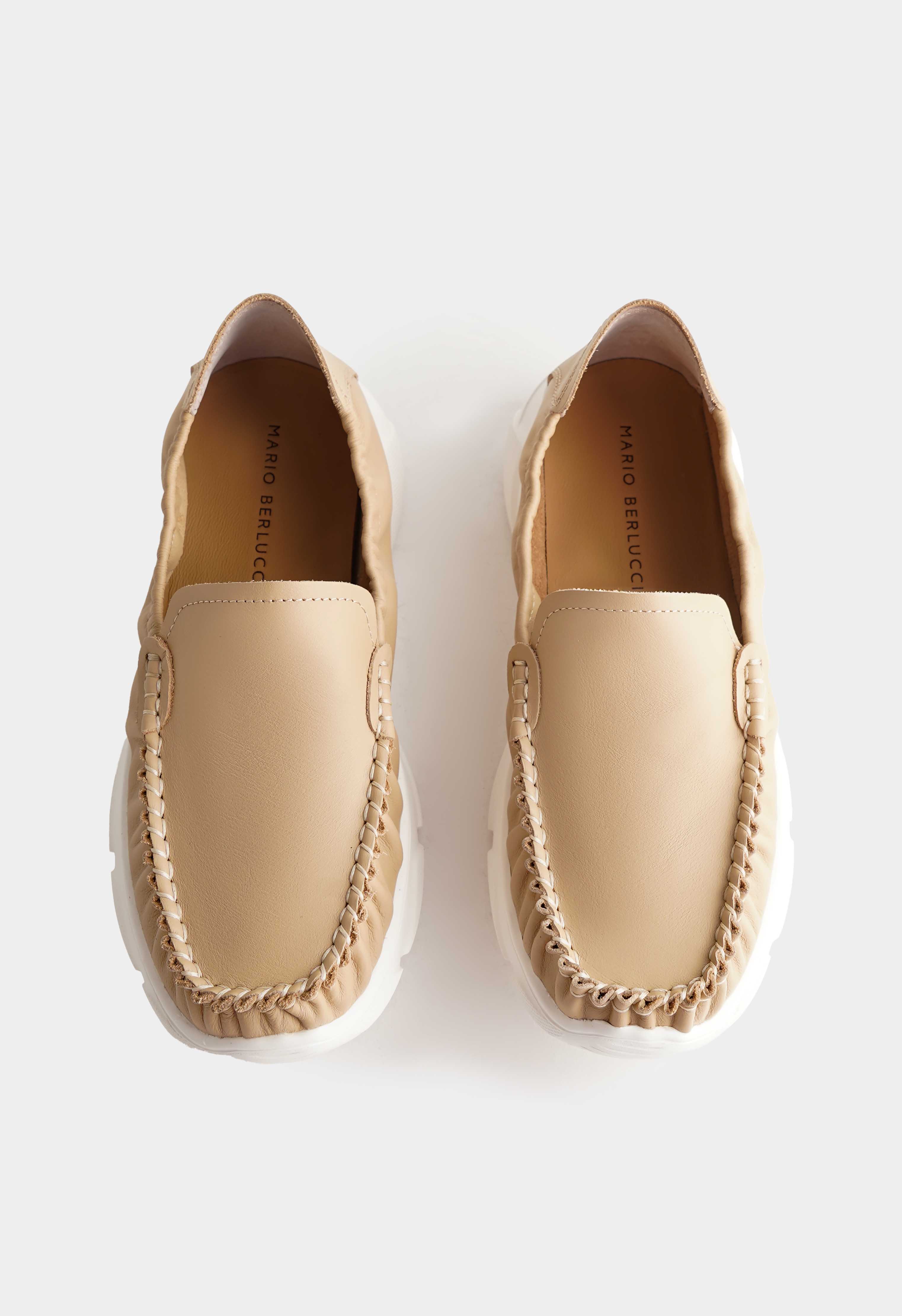 Летние мокасины из натуральной кожи подарят вам максимальный комфорт даже в жаркую погоду. Бежевый цвет и округлый мысок создают стильный и универсальный образ, а гибкая платформа обеспечивает легкость и удобство при ходьбе. Эти мокасины идеально подходят для повседневной носки, прогулок по городу и летнего отдыха, сочетая элегантность, практичность и дышащие натуральные материалы.