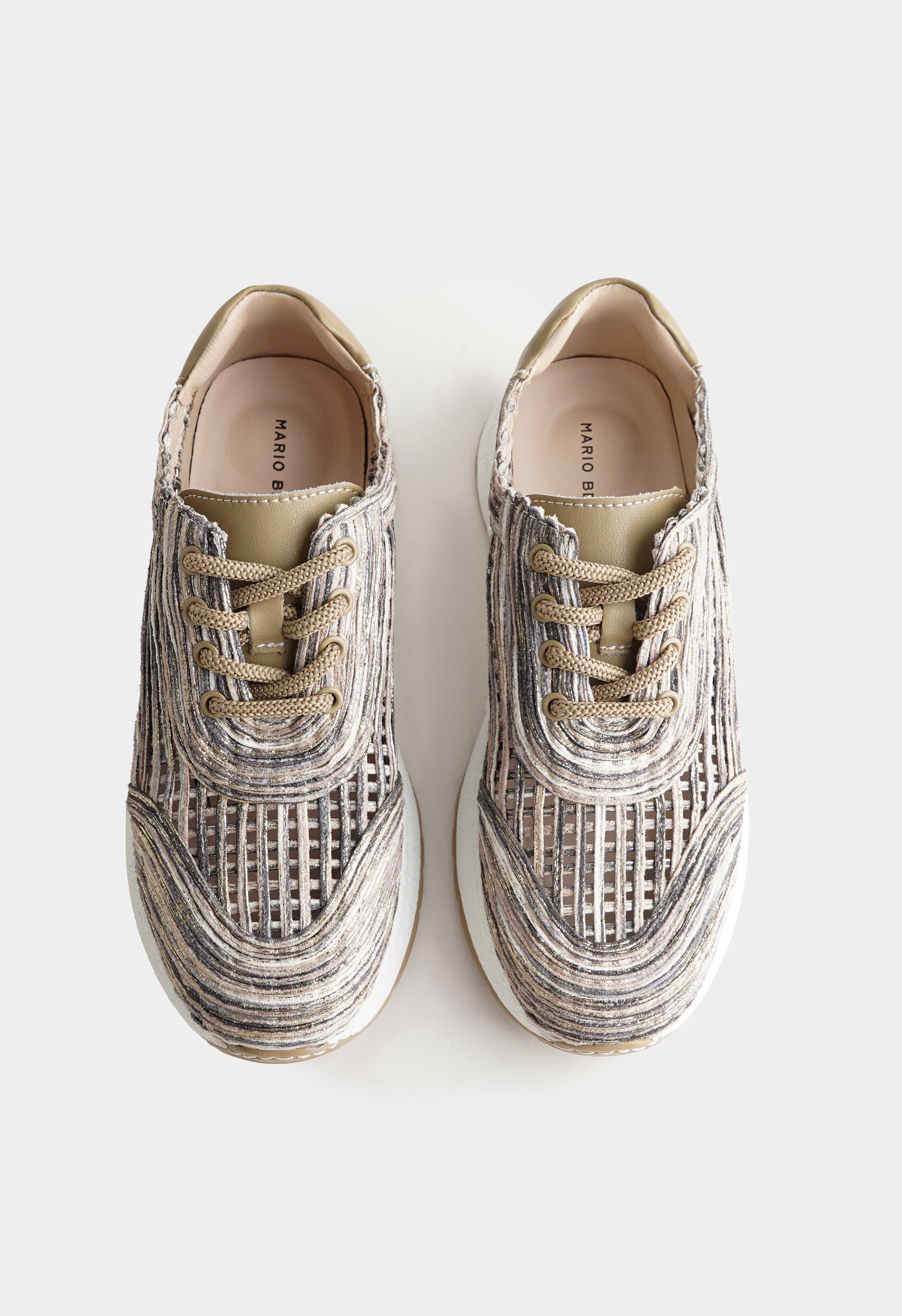 Эти текстильные кроссовки в благородном золотом оттенке представляют собой воплощение элегантности и комфорта. Округлый мысок обеспечивает мягкую посадку, платформа придает уверенности в походке, а бежевая фурнитура добавляет утонченный акцент. Гибкая подошва гарантирует отличную амортизацию и свободу движений на протяжении всего дня.