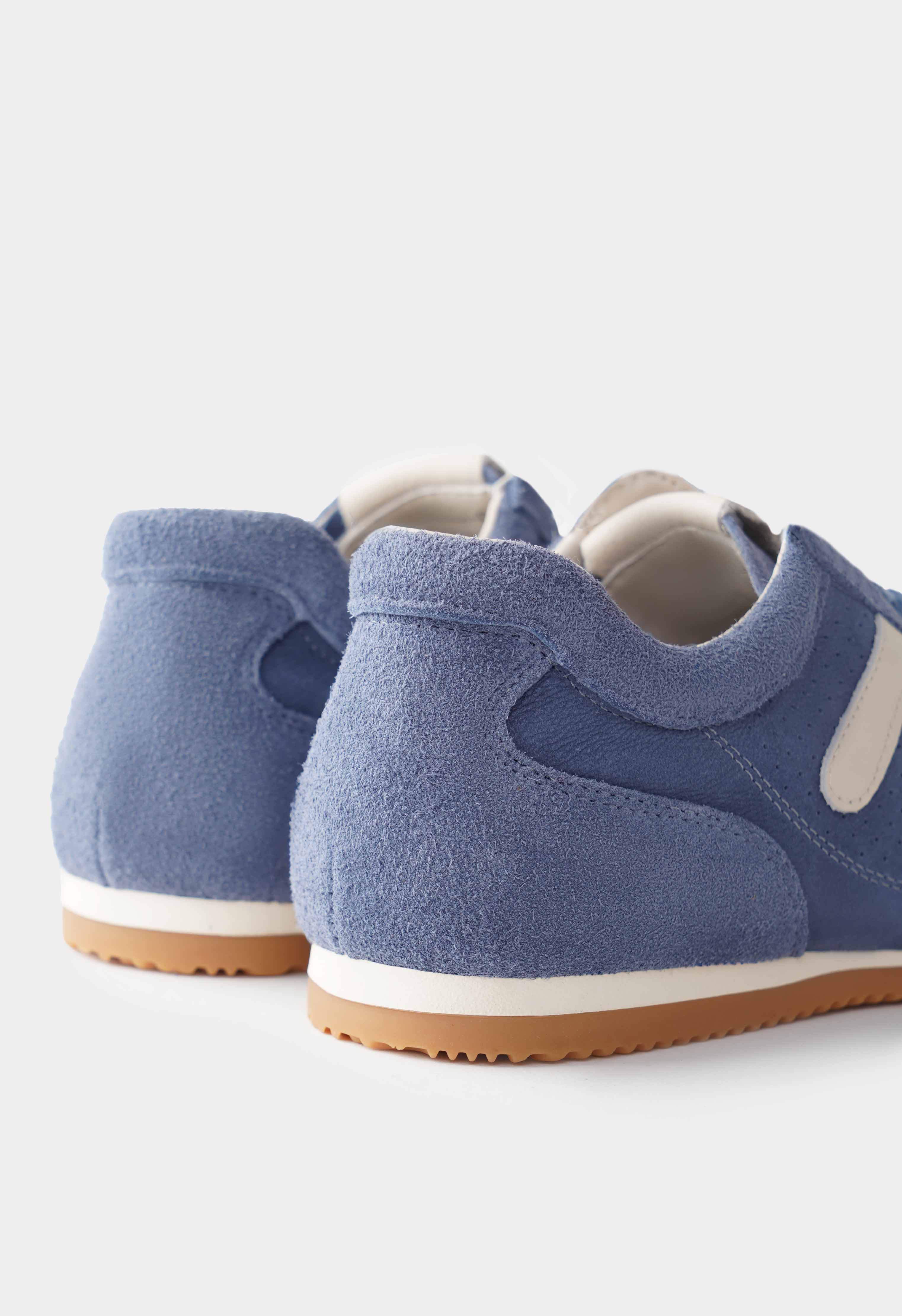 Синие кроссовки из натуральной замши – стильная пара с мягкой бархатистой фактурой и свежим контрастом светлых деталей. Округлый мысок обеспечивает комфортную посадку на каждый день, а аккуратная шнуровка помогает точно отрегулировать фиксацию по стопе. Платформа добавляет рост и делает силуэт более собранным, при этом не утяжеляет образ. Гибкая подошва приятно амортизирует и легко сгибается при ходьбе.