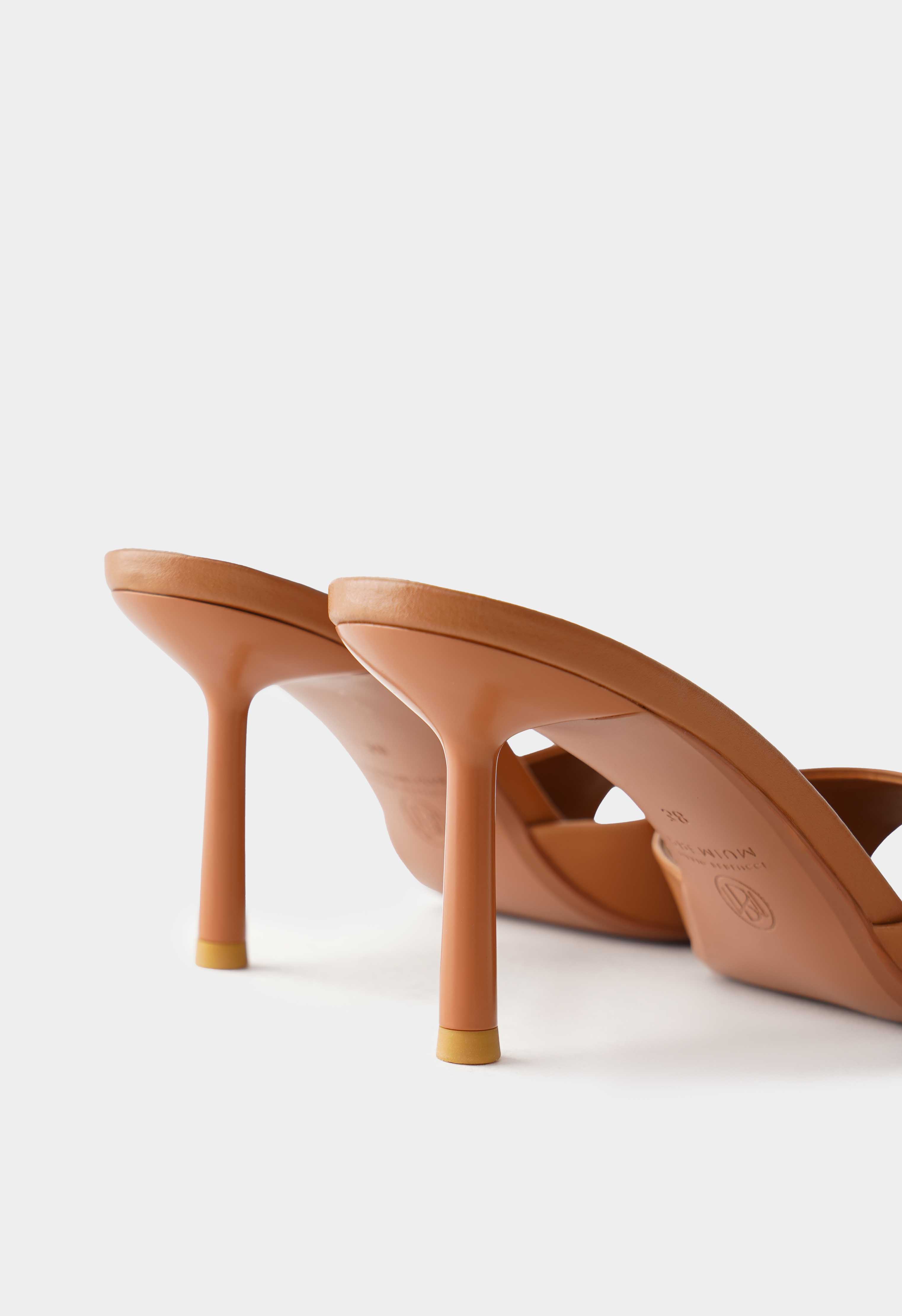 Коричневые мюли из натуральной кожи – элегантная пара, которая красиво подчеркивает загар и делает образ более собранным. Широкая кожаная перемычка аккуратно ложится по стопе, а открытый мысок добавляет легкости и подчеркивает педикюр. Тонкая шпилька придает выразительную высоту и визуально вытягивает силуэт, сохраняя аккуратные линии. Жесткая подошва держит форму и обеспечивает стабильную опору – отличный выбор для вечерних выходов, мероприятий и летних ужинов.