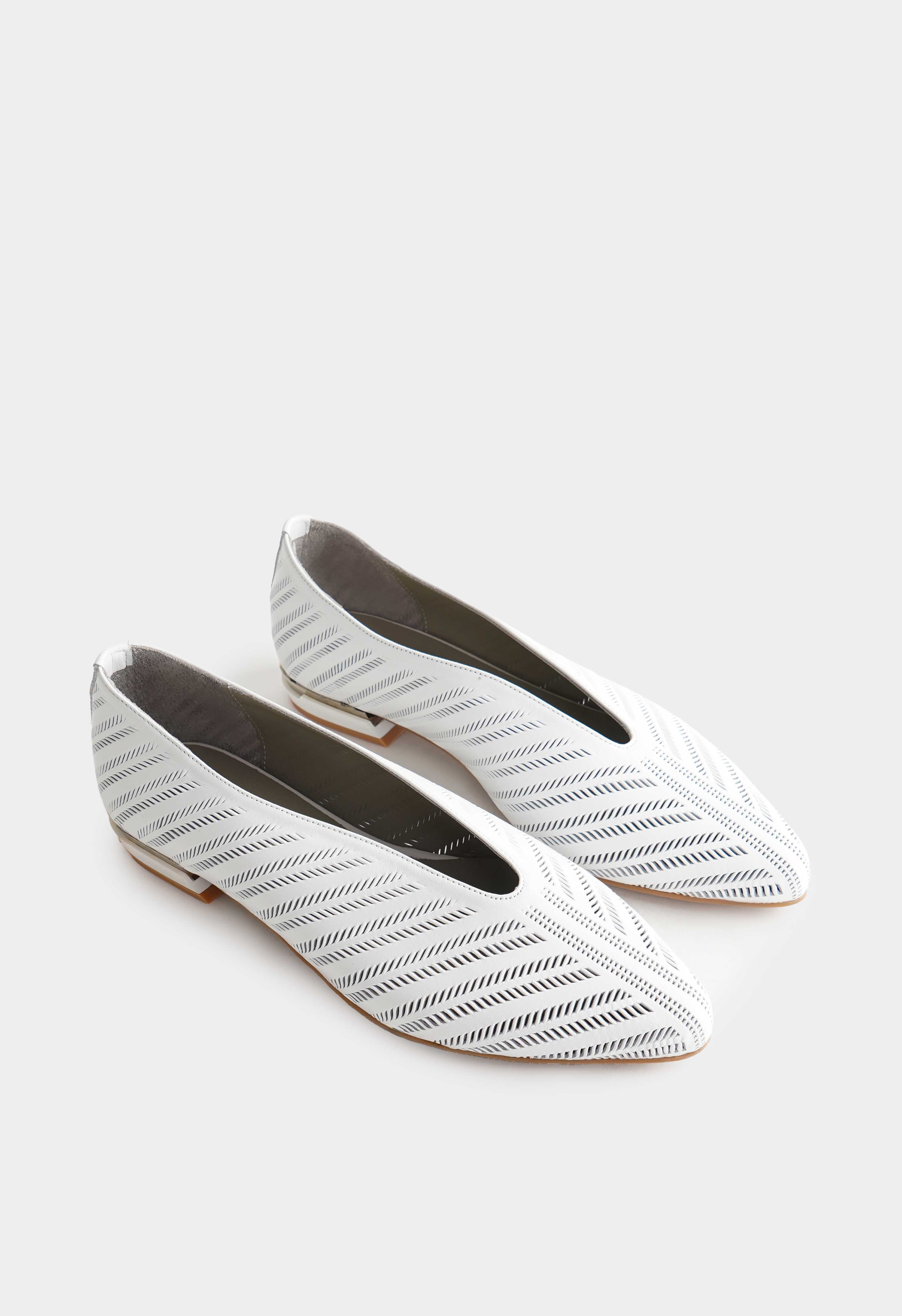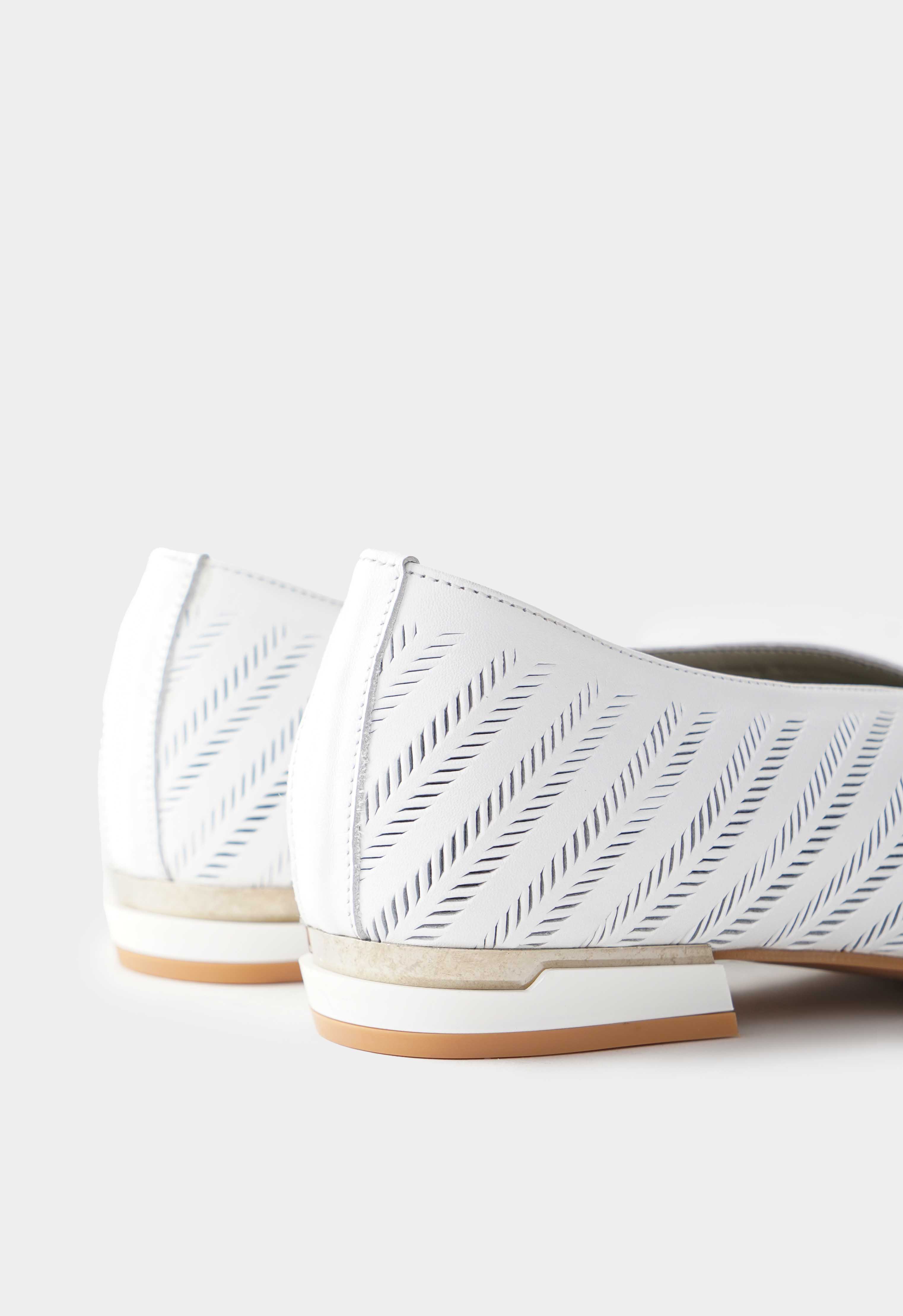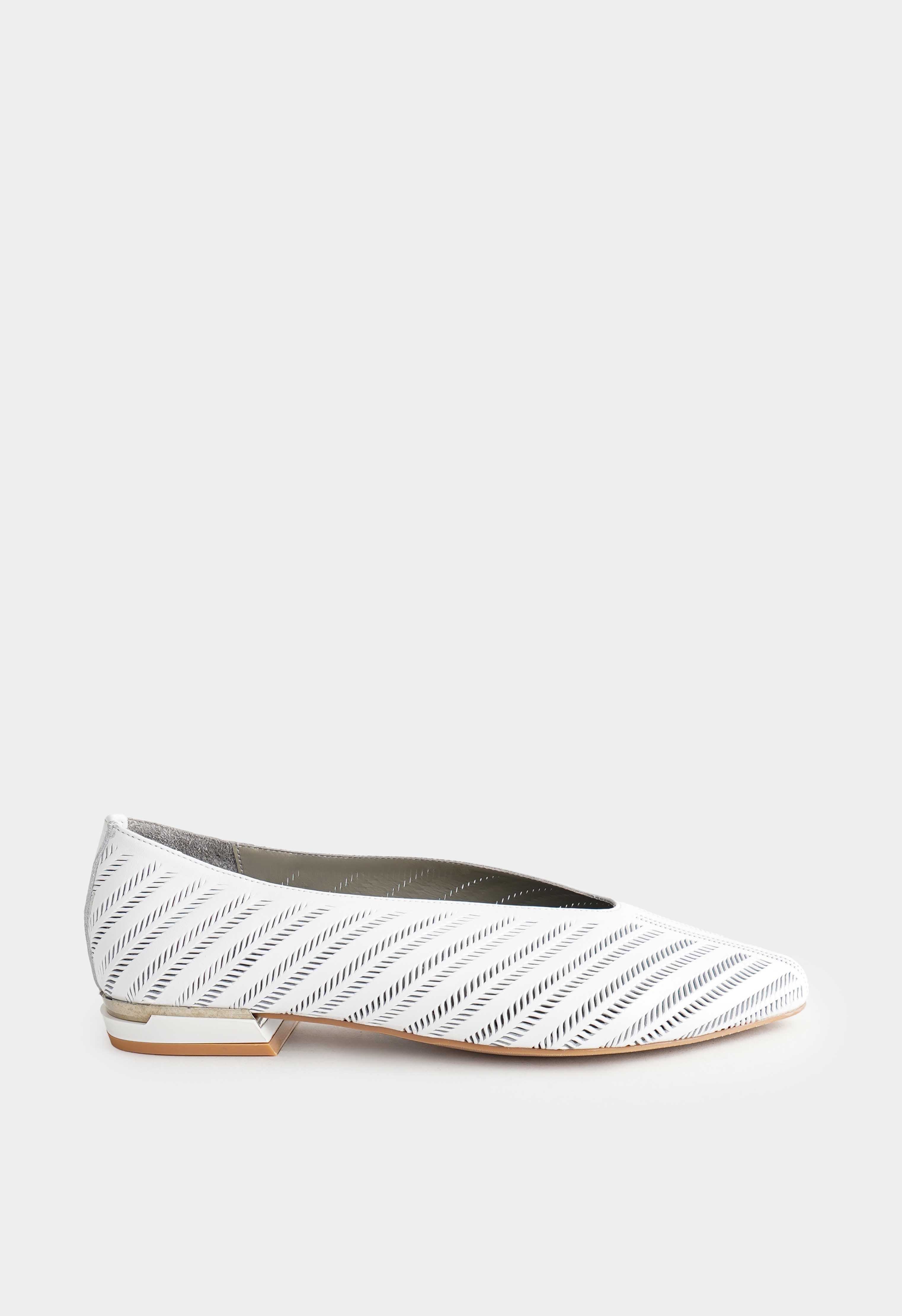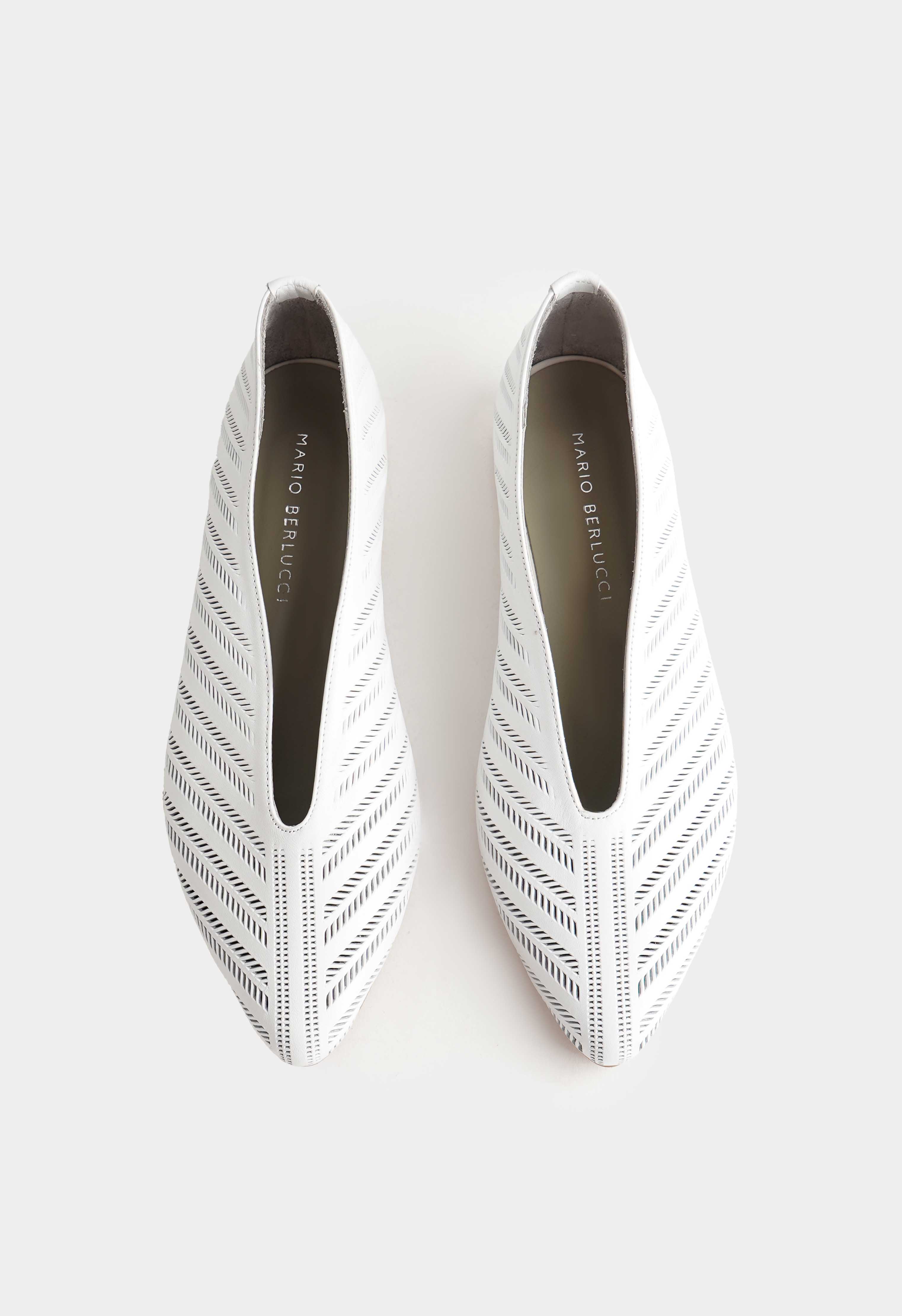 Утонченные белые туфли из натуральной кожи – стильное сочетание легкости и современного дизайна: перфорированная фактура придает модели воздушность и делает образ более выразительным, а заостренный мысок добавляет элегантности и визуально вытягивает силуэт. Серебряная фурнитура аккуратно подчеркивает минималистичный стиль, венский каблук обеспечивает комфорт на каждый день, в то время как жесткая подошва гарантирует устойчивость и уверенность при ходьбе.