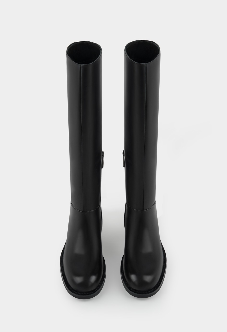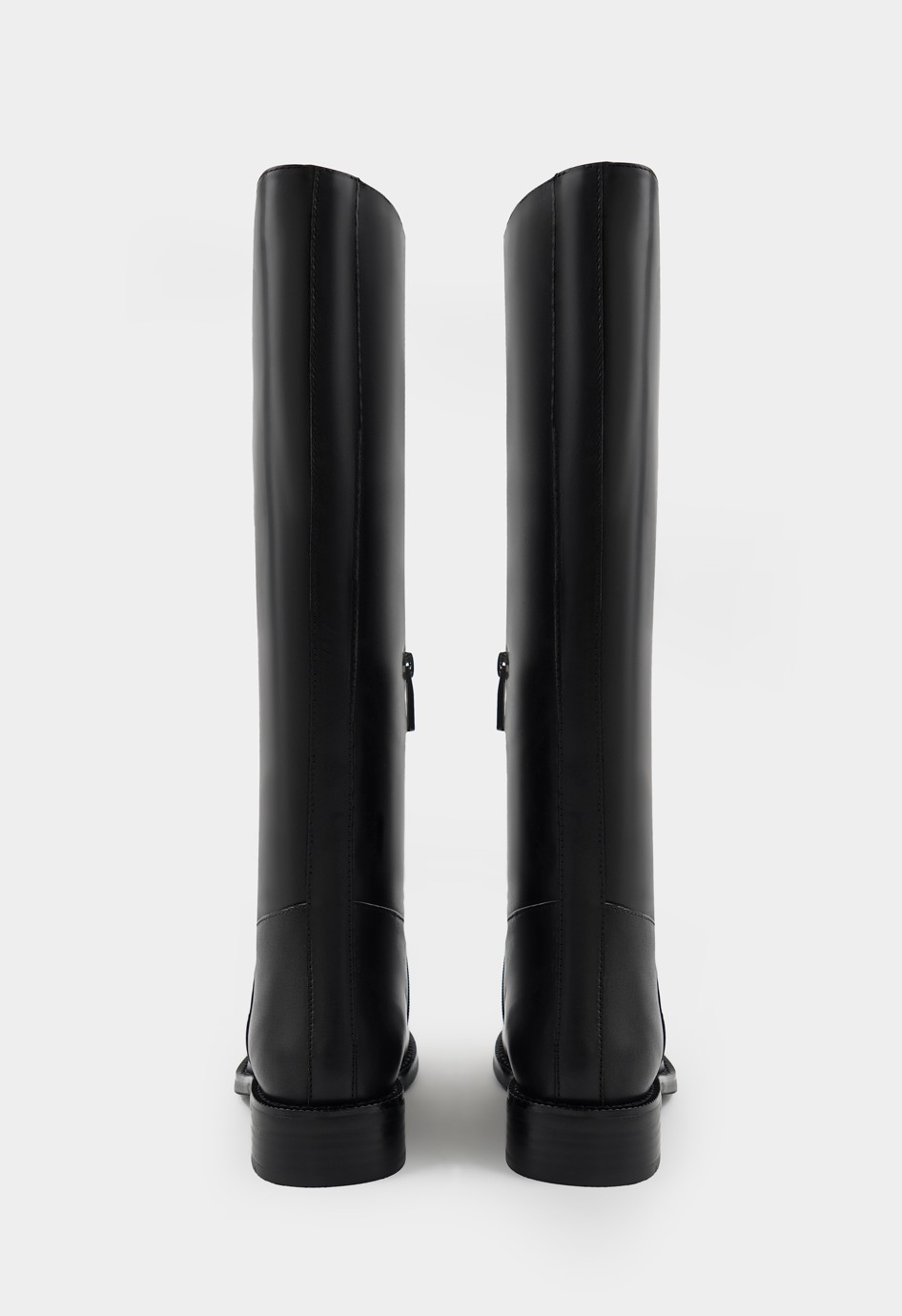 Элегантные черные сапоги из натуральной кожи с аккуратным округлым мыском и стильной фурнитурой металлик создают универсальный образ для города. Удобный широкий каблук и гибкая подошва обеспечивают комфорт при длительной ходьбе, а практичная боковая молния и мягкая байковая подкладка делают каждую носку по-настоящему приятной. Эта модель станет идеальным выбором для разных ситуаций.