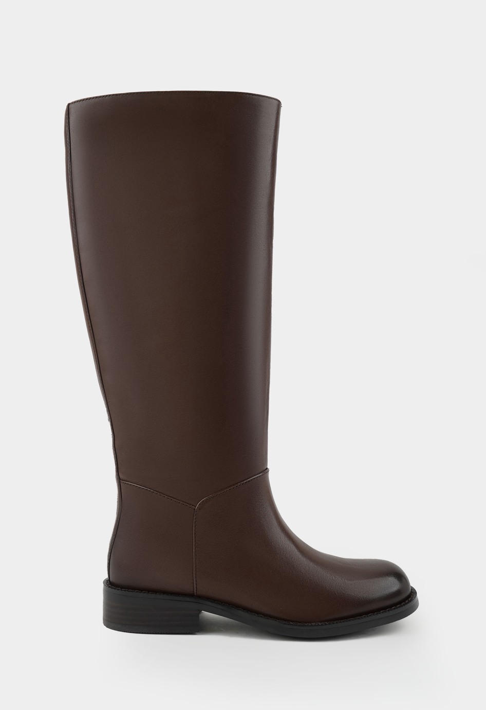 Элегантные коричневые сапоги из натуральной кожи с аккуратным округлым мыском и стильной фурнитурой металлик создают универсальный образ для города. Удобный широкий каблук и гибкая подошва обеспечивают комфорт при длительной ходьбе, а практичная боковая молния и мягкая байковая подкладка делают каждую носку по-настоящему приятной. Эта модель станет идеальным выбором для разных ситуаций.