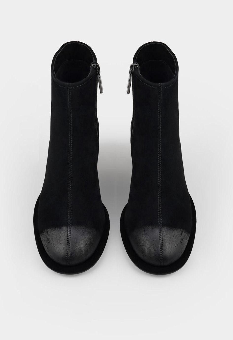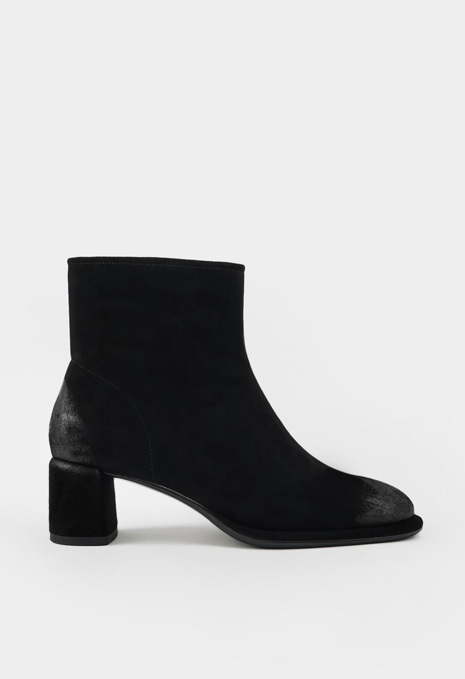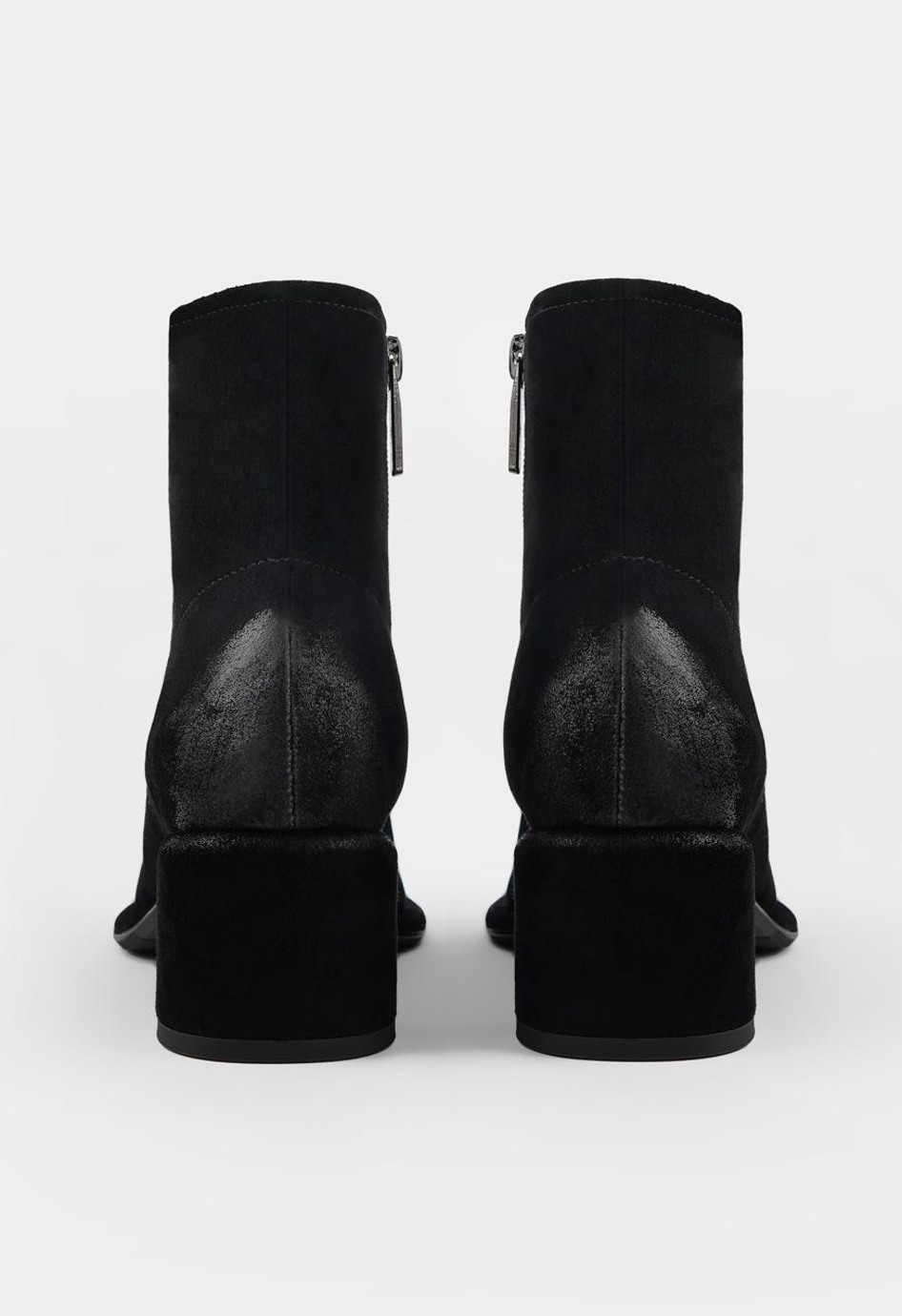 Эти стильные черные ботильоны из мягкой натуральной замши созданы как для повседневной носки, так и для особых случаев. Модель с удобным округлым мысом, внутренней отделкой из байки и устойчивым геометричным каблуком отлично смотрится в городском образе. Гибкая подошва обеспечивает комфорт при ходьбе, а практичная молния с металлической фурнитурой позволяет легко обуваться. Универсальная пара легко сочетается с джинсами, платьями и классическими брюками, завершая образ элегантной ноткой.
