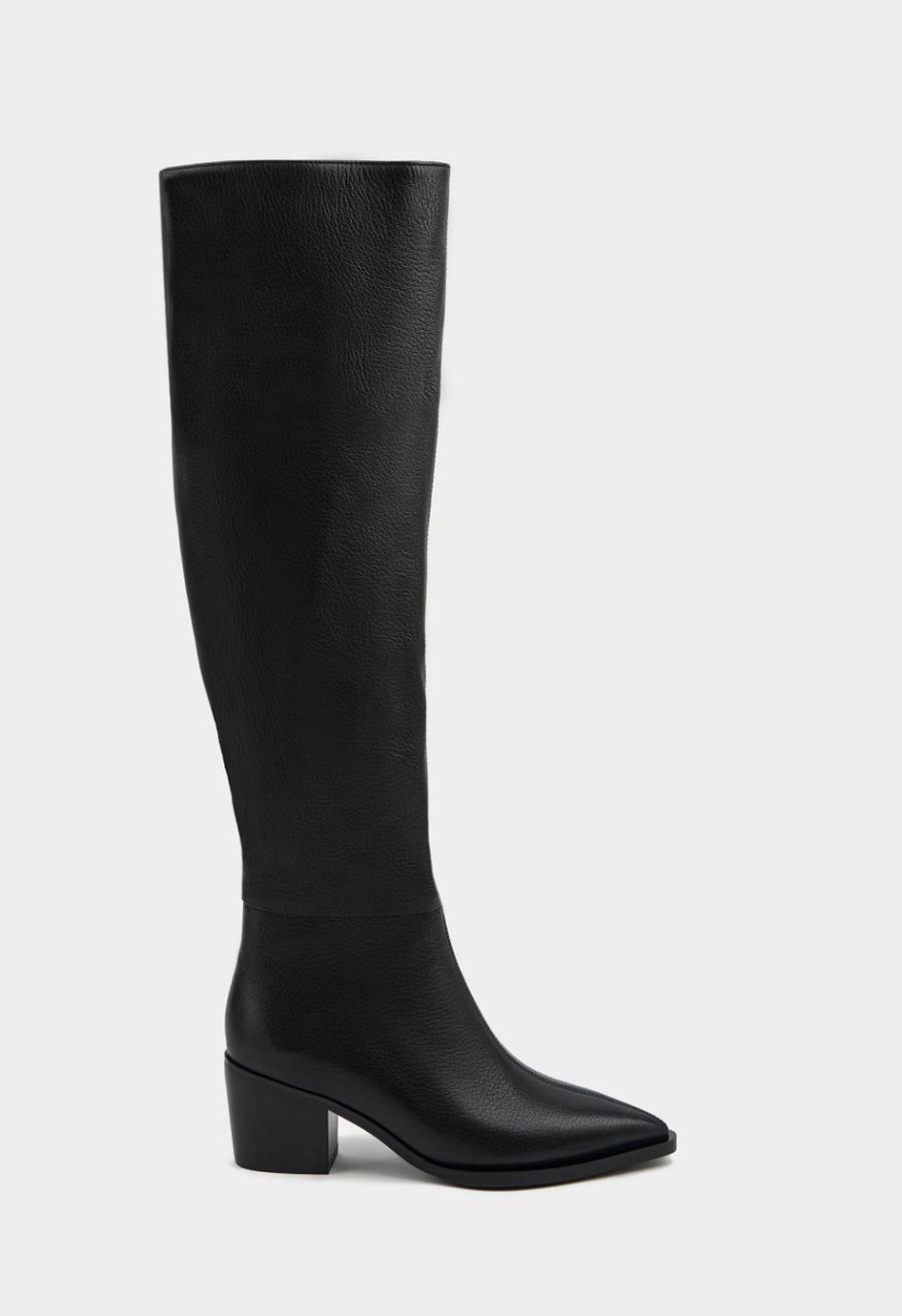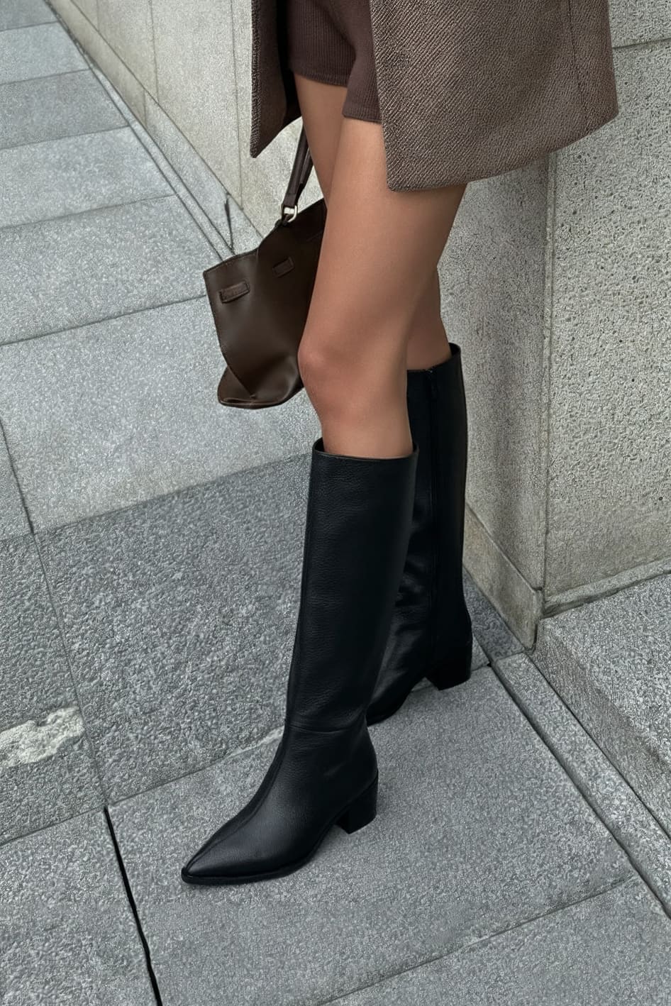 Черные сапоги из натуральной кожи с подкладкой из байки – это идеальное сочетание современного стиля и практичности. Заостренный мысок придает образу элегантность, а скошенный каблук делает силуэт изящным и женственным. Жесткая подошва обеспечивает надежную устойчивость и комфорт при ходьбе, делая обувь удобной для долгих прогулок и активного дня. Эта модель легко вписывается в повседневные образы и станет стильным акцентом как в деловом, так и в вечернем луке, подчеркивая уверенность и вкус своей обладательницы.