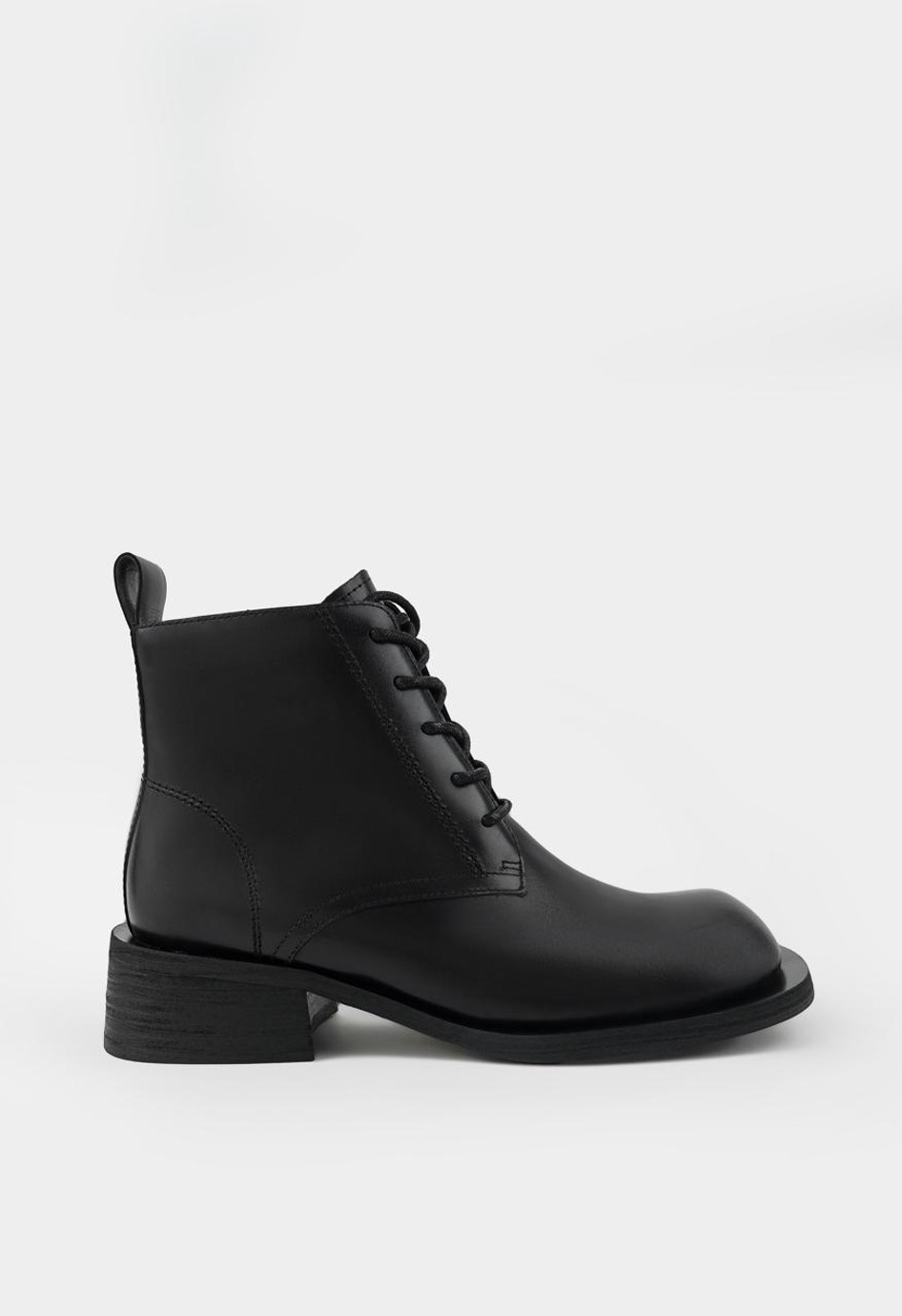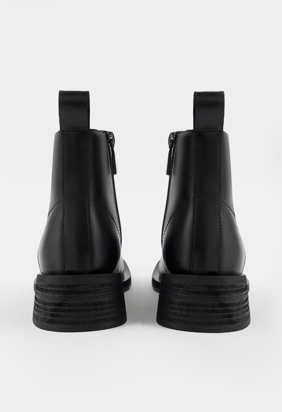 Черные ботинки из натуральной кожи сочетают в себе брутальный характер и городской стиль. Модель с выразительным квадратным мыском и массивным широким каблуком демонстрирует уверенный, современный силуэт. Жесткая, надежная подошва гарантирует устойчивость на любой поверхности, а практичный дуэт из классической шнуровки и удобной боковой молнии со стильной фурнитурой металлик позволяет идеально подогнать посадку по ноге. Благодаря невероятно уютной байковой подкладке, в этих ботинках будет комфортно даже в прохладную погоду.