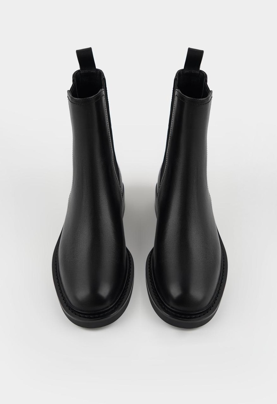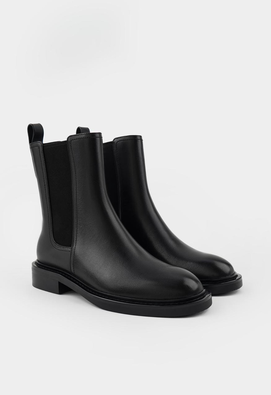 Ботинки черного цвета из качественной натуральной кожи с аккуратным округлым мыском и устойчивым широким каблуком создают образ надежности и стиля, они сочетают в себе классическую элегантность и практичную функциональность. Жесткая подошва обеспечивает уверенную поддержку при ходьбе, а удобные втачные резинки и мягкая байковая подкладка дарят комфорт в течение всего дня. Эта модель станет универсальным дополнением повседневного гардероба, добавив нотку лаконичности в трендовые образы.