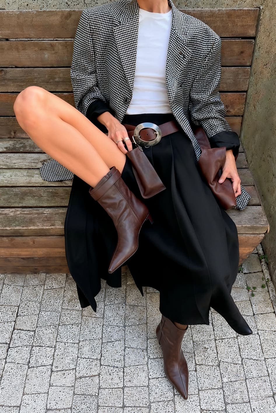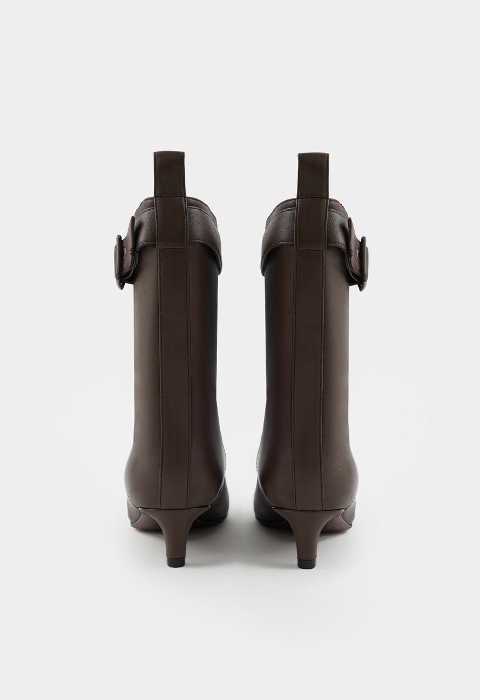 Эти утонченные ботильоны коричневого цвета из натуральной кожи с изящным мыском и элегантным каблуком kitten heel создают неповторимый образ женственной грации – в них гармонично сочетаются лаконичный дизайн и продуманный комфорт. Гибкая подошва обеспечивает невесомость при ходьбе, а нежная байковая подкладка дарит уютное тепло, делая эту пару идеальной для прохладной погоды. Стильная коричневая фурнитура подчеркивает благородный оттенок кожи, создавая целостную эстетику образа.