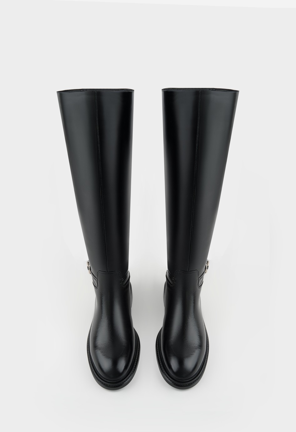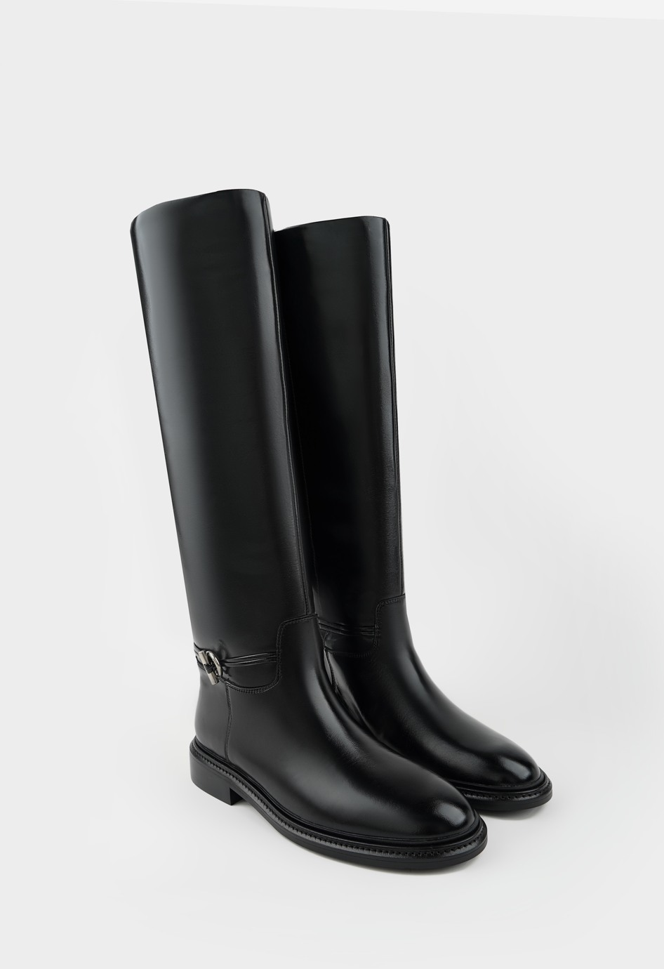 Сапоги из натуральной лаковой кожи в классическом черном цвете – выбор для тех, кто ценит стиль и практичность в одном. Глянцевая поверхность придает образу изысканности, а прочная жесткая подошва и широкий каблук обеспечивают устойчивость и комфорт в повседневной носке. Округлый мысок делает модель удобной даже при длительных прогулках, в то время как фурнитура металлик добавляет современный акцент. Такая пара станет гармоничным дополнением к любому образу, подчеркивая вашу уверенность и безупречное чувство стиля.