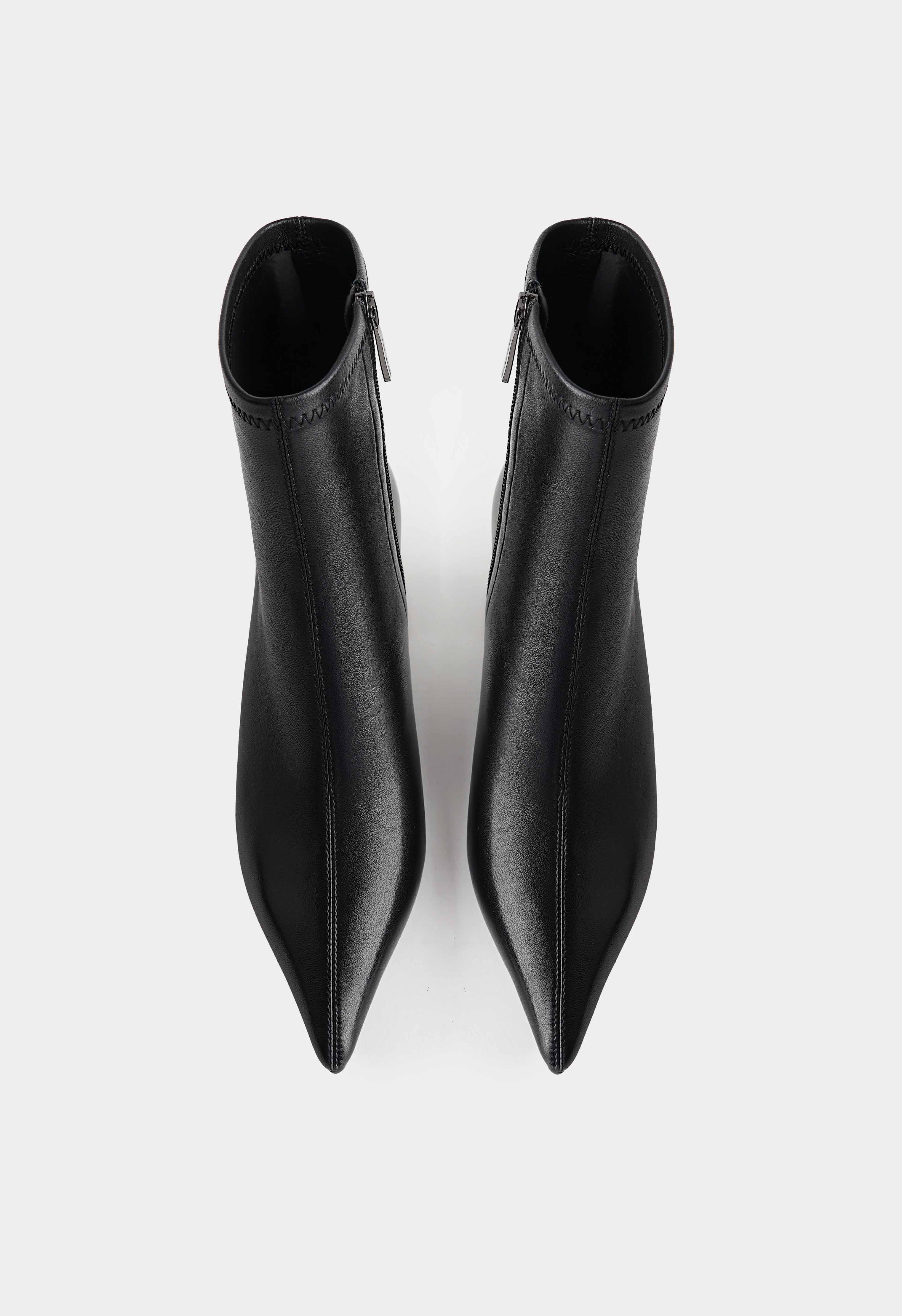 Черные ботильоны из натуральной кожи – удачная пара для демисезона, когда хочется выглядеть элегантно и чувствовать комфорт. Заостренный мысок и изящный каблук-рюмка делают силуэт более женственным и утонченным. Фурнитура в оттенке металлик добавляет аккуратный современный акцент, а молния обеспечивает удобное надевание и плотную посадку. Гибкая подошва поддерживает мягкий шаг и легкость в движении в течение всего дня.