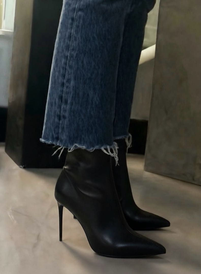 Эти ботильоны из натуральной черной кожи – воплощение элегантности и комфорта для стильных образов. Внутри мягкая байка согревает и дарит уют даже в прохладные дни, а гибкая подошва обеспечивает легкость движений. Заостренный мысок визуально удлиняет силуэт, придавая ножкам изящность, в то время как шпилька и фурнитура цвета металлик добавляют дерзкий акцент и подчеркивают стильный характер модели. Удобная молния облегчает надевание и идеально сидит по ноге. Такая модель – это отличный выбор для тех, кто хочет выглядеть эффектно и чувствовать себя уверенно каждый день.