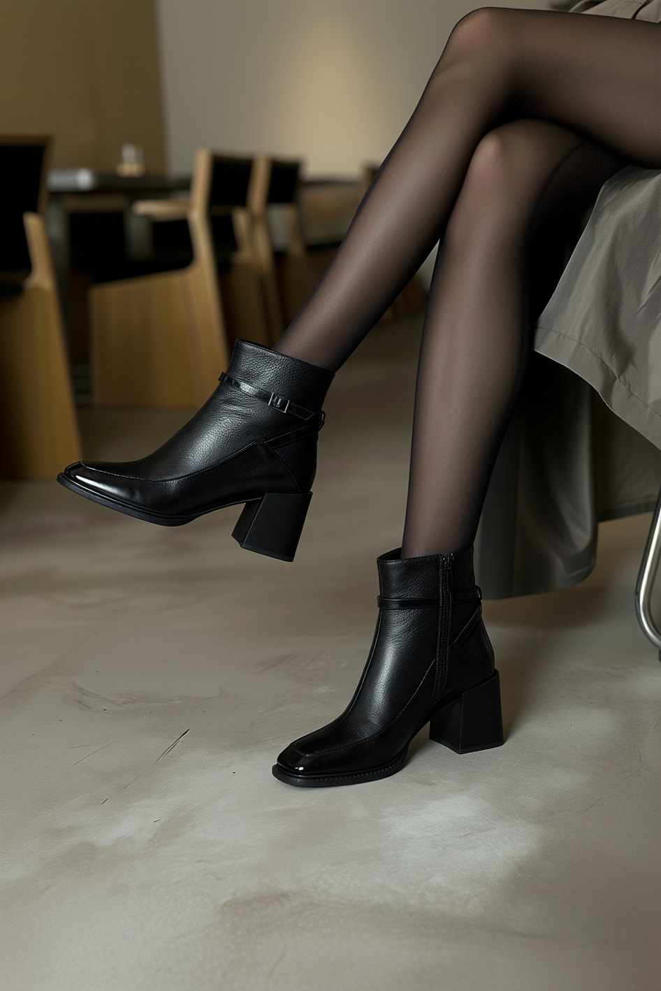 Актуальные ботильоны черного цвета из натуральной кожи с мягкой байкой внутри станут вашим надежным спутником в прохладный сезон. Гибкая подошва и устойчивый геометричный каблук дарят комфорт на весь день, а модный квадратный мысок придает образу современный акцент. Лаконичная металлическая фурнитура и удобная молния добавляют практичности, позволяя быстро и легко надевать обувь.