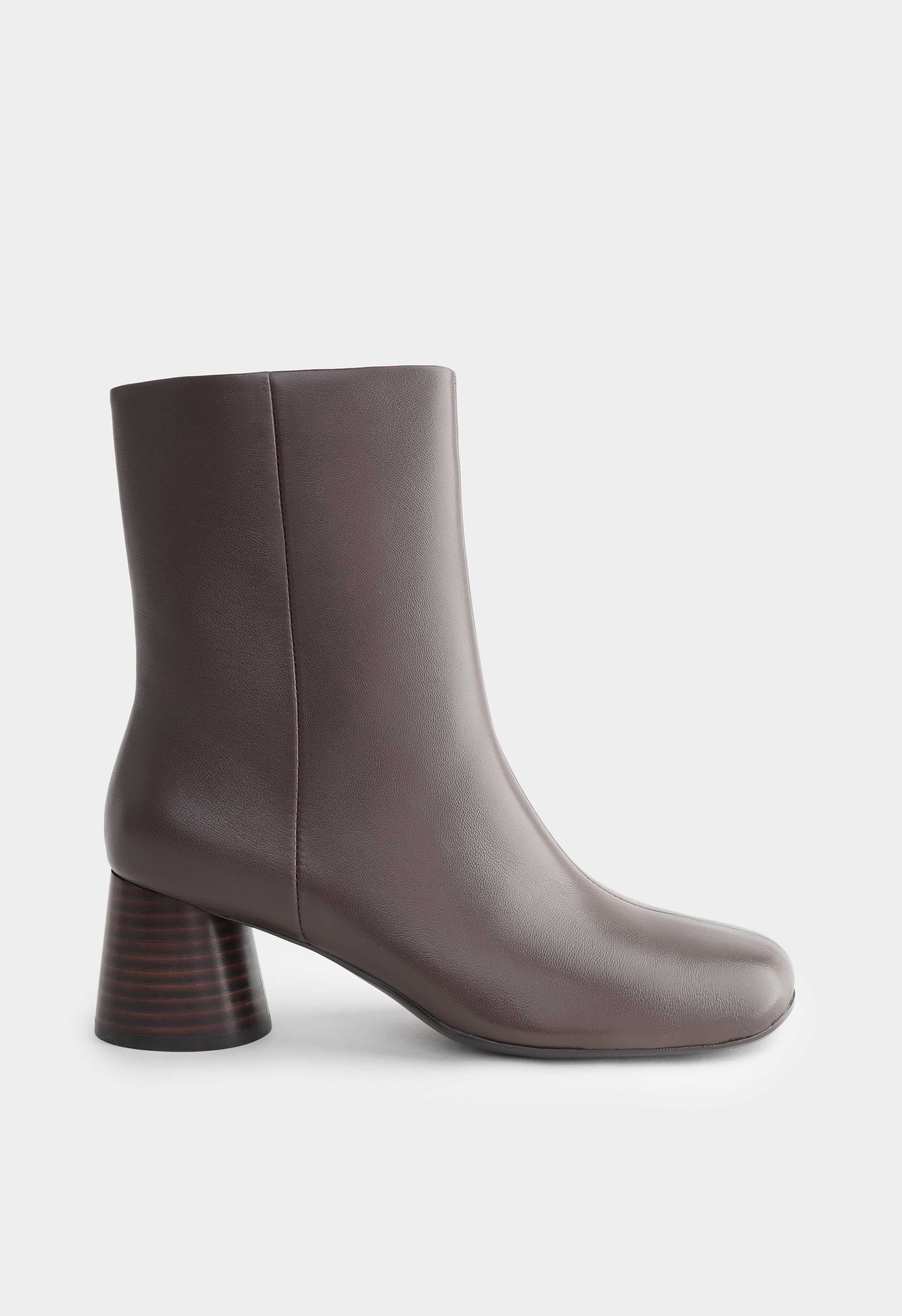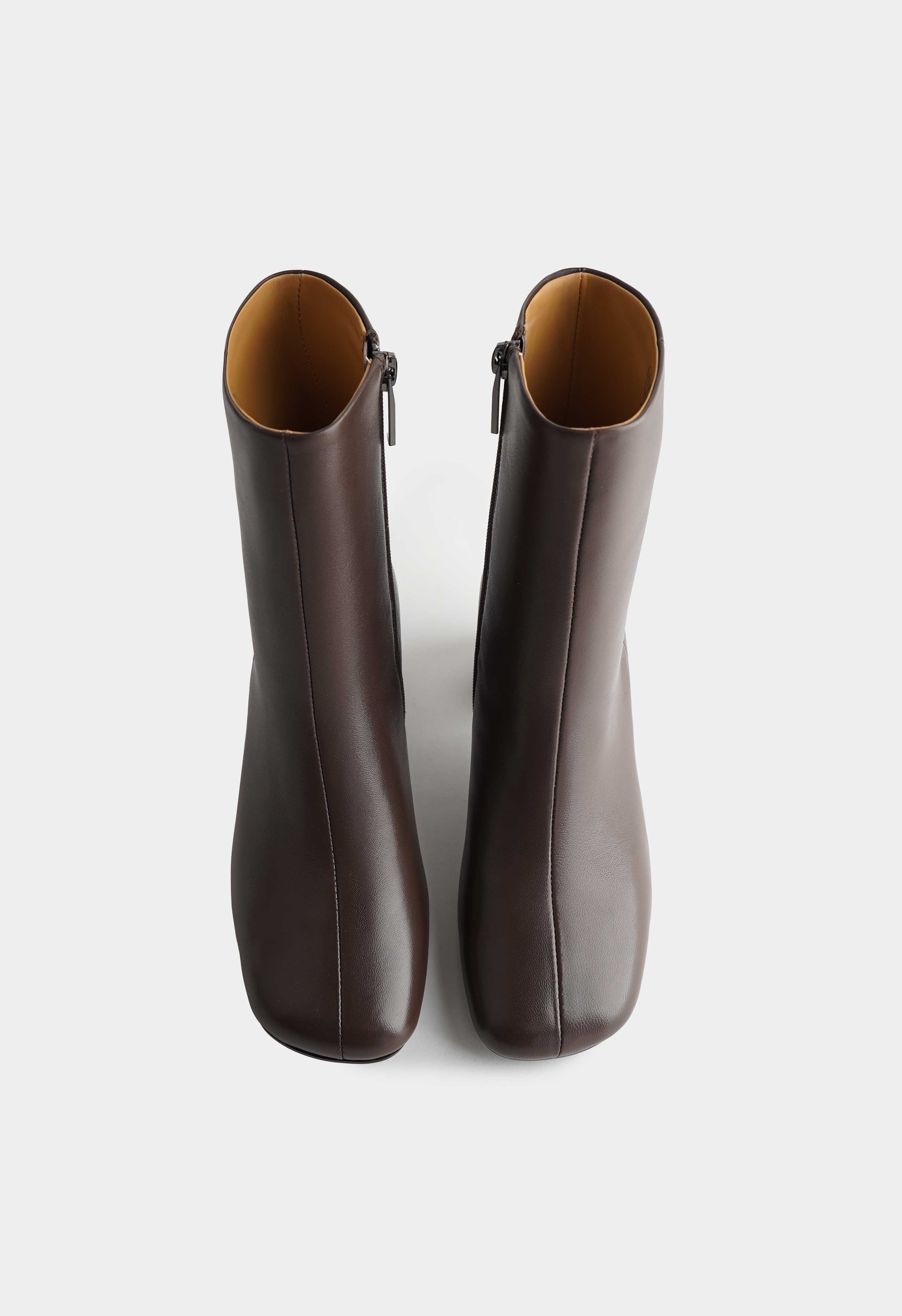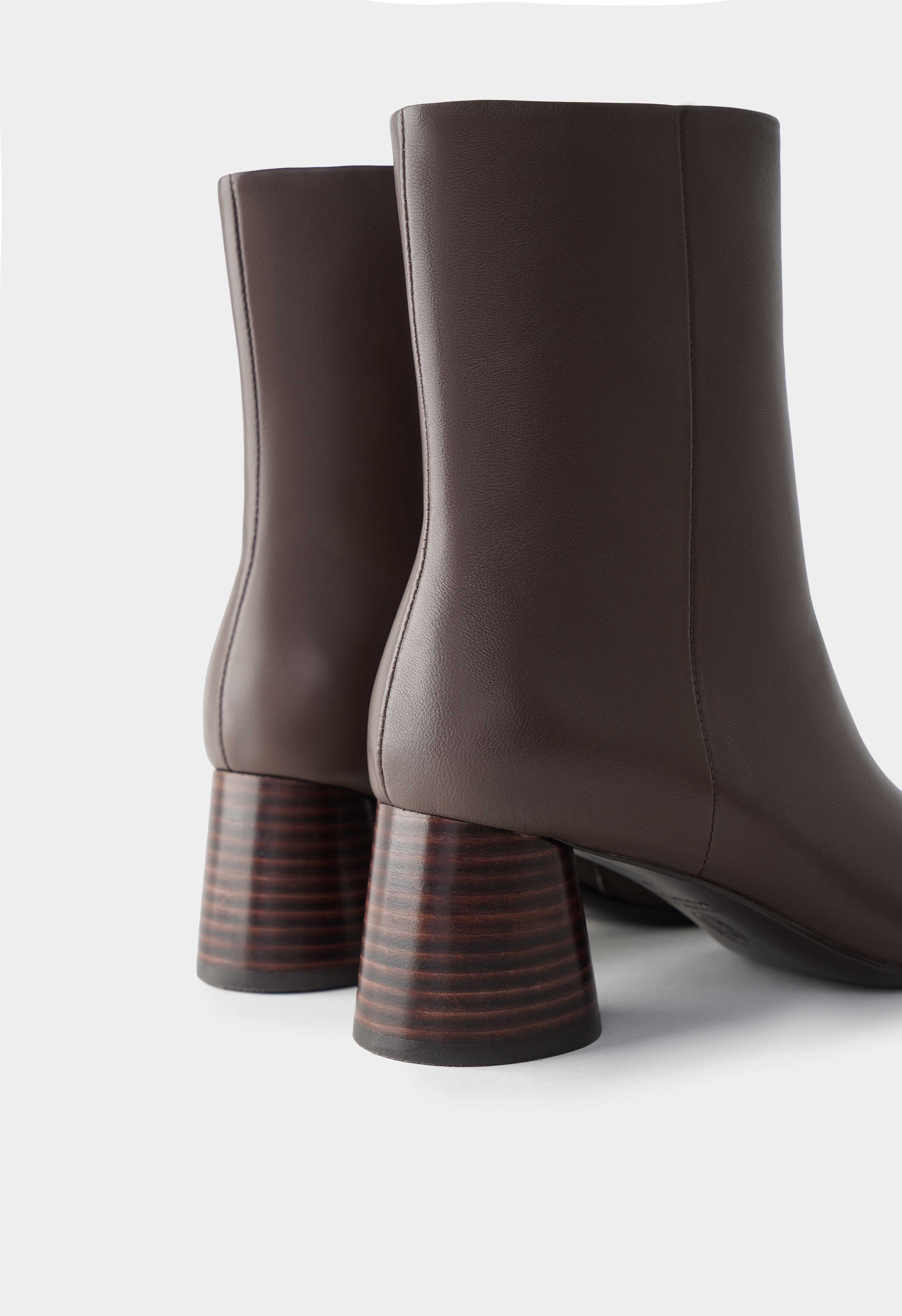 Коричневые ботильоны из натуральной кожи – аккуратная пара с мягкой линией голенища и современным силуэтом, которая легко вписывается в базовый гардероб. Квадратный мысок добавляет актуальную геометрию и делает посадку комфортной, а наборный каблук с древесной фактурой смотрится благородно и дает устойчивую высоту. Молния сбоку обеспечивает удобное надевание, а фурнитура в оттенке металлик добавляет сдержанный акцент и подчеркивает качество деталей. Жесткая подошва держит форму и поддерживает уверенный шаг – отличный выбор для офиса, города и прохладного сезона.