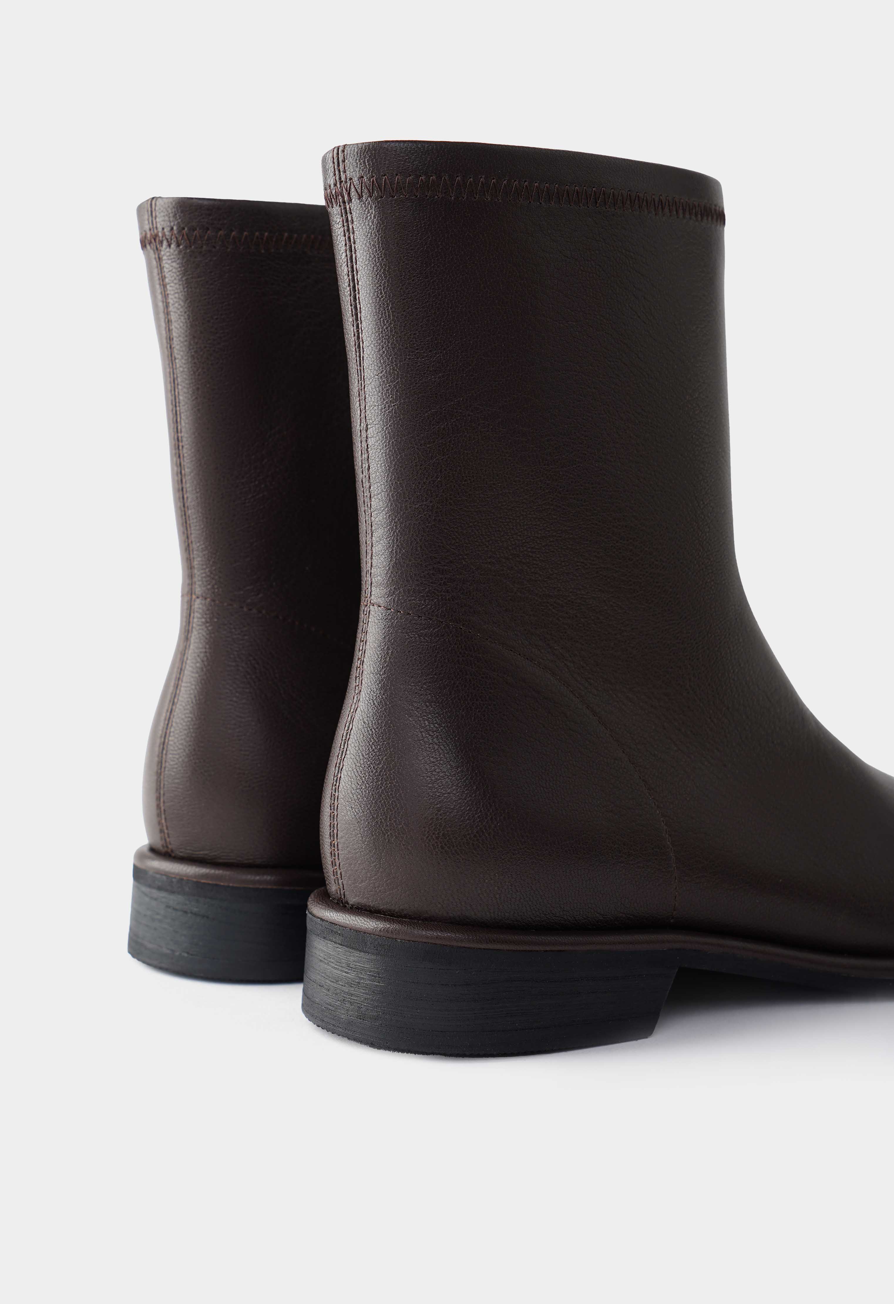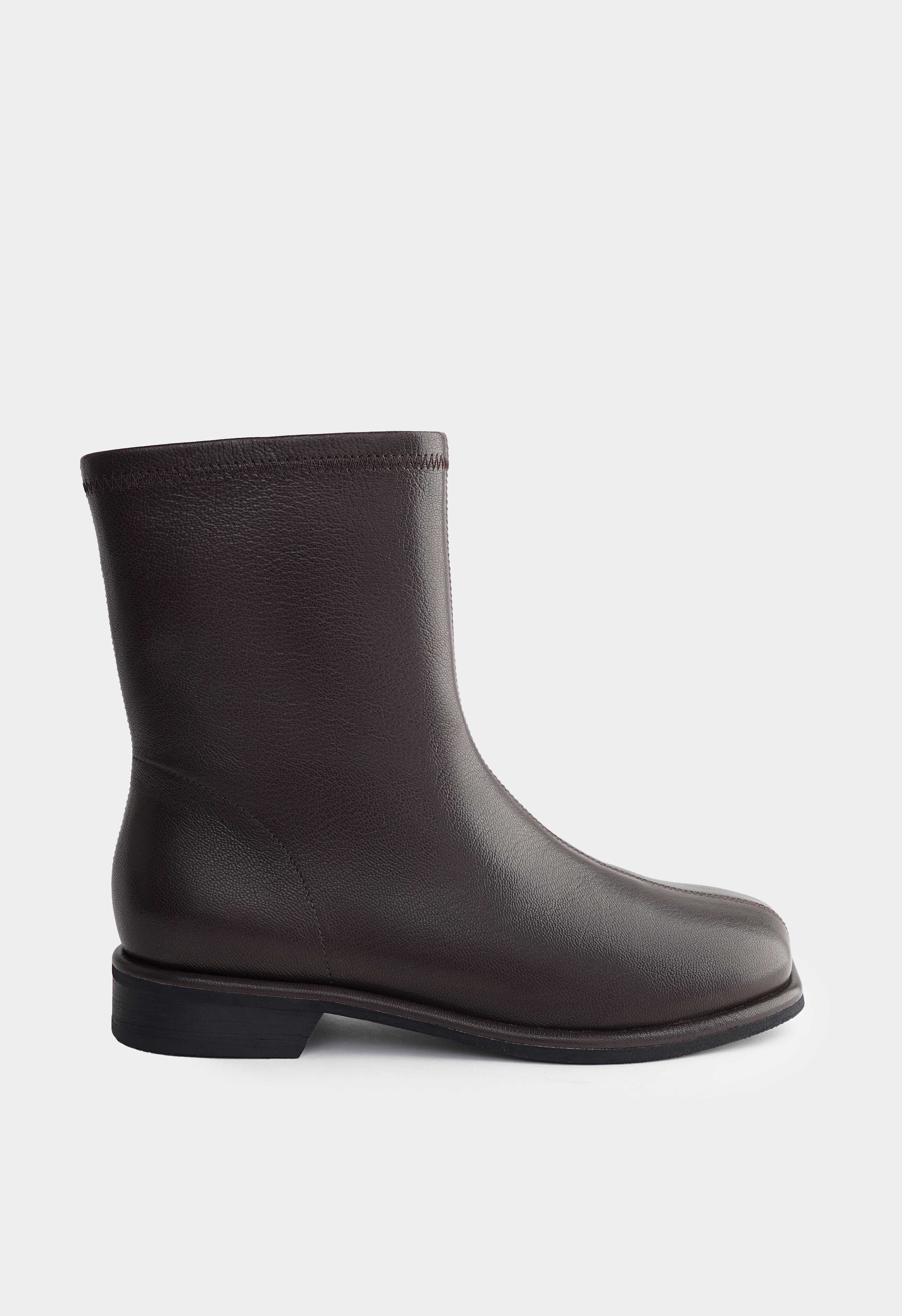 Коричневые полусапоги из натуральной кожи – практичная база на прохладный сезон с аккуратной посадкой и строгим силуэтом. Квадратный мысок придает современную геометрию и добавляет комфорта, а скошенный каблук смотрится собранно и дает устойчивую опору в городе. Молния сбоку делает надевание быстрым и удобным, металлик-фурнитура добавляет тонкий акцент и подчеркивает качество исполнения. Жесткая подошва держит форму и обеспечивает стабильный шаг.